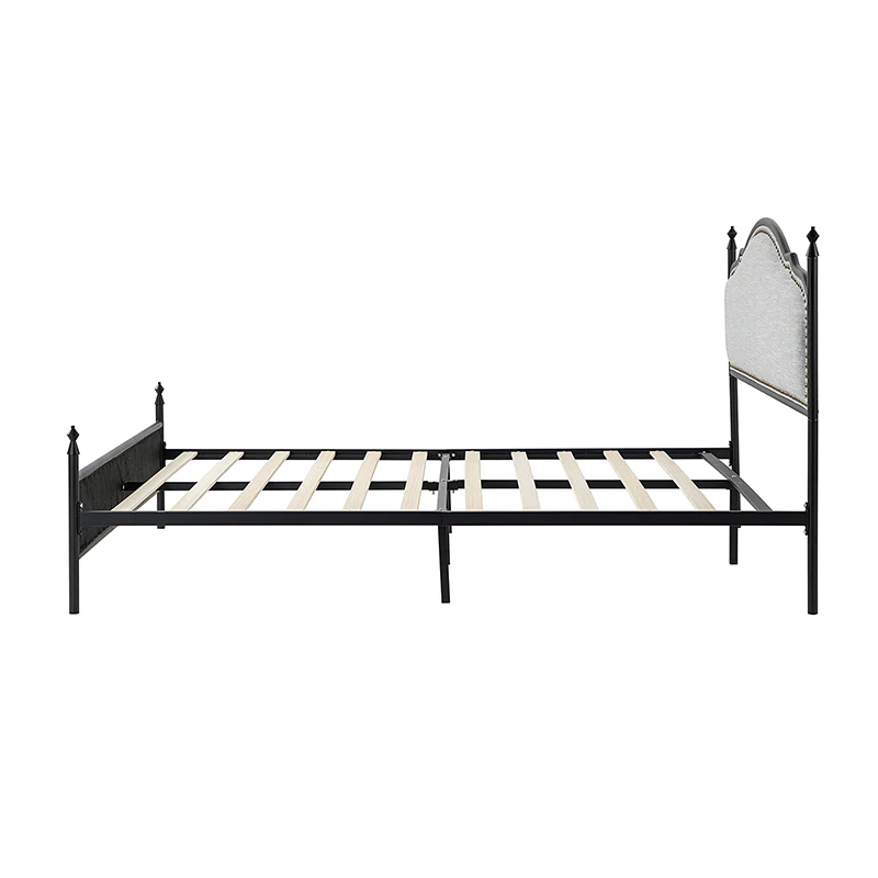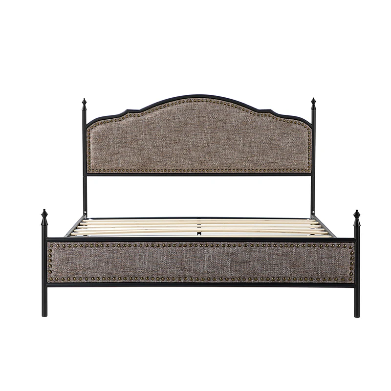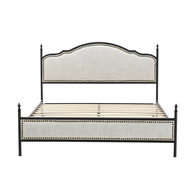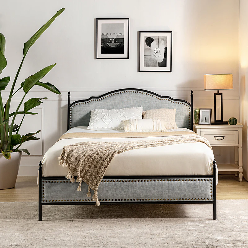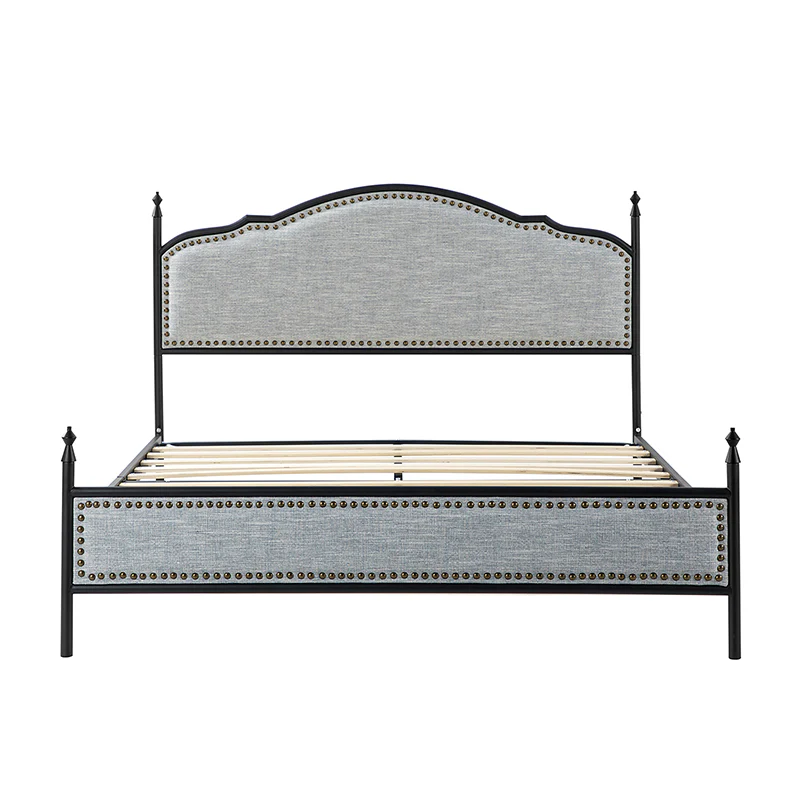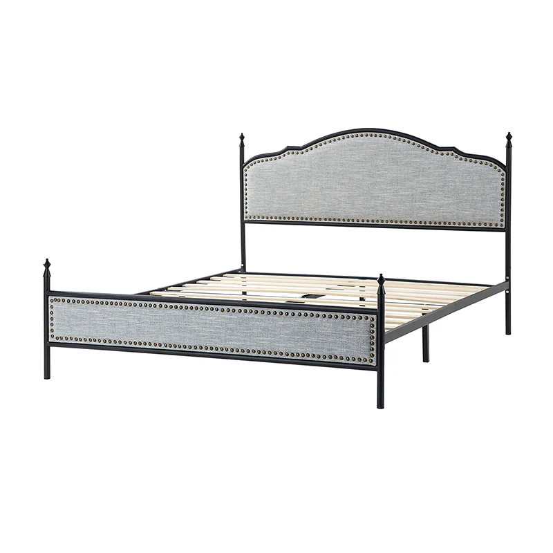 Bring transitional style to your bedroom with this four-poster metal bed. It features a rivet-trimmed headboard and footboard that provide a reliable backrest while watching TV. This is a kind of low-profile bed, which is easier to get in and out of and closer to the ground, especially for people with mobility issues or for children. This can make it a safer and more comfortable option.The sturdy metal bed frame, decorative molding and wooden slats provide ample support for your favorite mattress (not included). The bed takes up less vertical space than high beds, which can be advantageous in rooms with low ceilings or limited vertical space. Also, the style of our bed designed by Dutch crafters is very popular in French countries as well as in the United States. You can choose any color and size that suits your body. Not only will this bed add a sophisticated vibe to your small bedroom, but it will also bring you sweet dreams. It's sleek, chic, and easy to assemble.