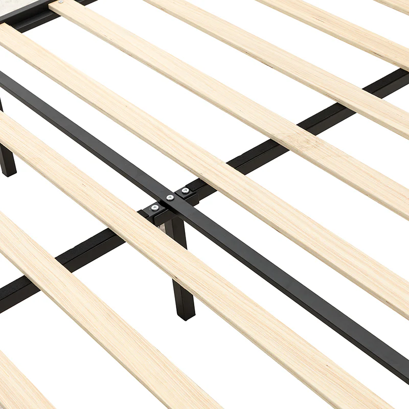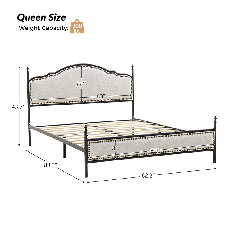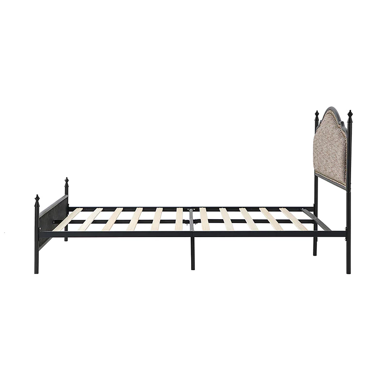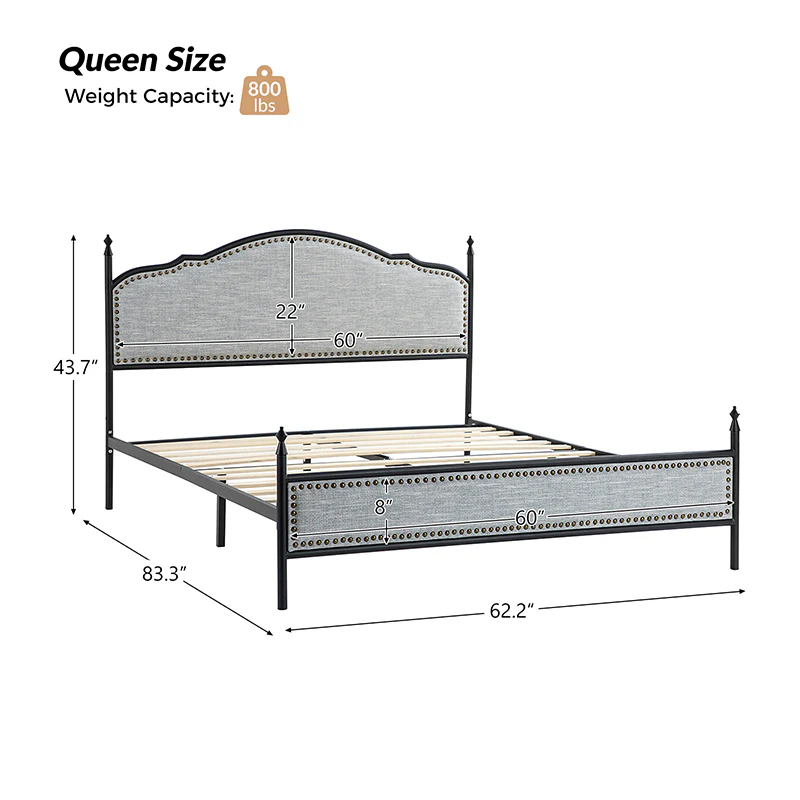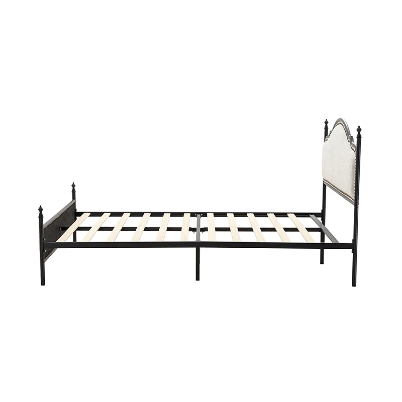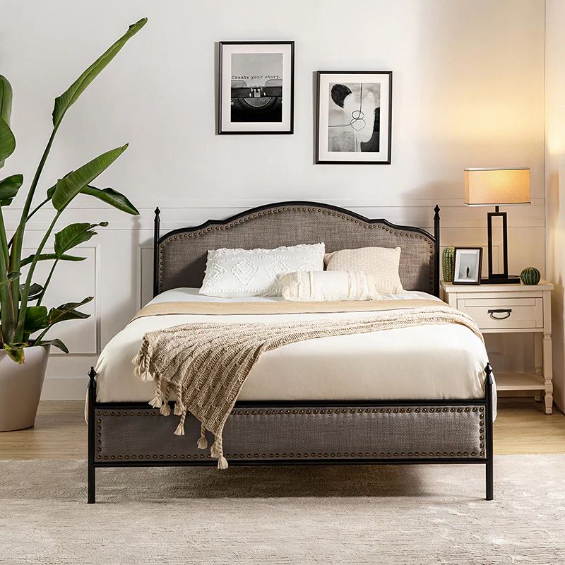 Bring transitional style to your bedroom with this four-poster metal bed. It features a rivet-trimmed headboard and footboard that provide a reliable backrest while watching TV. This is a kind of low-profile bed, which is easier to get in and out of and closer to the ground, especially for people with mobility issues or for children. This can make it a safer and more comfortable option.The sturdy metal bed frame, decorative molding and wooden slats provide ample support for your favorite mattress (not included). The bed takes up less vertical space than high beds, which can be advantageous in rooms with low ceilings or limited vertical space. Also, the style of our bed designed by Dutch crafters is very popular in French countries as well as in the United States. You can choose any color and size that suits your body. Not only will this bed add a sophisticated vibe to your small bedroom, but it will also bring you sweet dreams. It's sleek, chic, and easy to assemble.