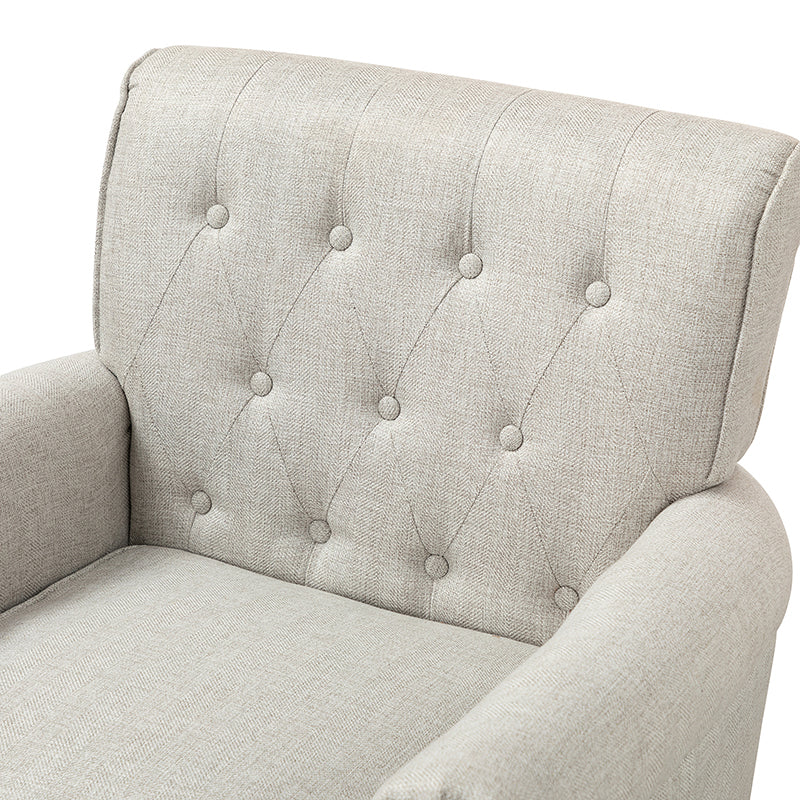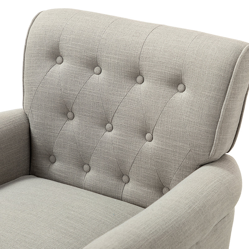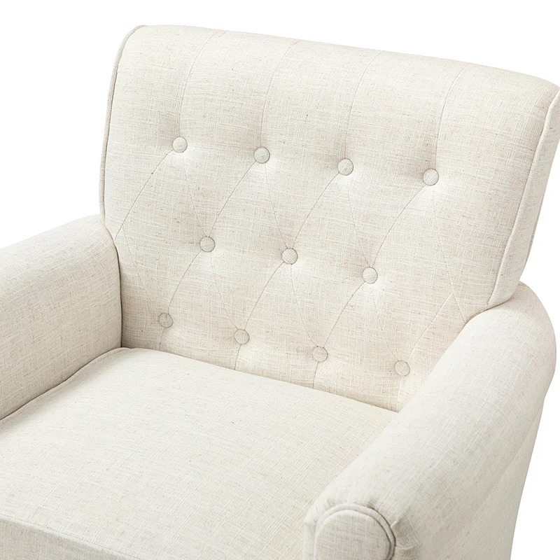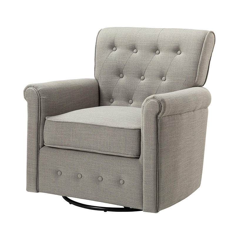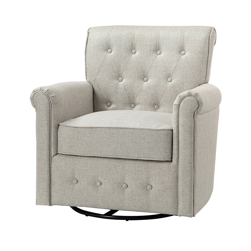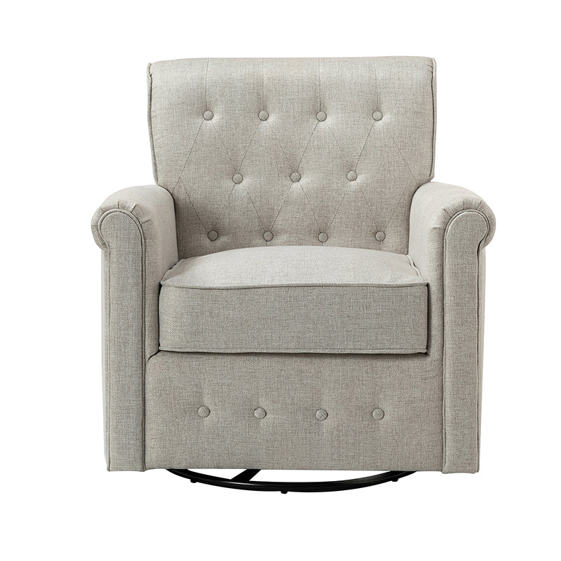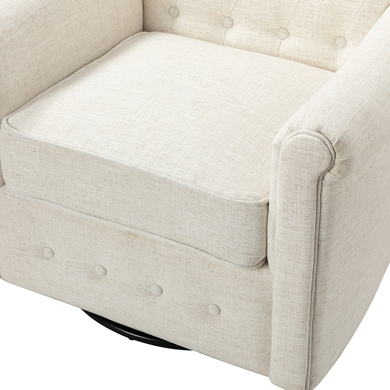 This swivel armchair is a great addition to perfecting your seating arrangement, providing the perfect perching spot for your home. The prominent design of this armchair is inspired by the major brands, the material texture is better, comfortable size and sitting feeling. Creative rolled armrests add a touch of classical style, while thick foam padding provides a comfortable sitting feel. Made with a soft 100% polyester wrap and a sturdy mix of wood and metal, this tufted armchair is long enough. Carrying up to 250 pounds on its own, this stunning accent swivel chair creates the perfect place to read, nap, or watch a game.