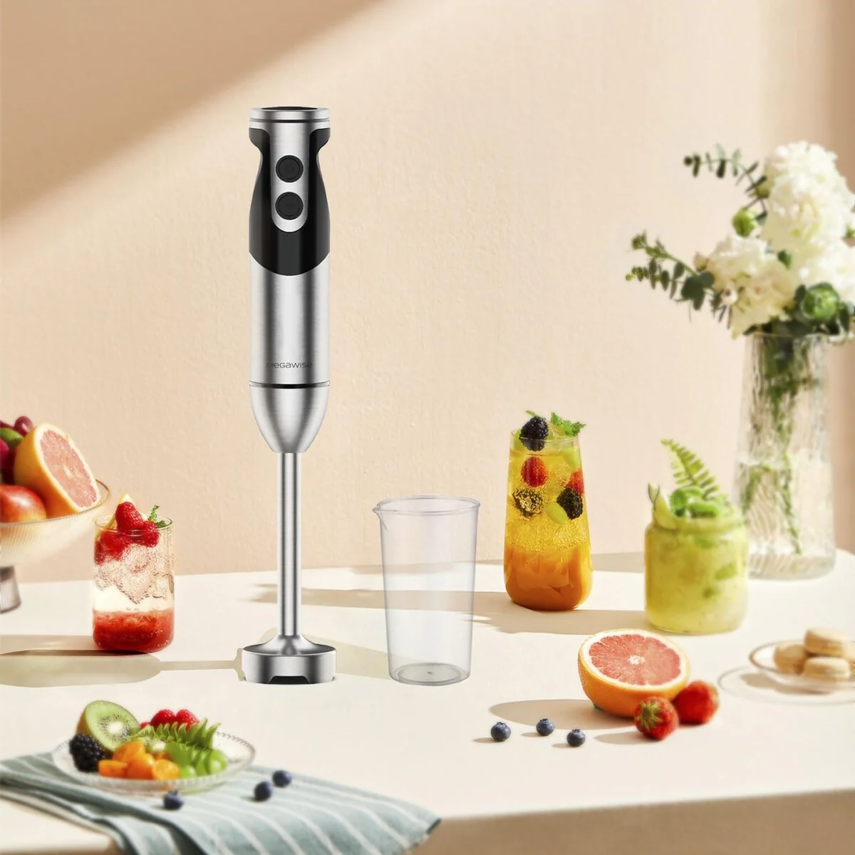 【For Attachments】:Include 500ml Chopping Bowl, Milk Frother, Egg Whisk, 600ml Beaker for Puree Infant.The 4 blades on the cutting head feature 4 cutting edges to achieve suitable mixing and crushing results, with a blade guard for reduced splashing.