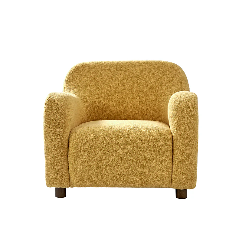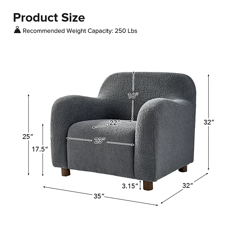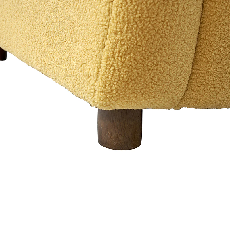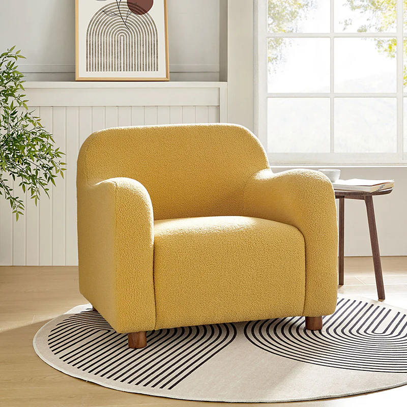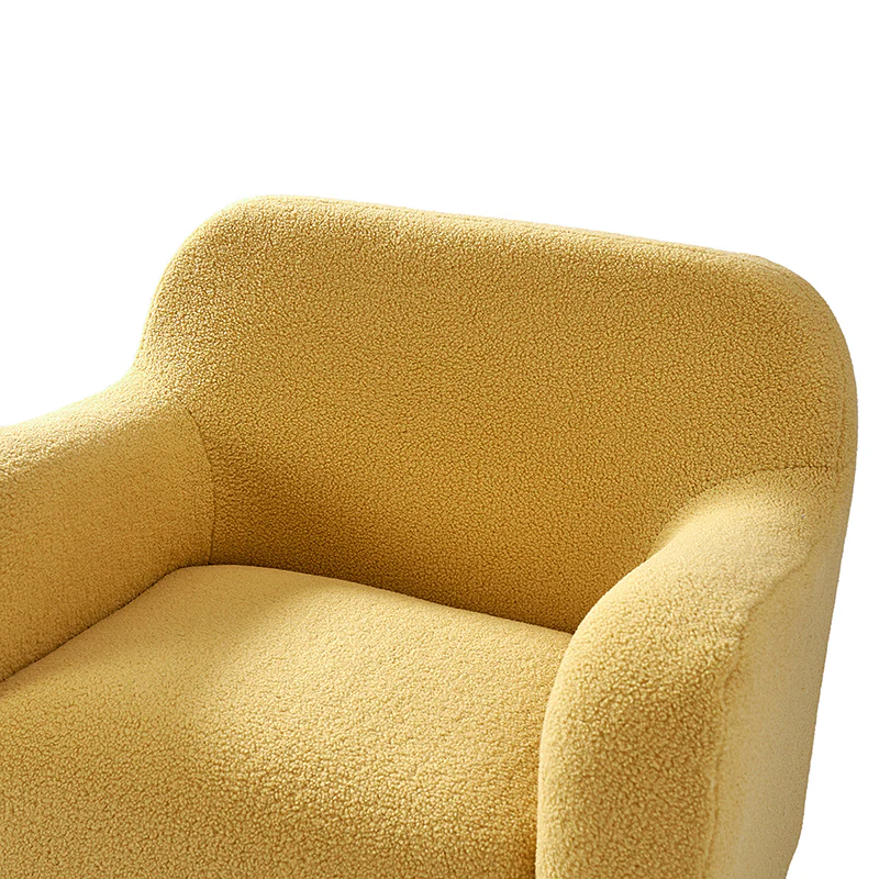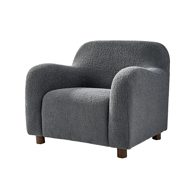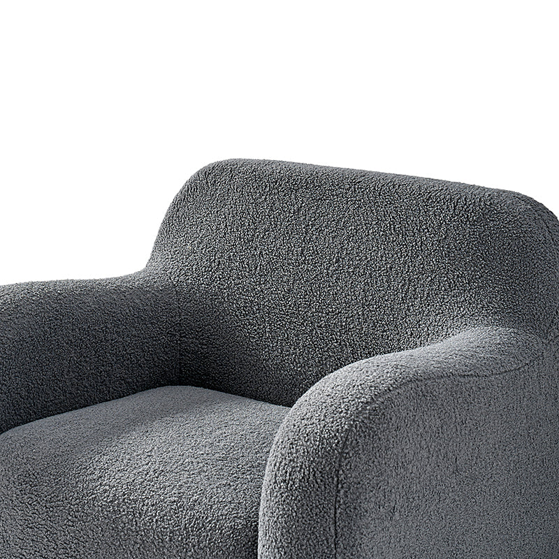 Presenting a contemporary upholstered armchair seamlessly adaptable to both living room and bedroom. Embodying the appeal of creamy style, this accent chair features quality lamb wool cloth upholstery, creating an inviting and cozy atmosphere. The solid wood legs add a touch of natural elegance and ensure sturdiness and stability. Designed for convenience, the armchair boasts a three-minute assembly, requiring only the attachment of the rubber wood legs. This time-saving design enhances the overall user experience, making it a choice for various spaces. Elevate your space with this modern armchair, where style meets functionality for moments of relaxation.