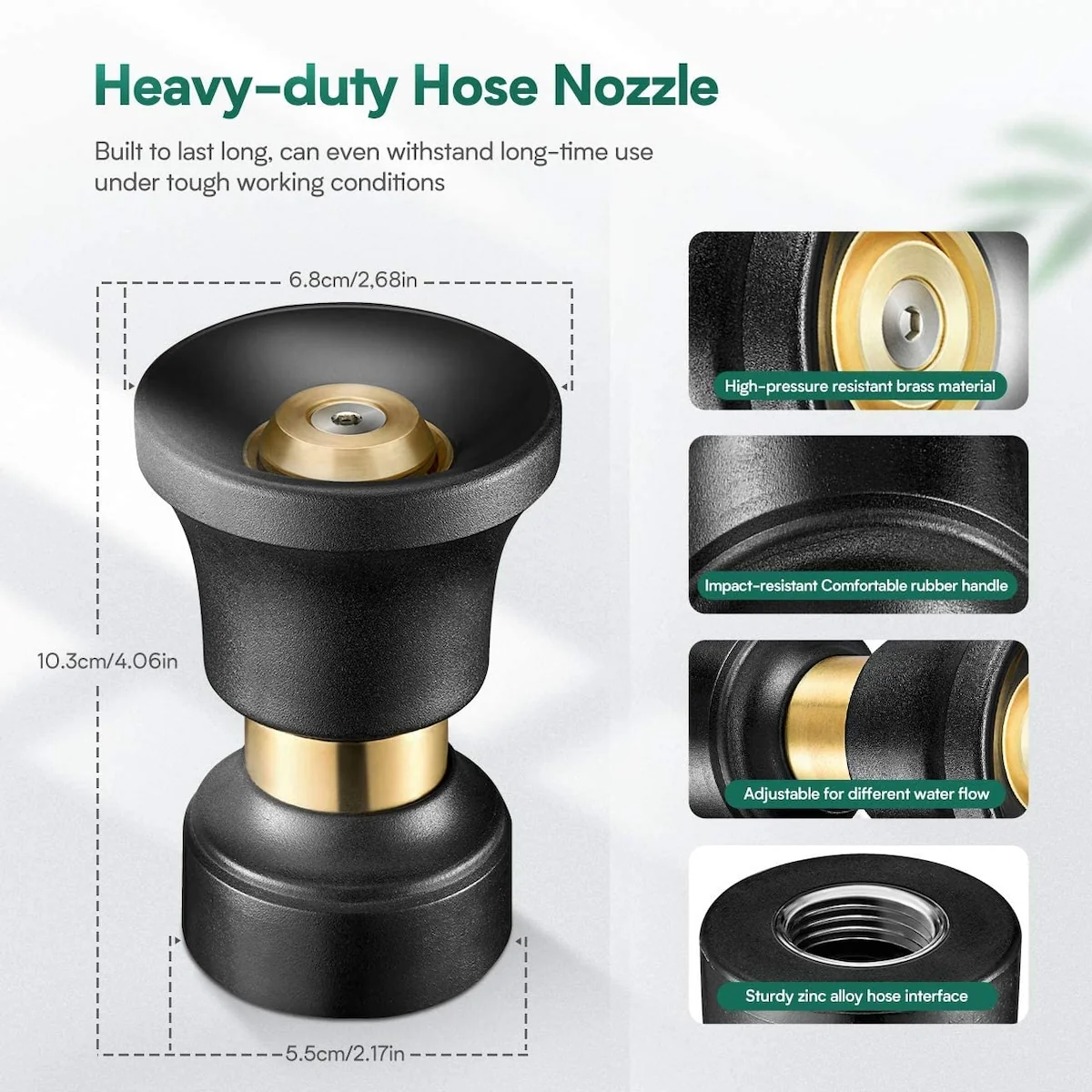 High-density Rubber + Grade Brass, instead of traditional plastic, Homiit Fireman Hose Nozzle is more durable and our rubber is wear-resisting, and grade brass assures rust-proof. That means this Fireman Style Hose Nozzle can long lifetime use!