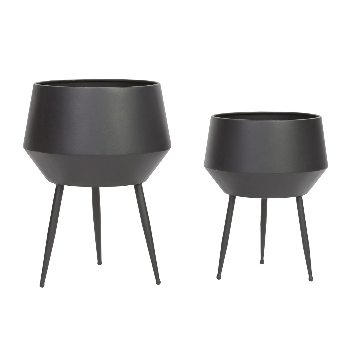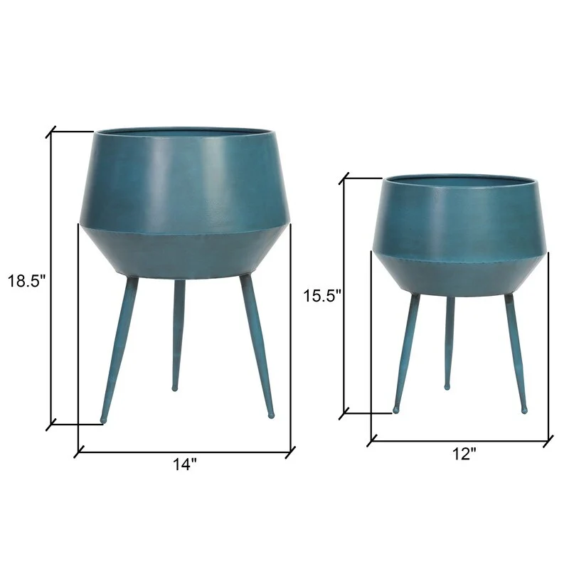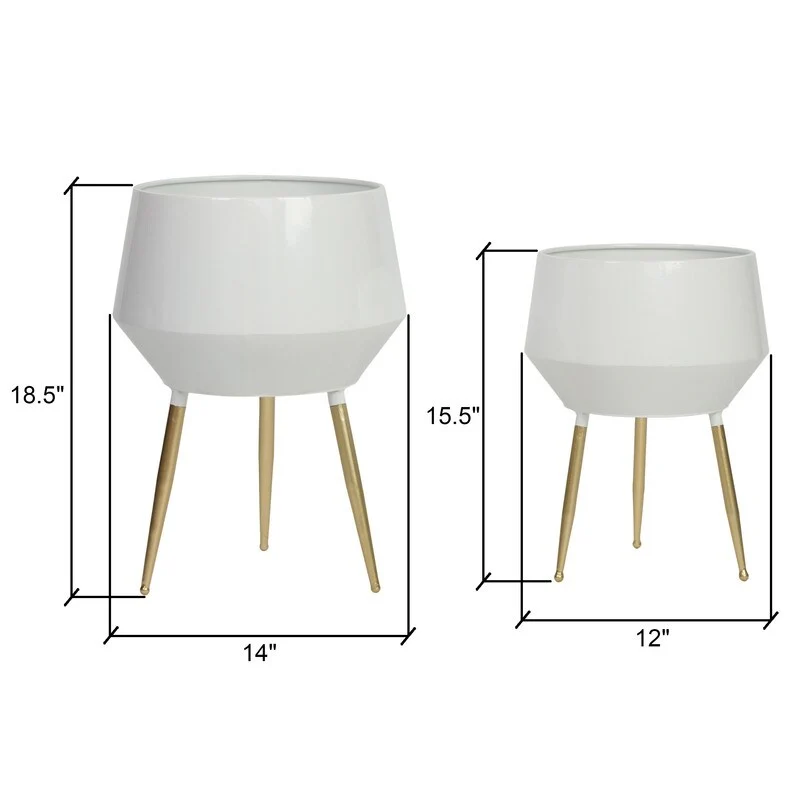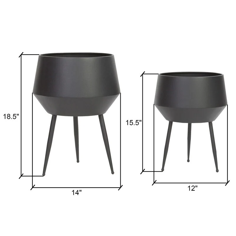 Add a touch of retro cool to your home with this set of Huxley Mid Century Modern Planters. Made with sleek metal craftsmanship and a geometric-inspired design, these planters are perfect for adding a touch of greenery to your space. Whether as floor decor or table-top accents, these versatile planters will complement any modern, mid-century modern, or industrial decor.