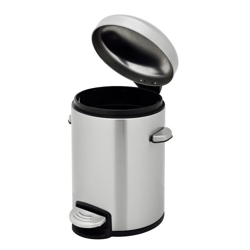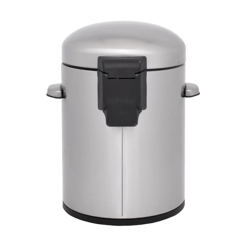 A retro round shape 8 gallon/ 30 liter and 1.3 gallon/ 5 liter stainless steel trash can combo with hands free operation and a quiet slow close lid. The strong foot pedal structure will provide many years of trouble free use. A removable inner plastic bucket can be used with or without a trash bag. A large handle makes for convenient moving and lifting and the stay open lid position and non-skid base allow for easy removal of trash. In brushed stainless steel with fingerprint resistant finish.