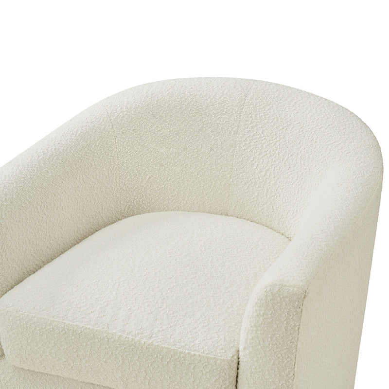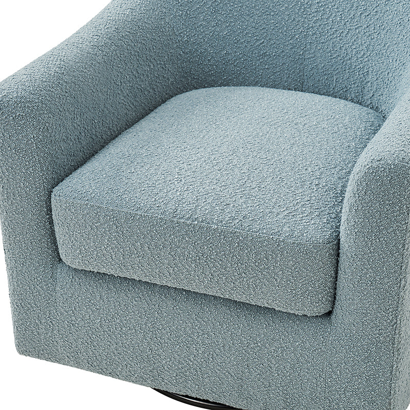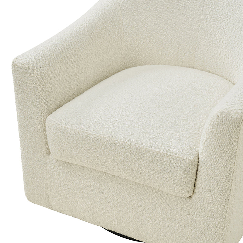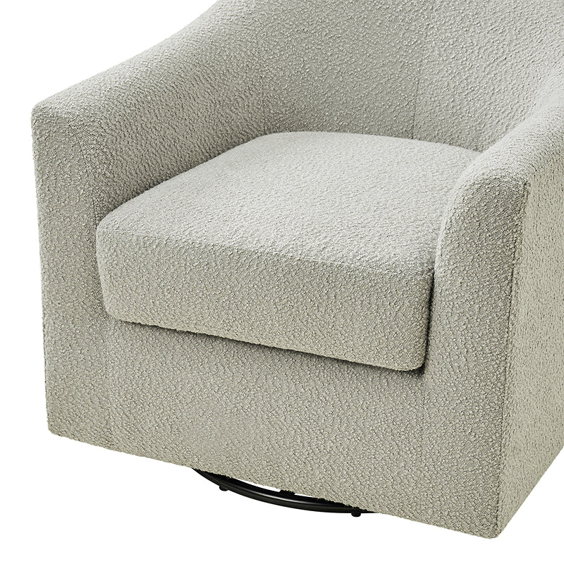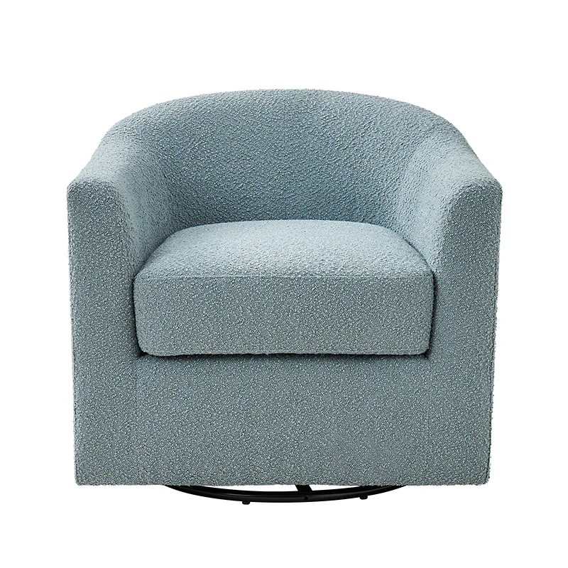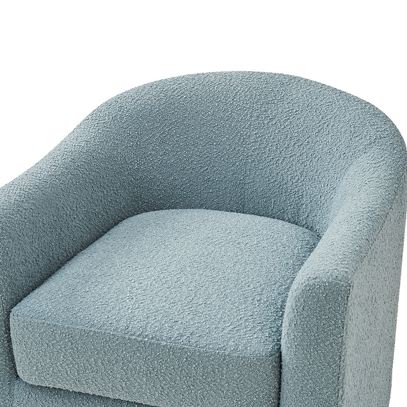 This modern swivel chair showcases a distinctively curved and ergonomic barrel shape, ensuring a unique and satisfying seating experience in your living room, bedroom, home office, and beyond. With its 360-degree swivel, mobility is elevated, enabling effortless rotation and interaction with your surroundings. Meticulously crafted, the chair is upholstered in a specially chosen, soft 100% polyester fabric, enhancing the overall comfort. Versatility and style converge in this swivel barrel chair, making it a sophisticated addition to the contemporary living space. Its sleek and modern design effortlessly complements your home decor, blending functionality with chic aesthetics.