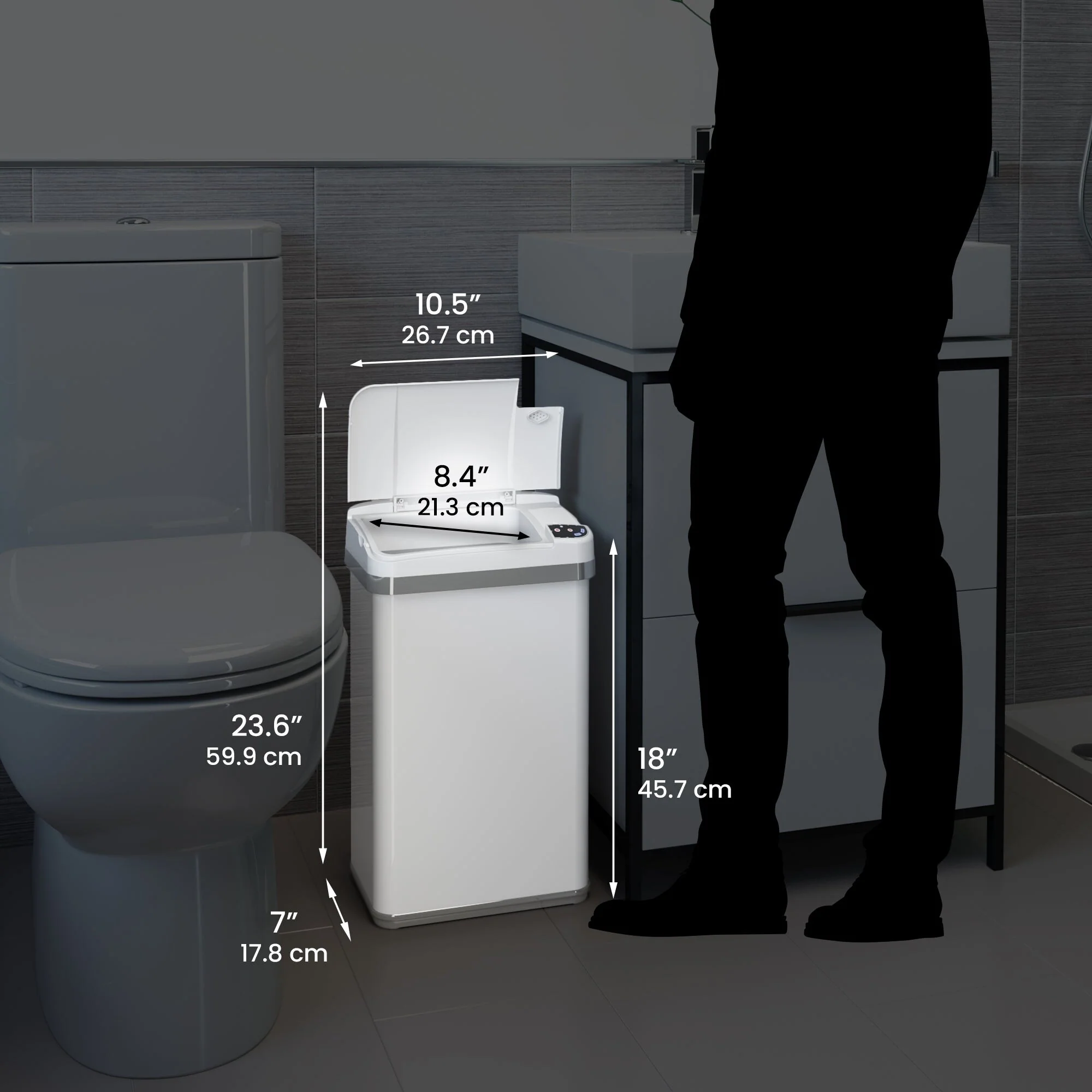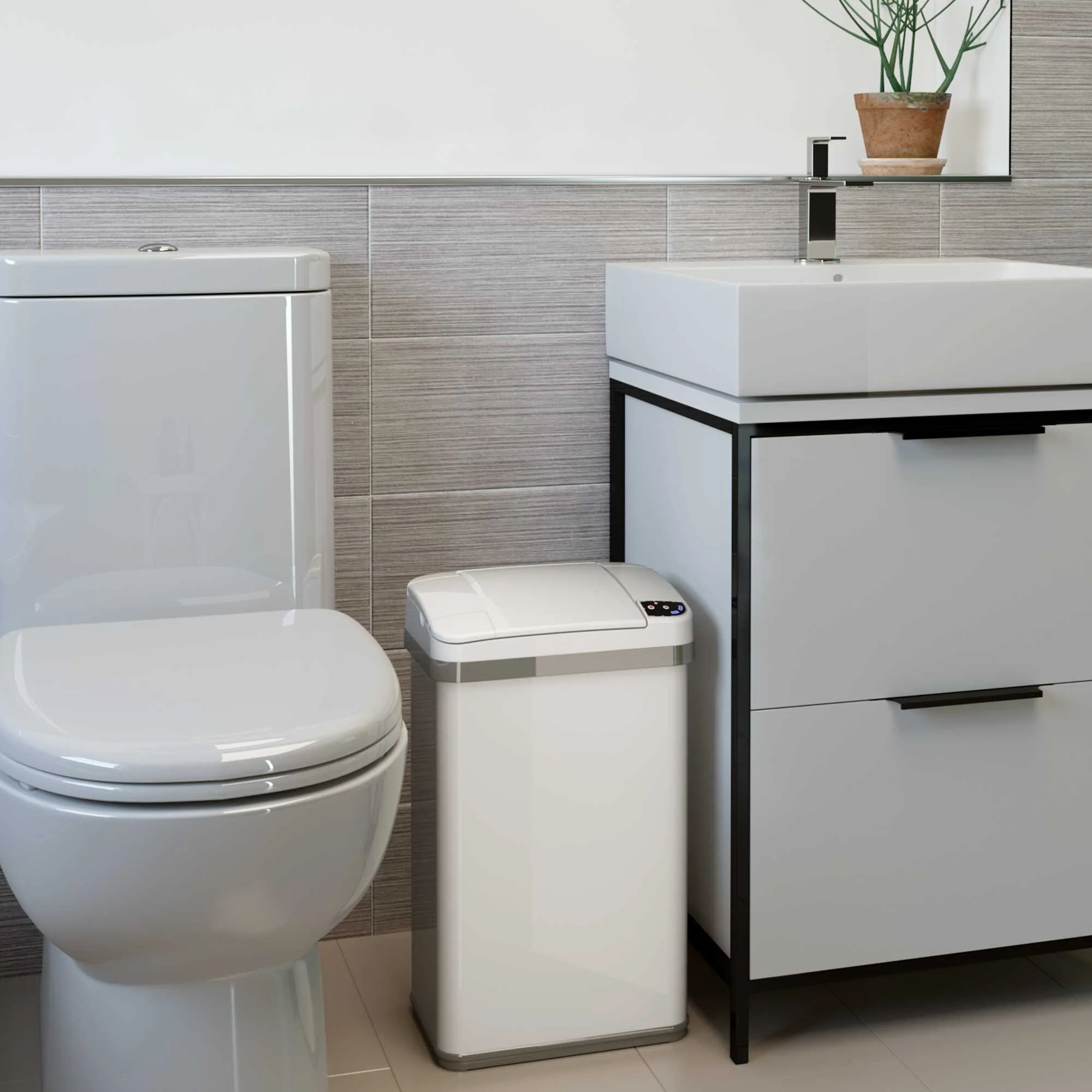 - Perfect as a lidded bathroom trash can or a touchless trash can.
