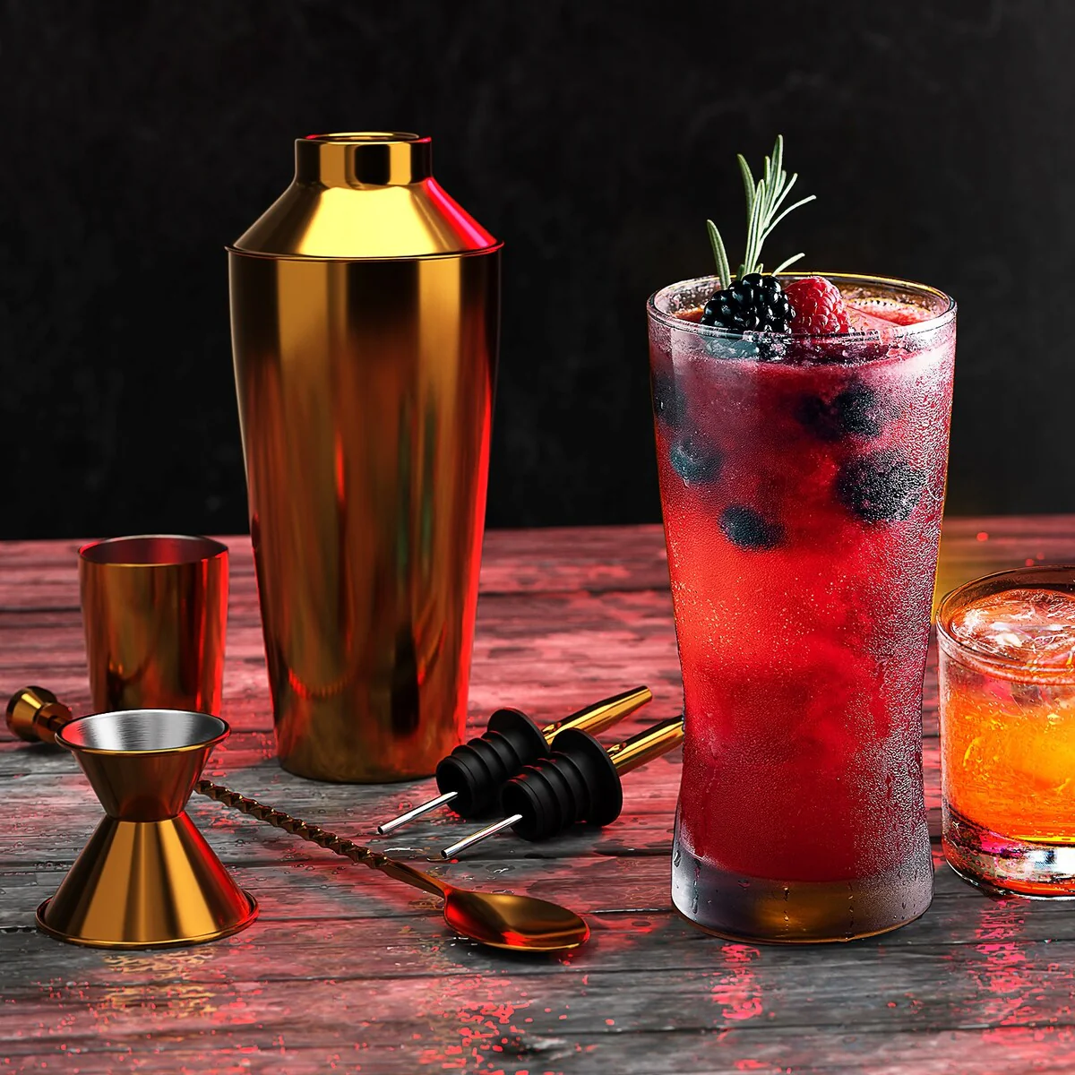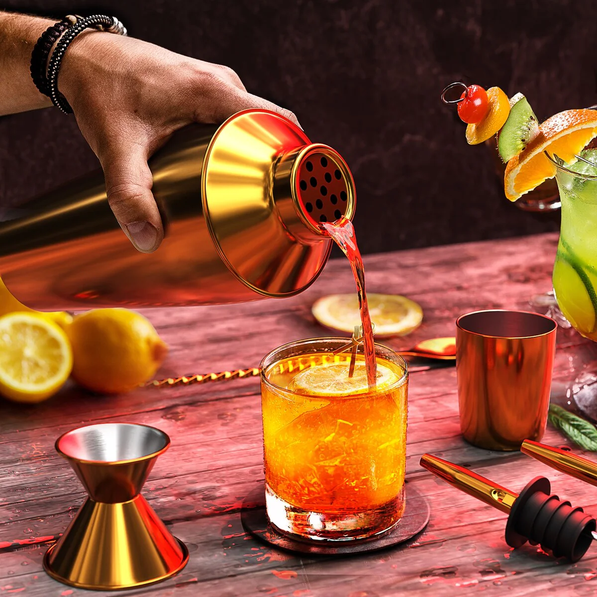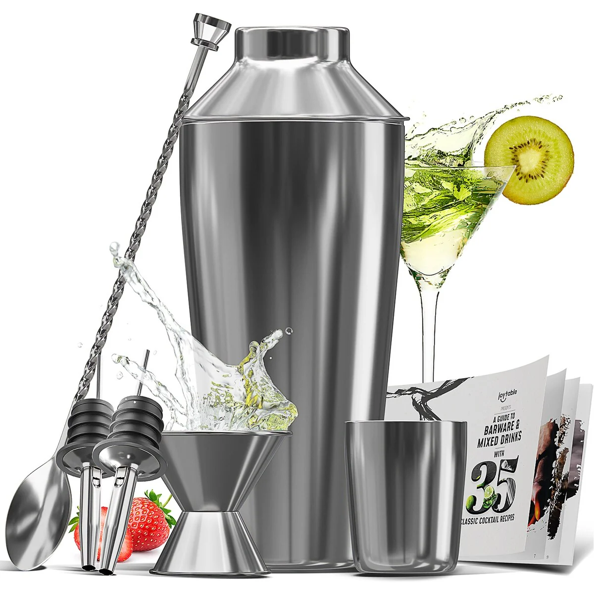 Are you ready to set up the home bar set of your dreams? Create your favorite drinks in style with this beautiful, affordable martini shaker set. Our professional bar tools are crafted with top-quality, commercial-grade stainless steel, featuring a sleek, mirrored finish. Rustproof and dishwasher safe, this restaurant-quality bartending kit is durable, reliable, and built to last!