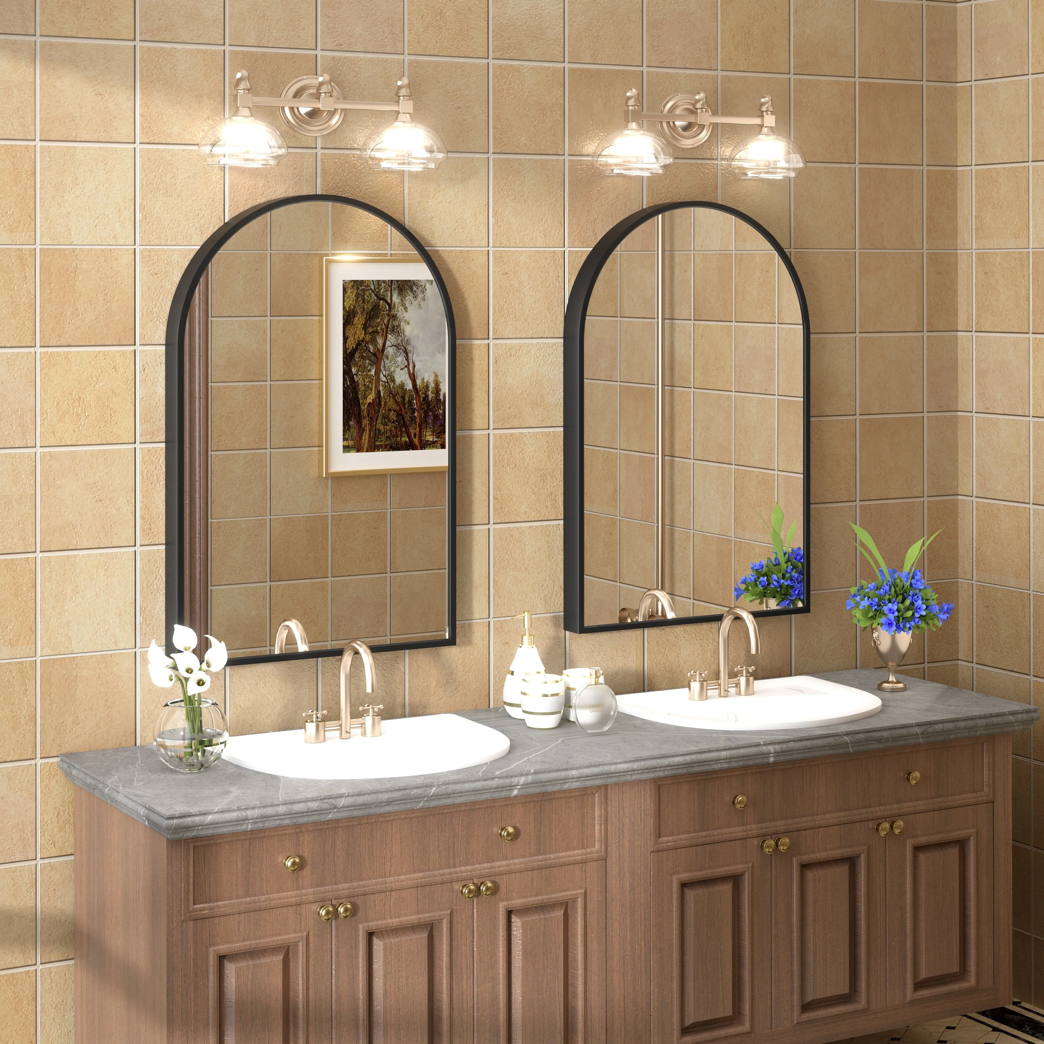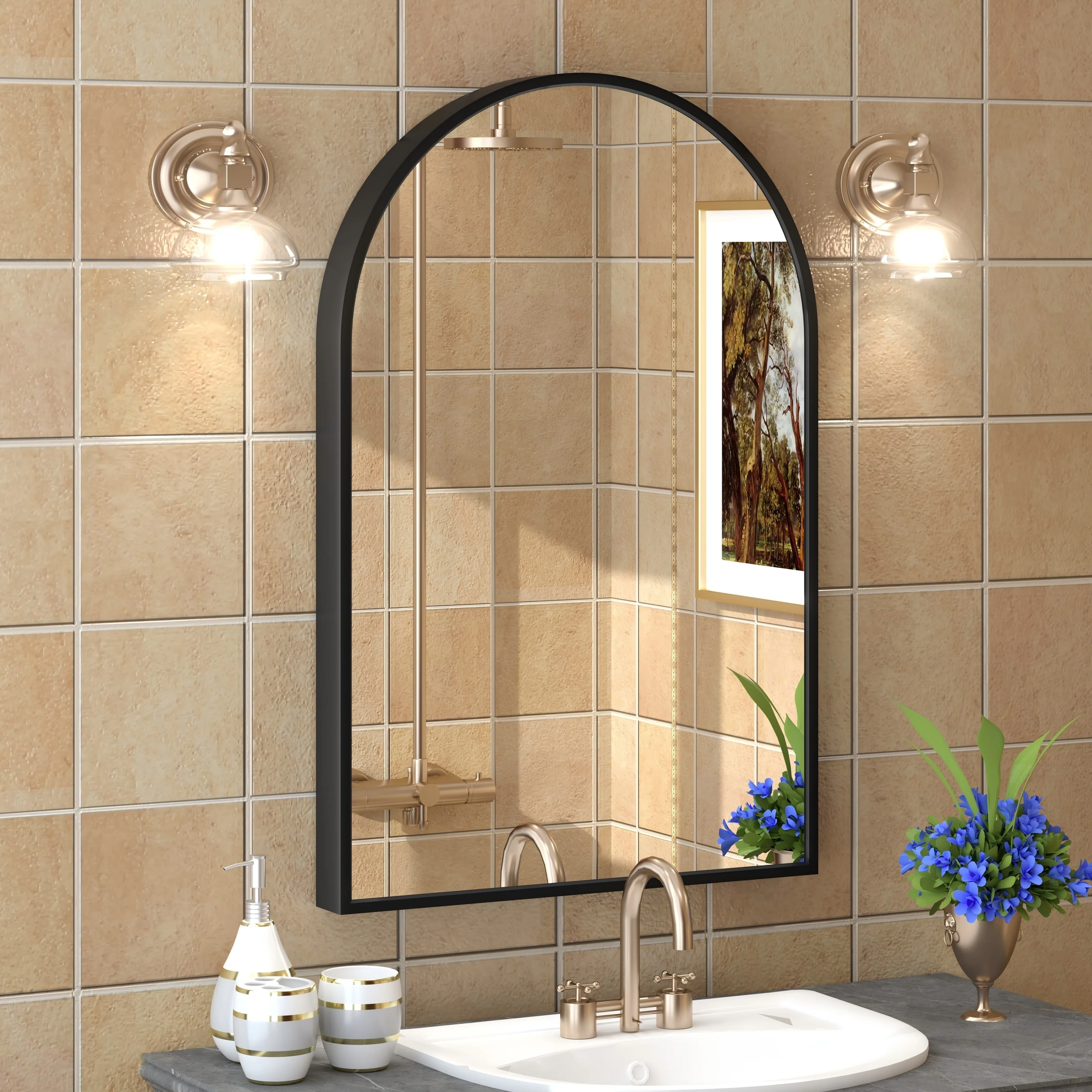 • KIOTEE Arched Black Aluminum Alloy Framed French Cleat Mounted Wall Decor Bathroom Vanity Mirror with 5-Year Warranty