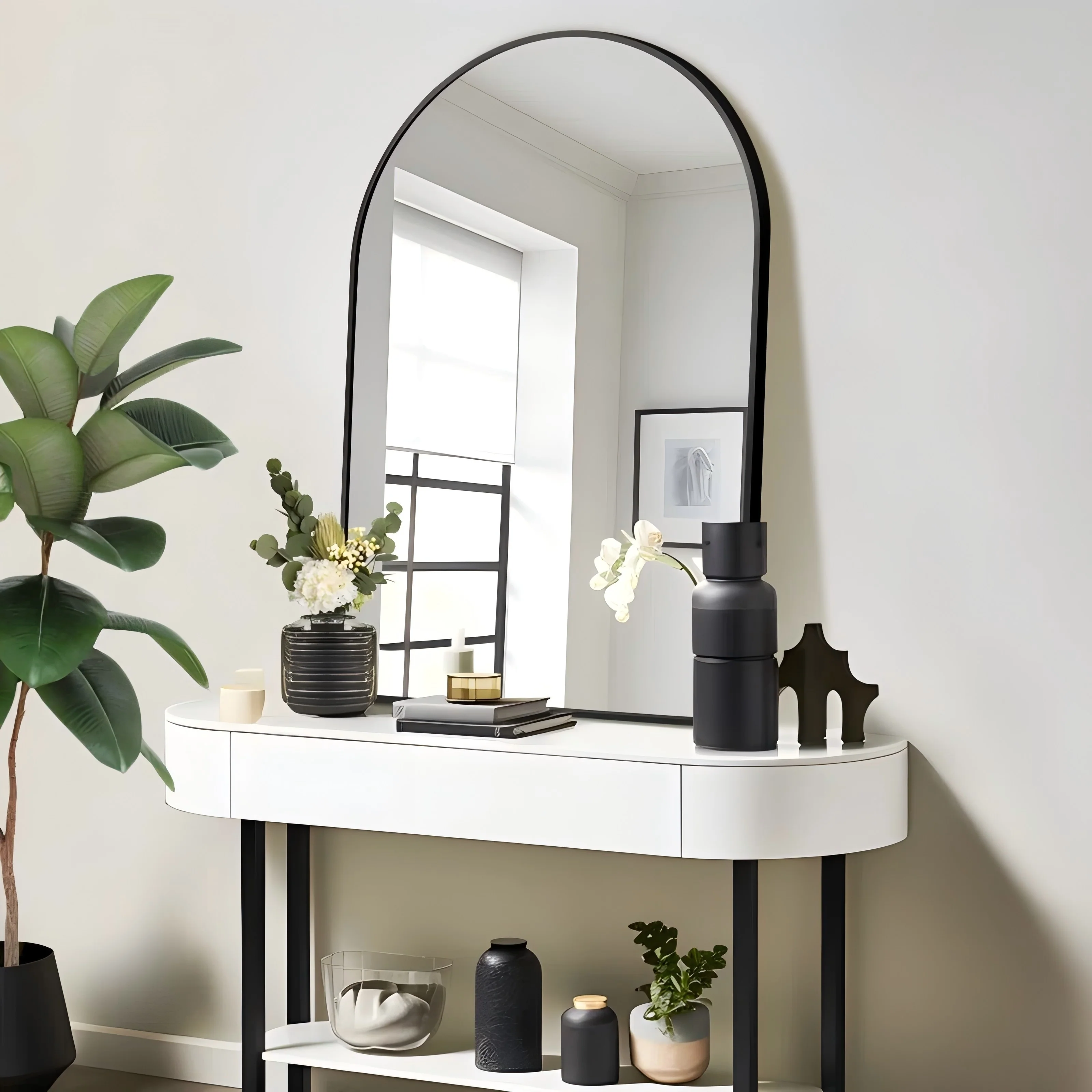 KIOTEE Arched Black Aluminum Alloy Framed French Cleat Mounted Wall Decor Bathroom Vanity Mirror with 5-Year Warranty