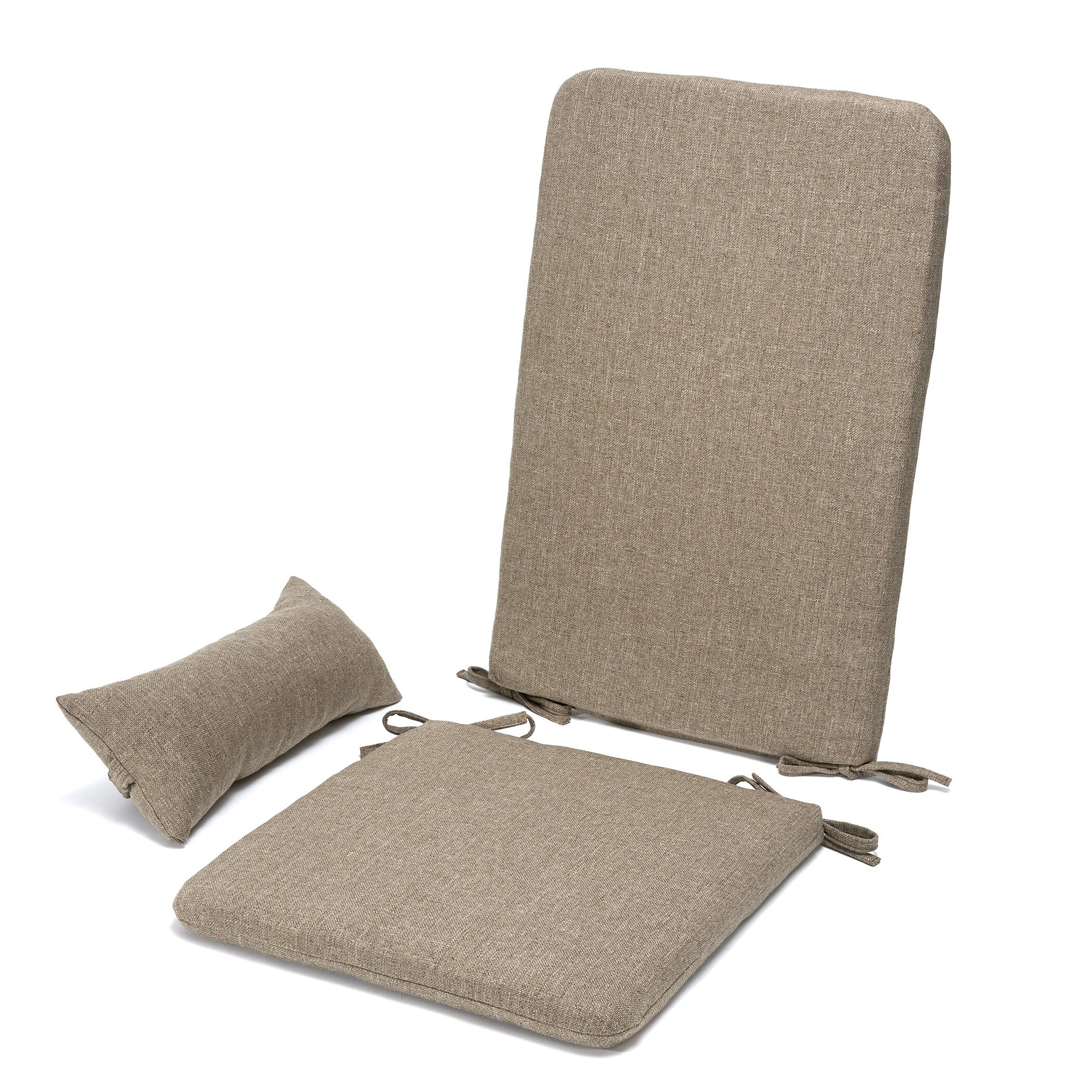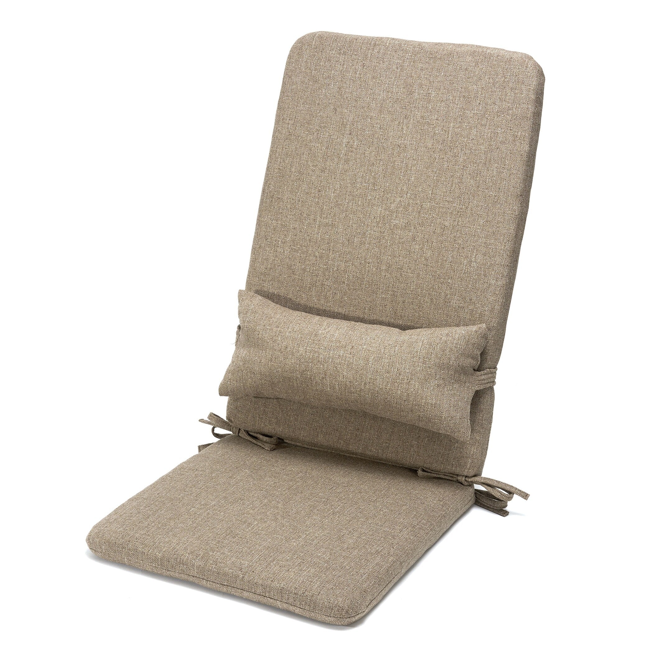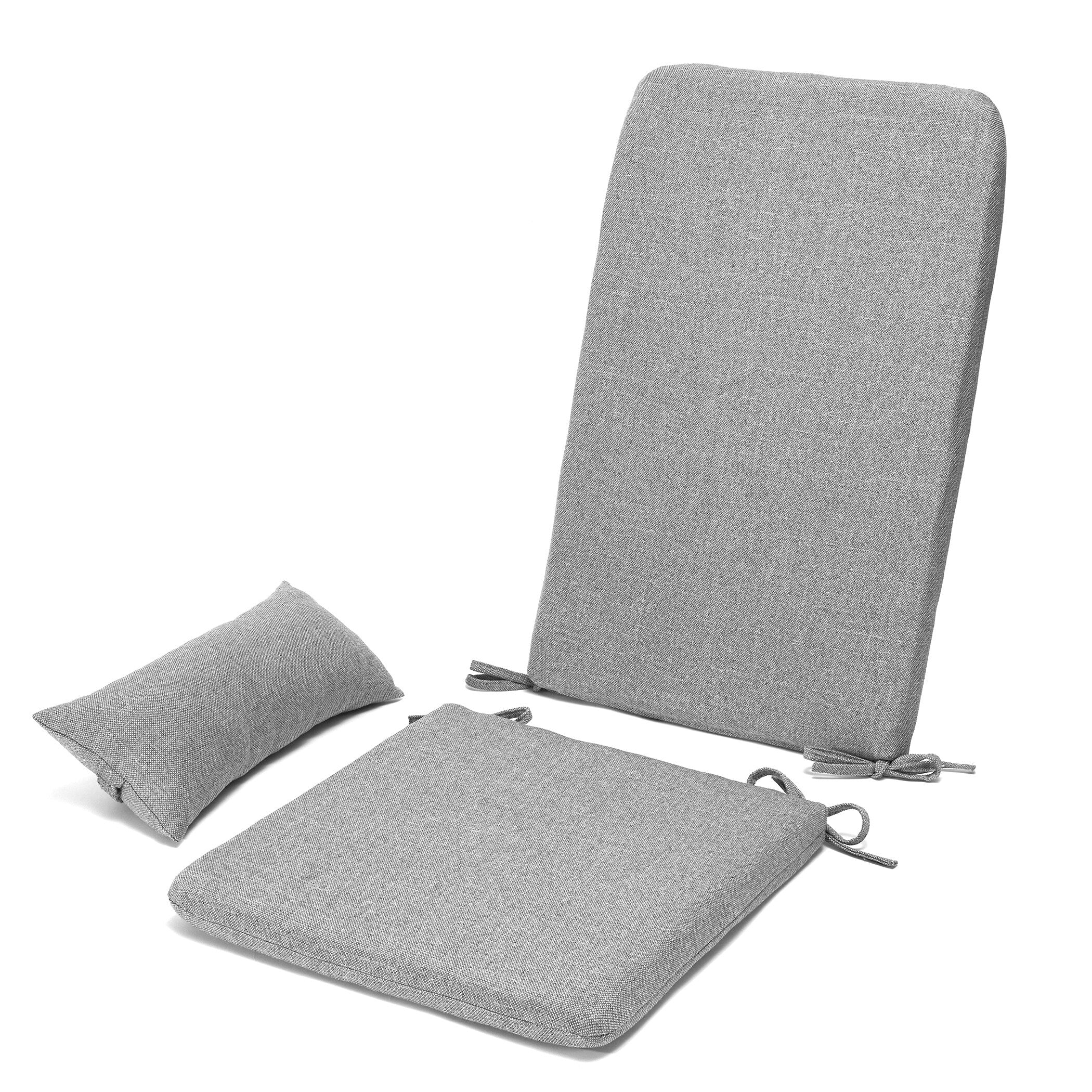 - Includes seat cushion, back cushion, and headrest/lumbar pillow