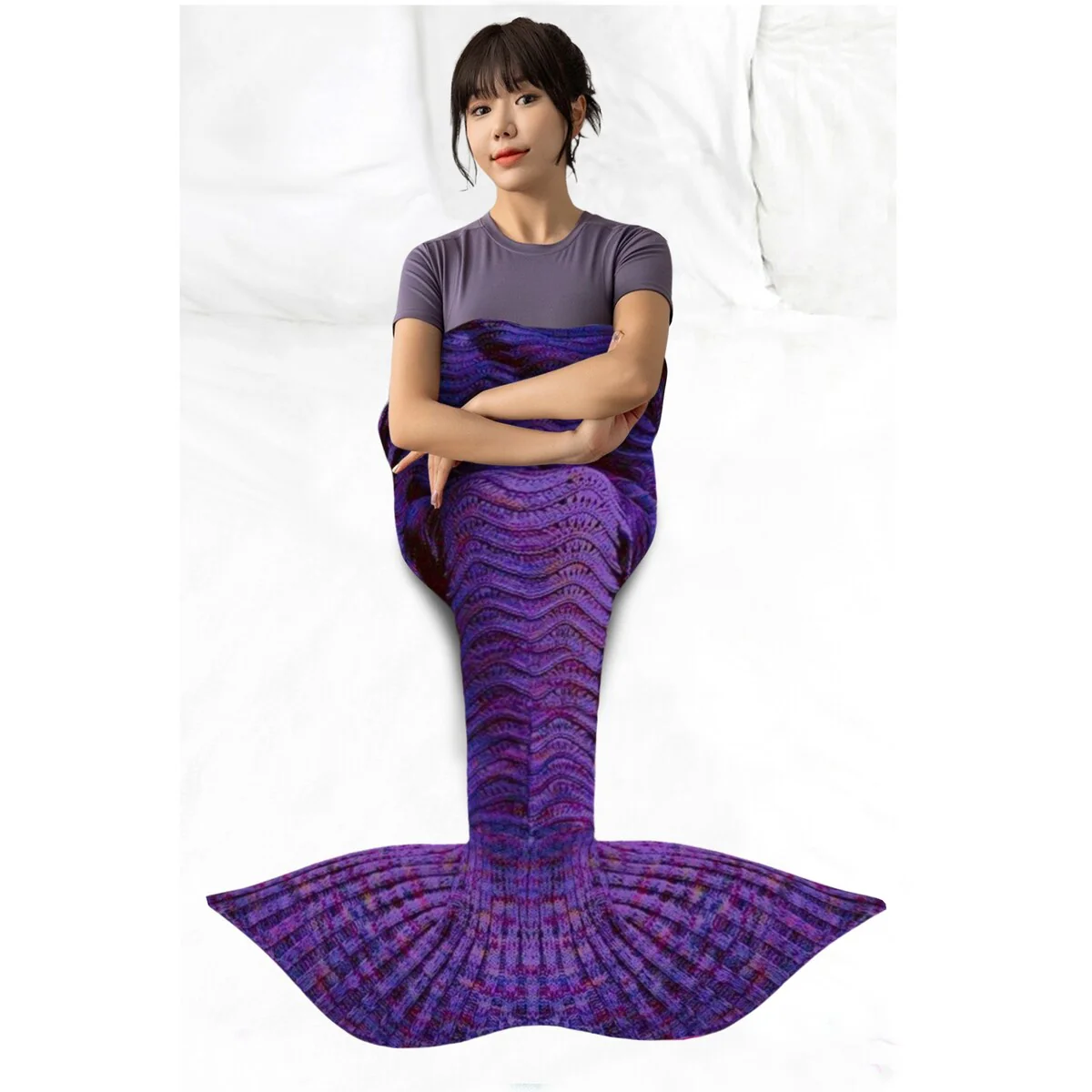 Knitted Mermaid Tail Throw Blanket, Sleeping Bag for Teens, Kids & Adults