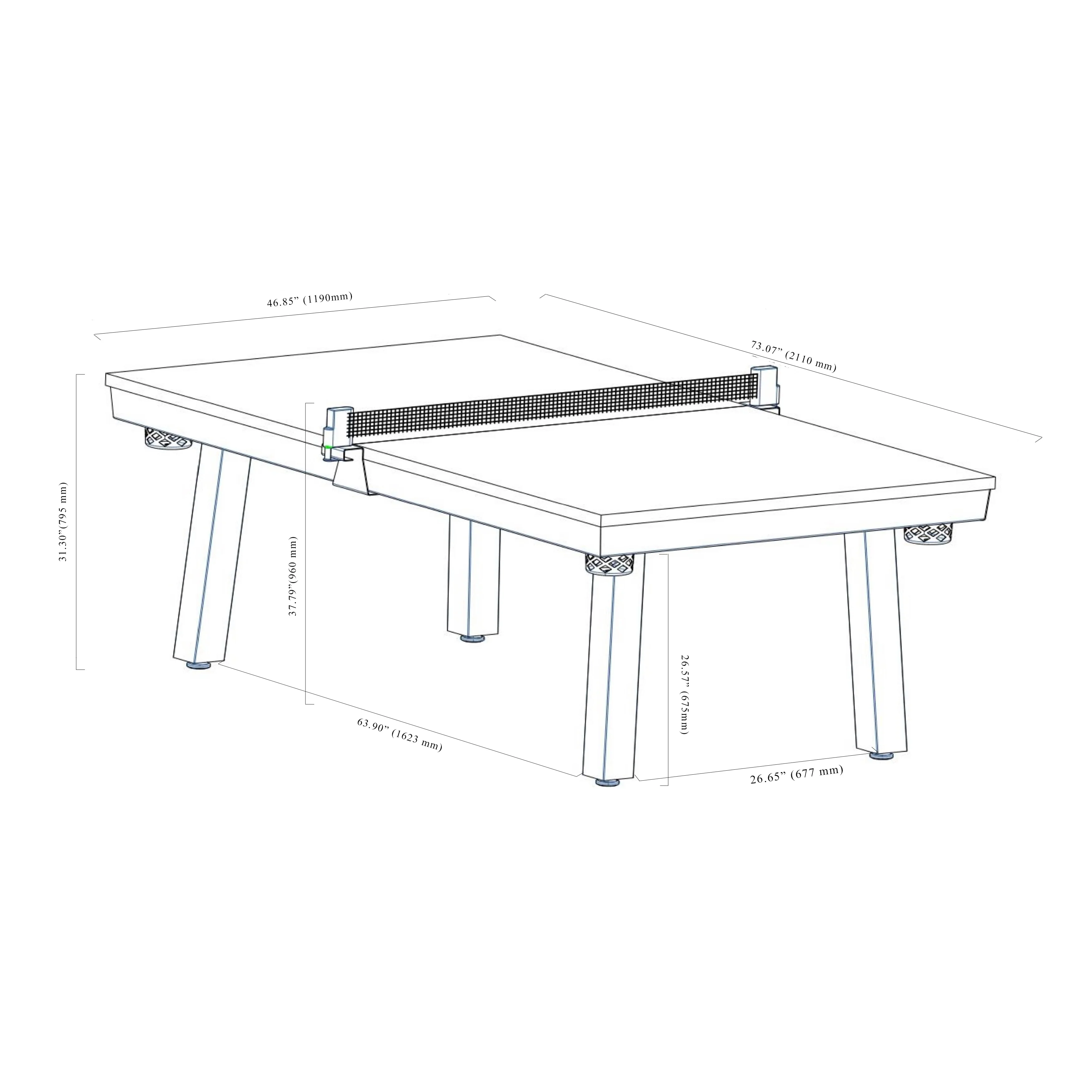 • Pool table measures 83.07"L x 46.85"W x 30.90"H (37.79"H with tennis net); seat benches measure 53.94"L x 17.72"W x 17.72"H