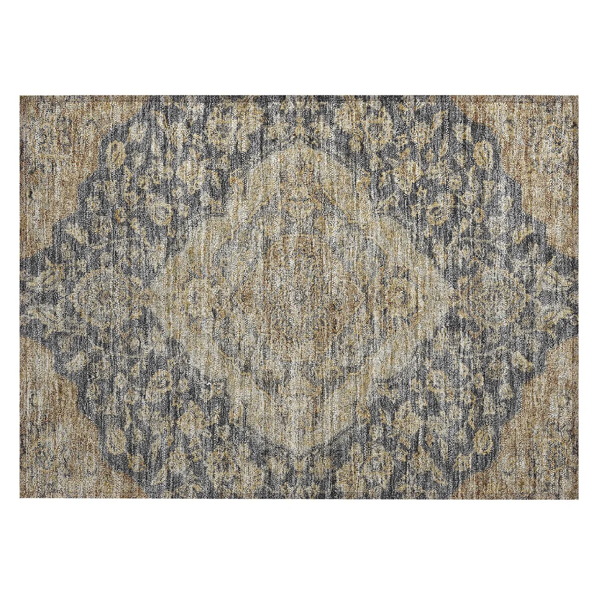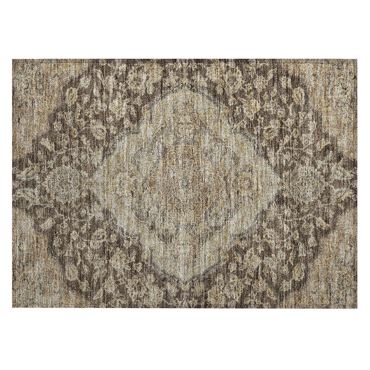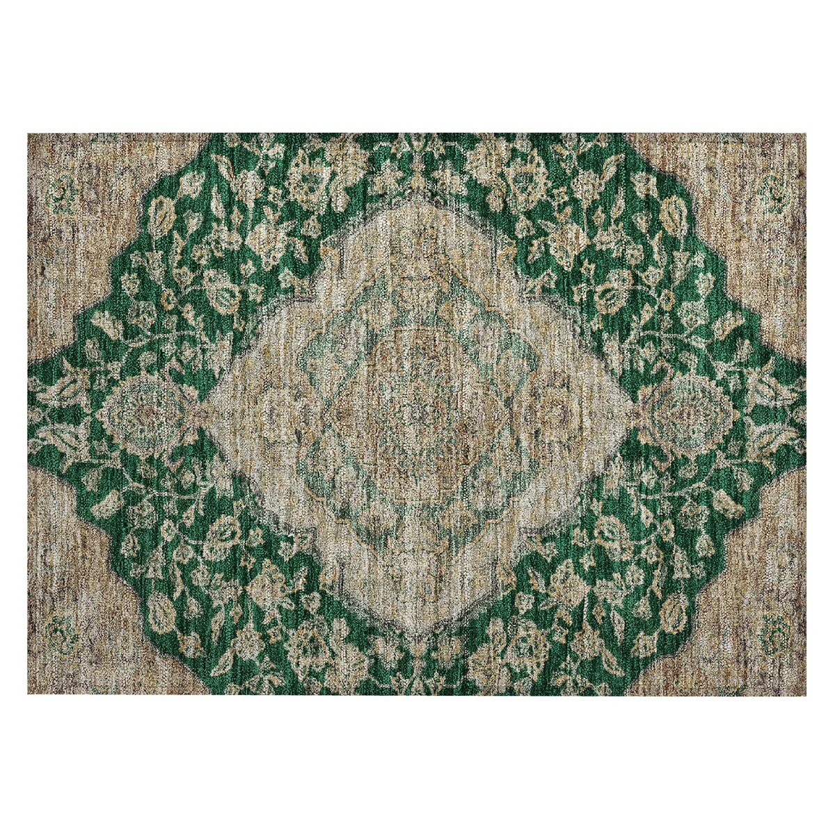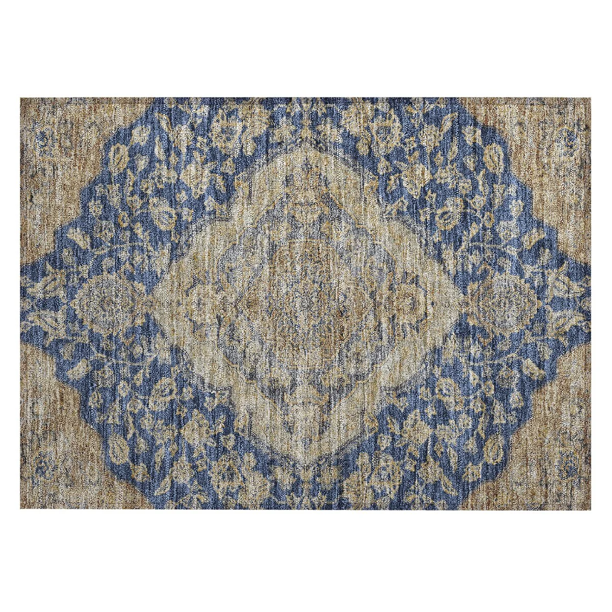 Add sophistication to your home with our area rug, featuring a beautifully detailed large diamond center medallion that seamlessly integrates traditional and global design elements. UV stabilized for lasting color, it's perfect for indoor or outdoor use. The ultra-thin construction ensures easy placement, and its machine-washable nature makes it a practical choice for families and pet owners. All rugs exposed to long periods of intense and direct sunlight can experience loss of color over time. Our rugs perform best in covered outdoor areas and uncovered areas with lower hours of direct sunlight. The ultra thin profile allows for fast drying after rainfall or outdoor cleaning. Larger rug sizes may not fit into a residential washing machine. They may be washed in a commercial size washing machine or hosed-off outside with mild soap and water. Air-dry, do not machine dry. While each rug already has a non-skid backing, the necessity for additional cushion or room settings with high traction areas, may require an additional rug pad.