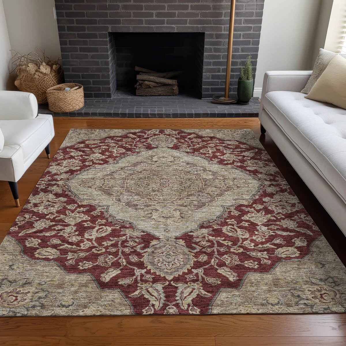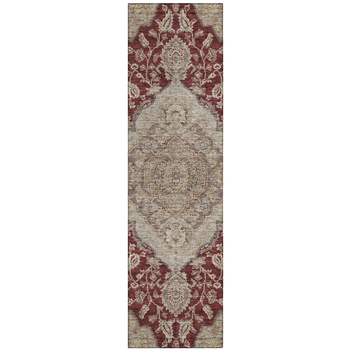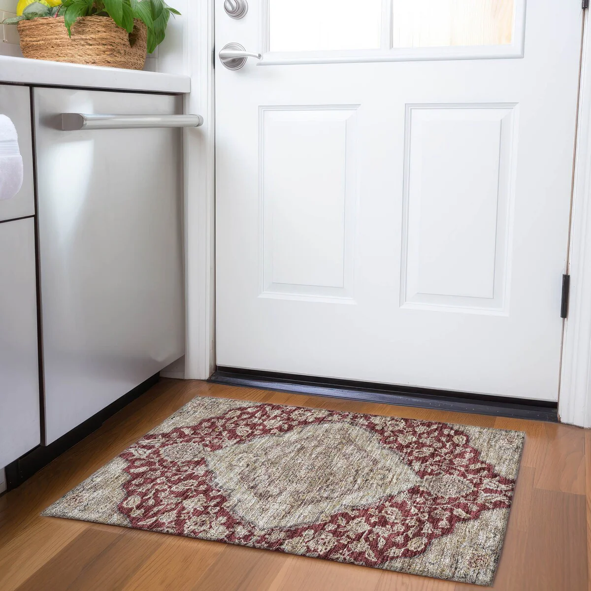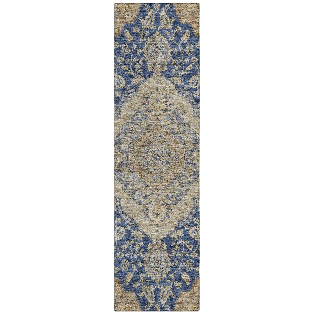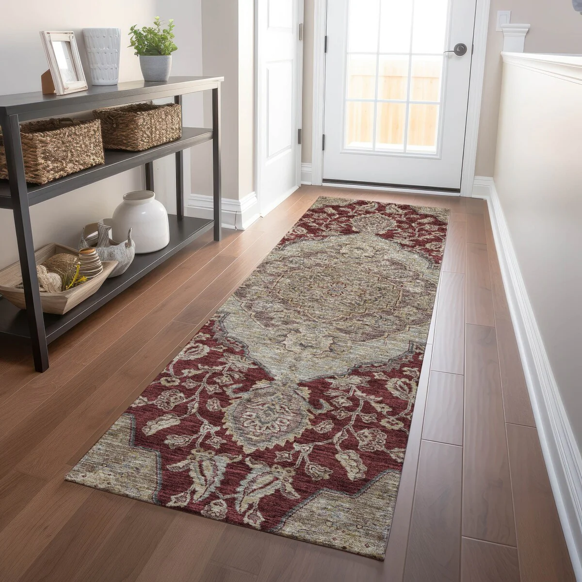 Add sophistication to your home with our area rug, featuring a beautifully detailed large diamond center medallion that seamlessly integrates traditional and global design elements. UV stabilized for lasting color, it's perfect for indoor or outdoor use. The ultra-thin construction ensures easy placement, and its machine-washable nature makes it a practical choice for families and pet owners. All rugs exposed to long periods of intense and direct sunlight can experience loss of color over time. Our rugs perform best in covered outdoor areas and uncovered areas with lower hours of direct sunlight. The ultra thin profile allows for fast drying after rainfall or outdoor cleaning. Larger rug sizes may not fit into a residential washing machine. They may be washed in a commercial size washing machine or hosed-off outside with mild soap and water. Air-dry, do not machine dry. While each rug already has a non-skid backing, the necessity for additional cushion or room settings with high traction areas, may require an additional rug pad.
