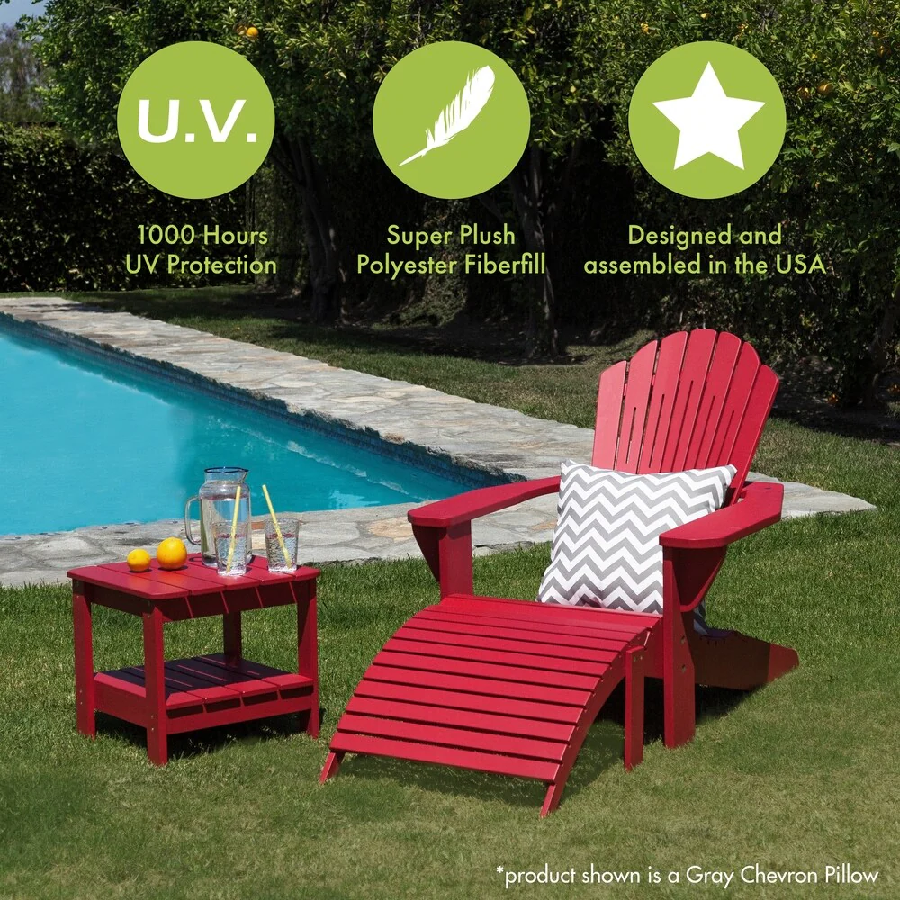 Lounge by the pool or provide extra comfort to your patio furniture with this plush outdoor pillow. The treated polyester shell is designed to withstand UV rays, water, and stains, and it comes in your choice of color. The inside is filled with recycled polyester fiber fill for ultimate comfort.