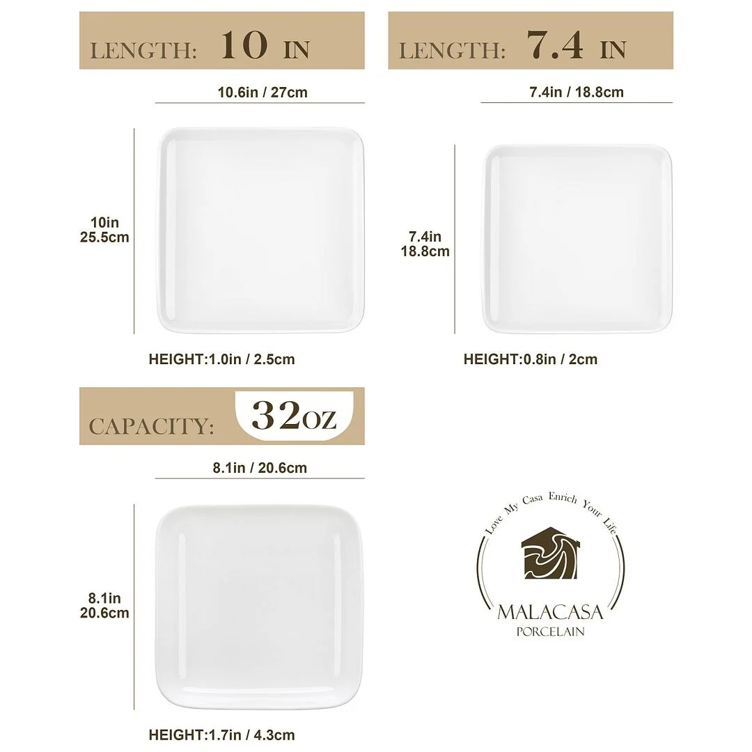 MALACASA Ivy Series Square Dinnerware Set