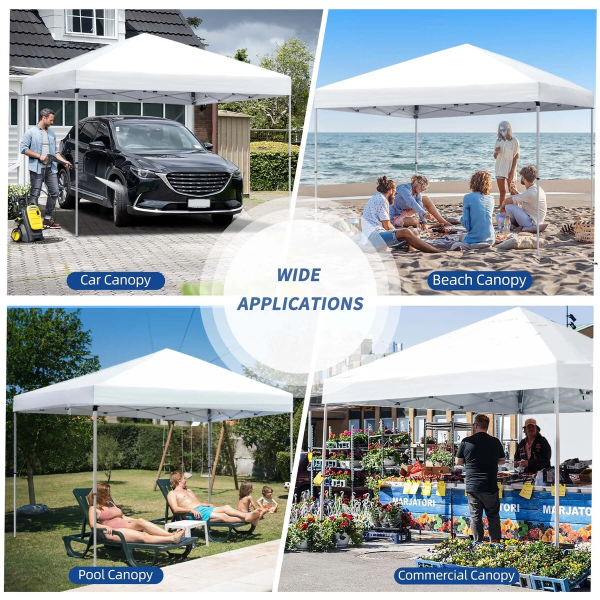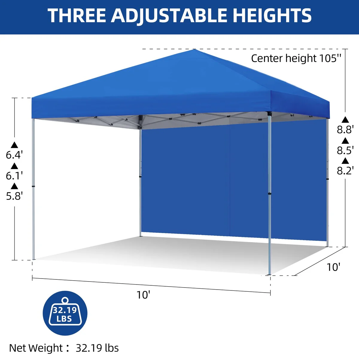 - 3 adjustable heights: Choose from three leg height options (high 6.4', medium 6.1', low 5.8') to suit various outdoor activities. From outdoor exhibitions to picnics and camping trips, this outdoor canopy tent adapts effortlessly to your specific needs
