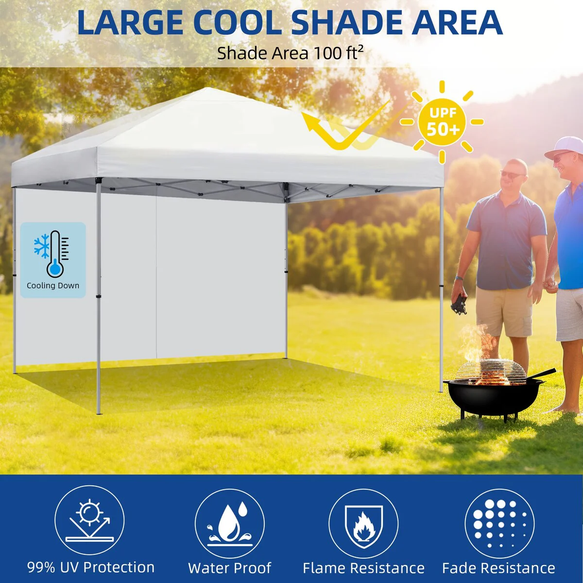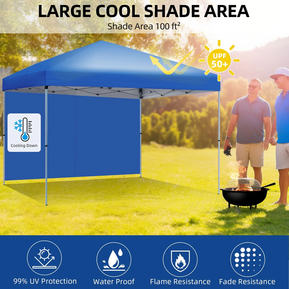 - UV-resistant & water-resistant: Crafted from reliable 210D polyester oxford silver coated fabric, our instant canopy is flame-resistant, UPF 50+, water-resistant, and blocks 99% of UV rays