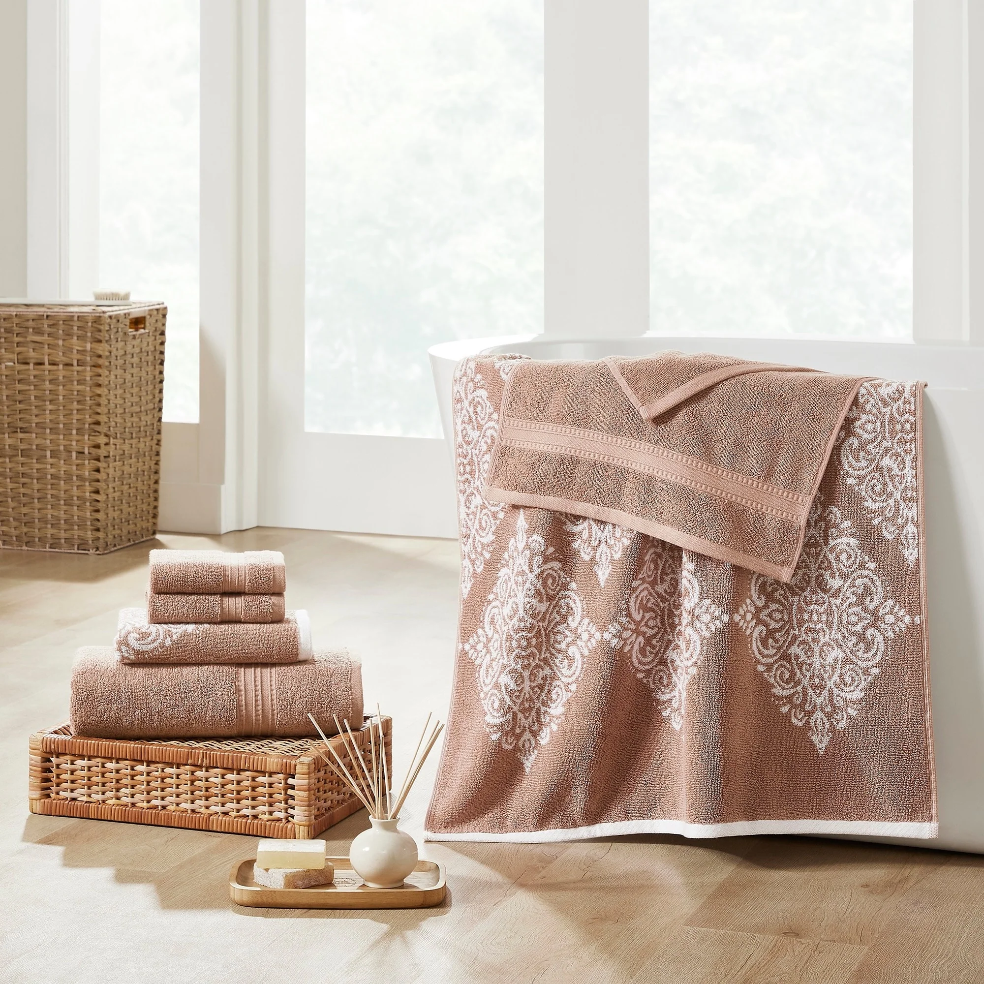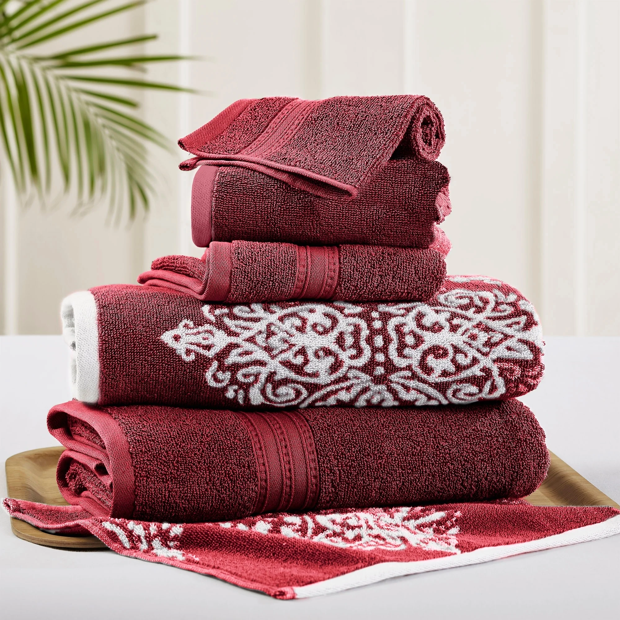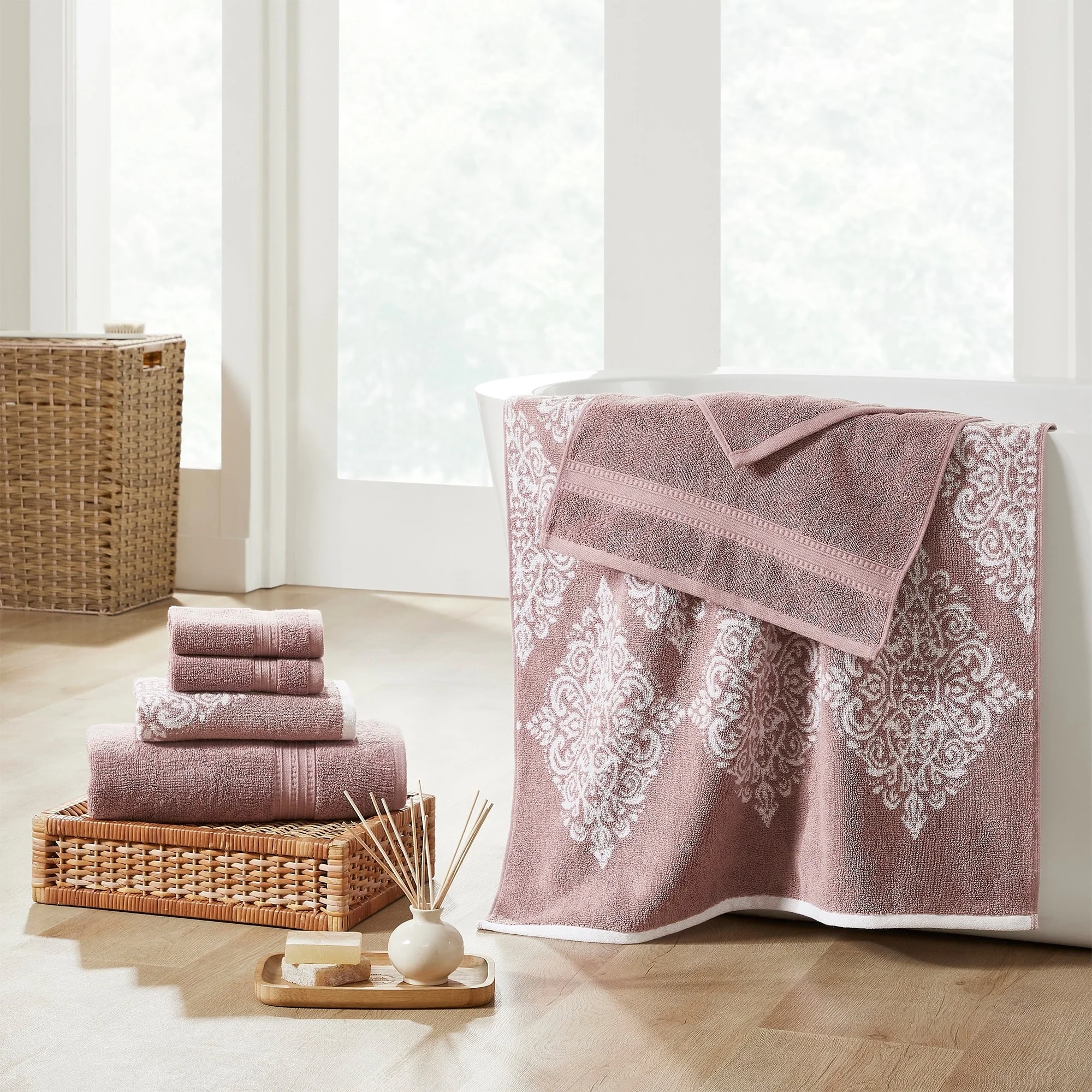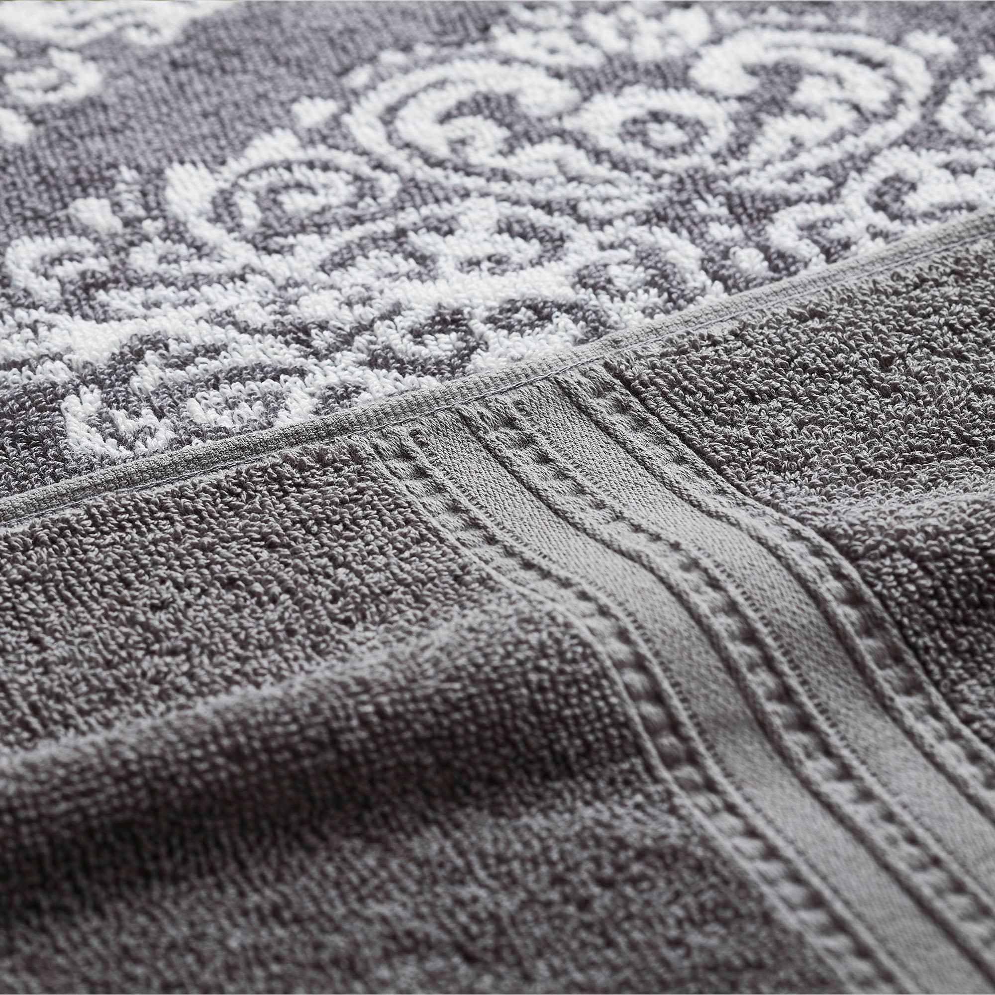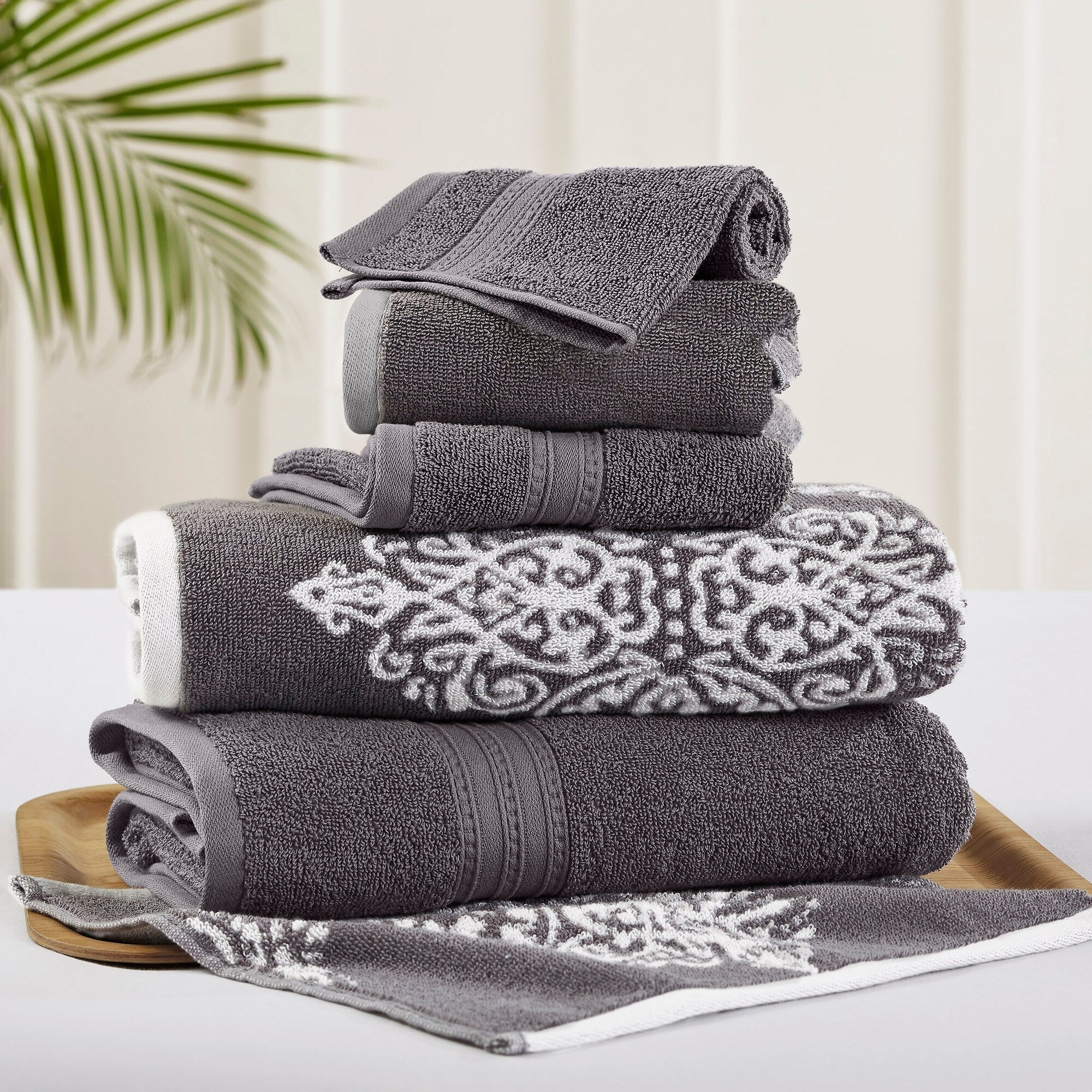 Upgrade your bathroom experience with this luxurious Modern Threads Artesia Damask 6 Piece Yarn Dyed Jacquard Towel Set. Made of 100% combed cotton, these towels are ultra-soft and become even softer with each wash. The zero-twist weave quickly absorbs water, while the stylish geometric jacquard design adds a touch of elegance to your decor.