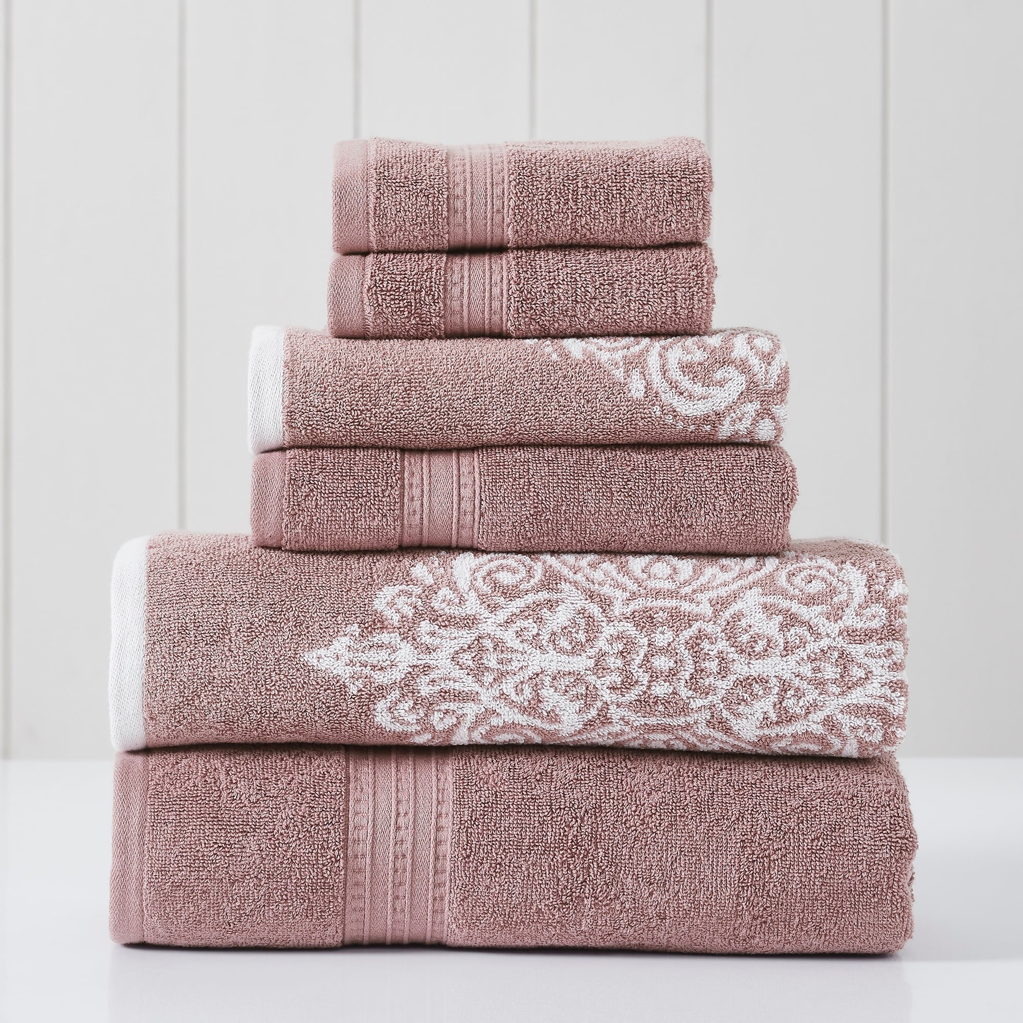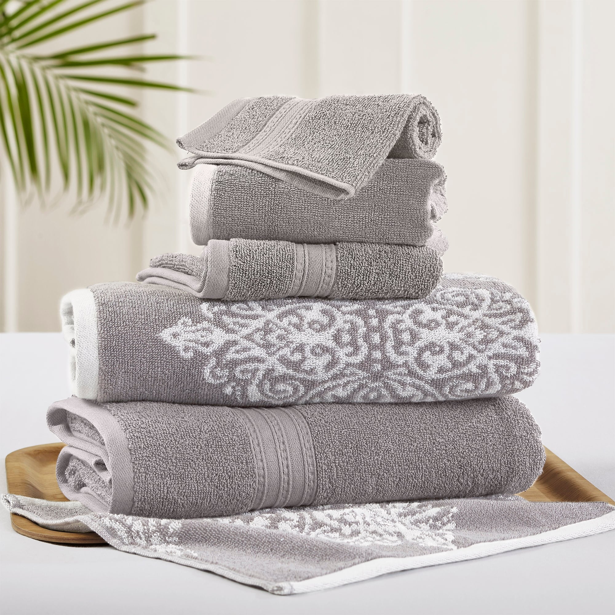 - Set includes 2 bath towels, 2 hand towels, and 2 washcloths