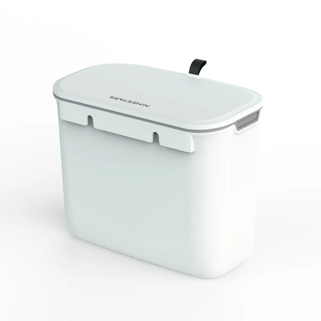 Start composting right in your home with Nine Star's Countertop Compost Caddy. This innovative countertop compost bin features a handy cabinet hook and adhesive mounting bracket to scrape your kitchen waste such as banana peels, eggshells, vegetables, tea or coffee grounds into it with ease. The countertop compost caddy holds up to 1.3 gallons of waste and has a tight slide closing lids to stow any compostables for a few days if you'd like without odors or spills. Meanwhile its durable yet simple construction fits any home décor making it not only perfect for the planet, but perfect for your kitchen.