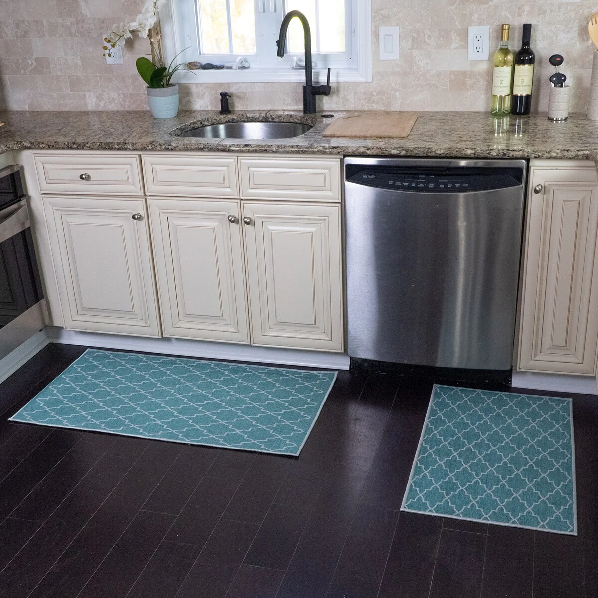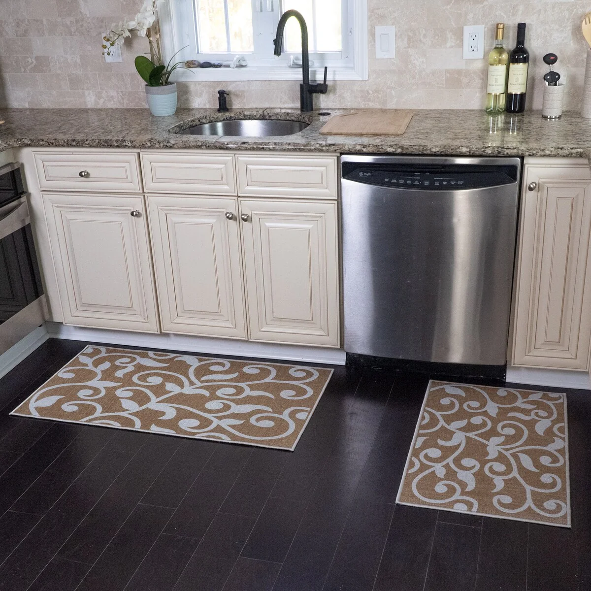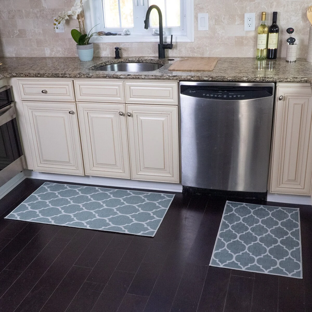 • Non-skid Washable Kitchen Runner Rugs (Set of 2) - Set of 44 x 24 and 31.5 x 20 Inches