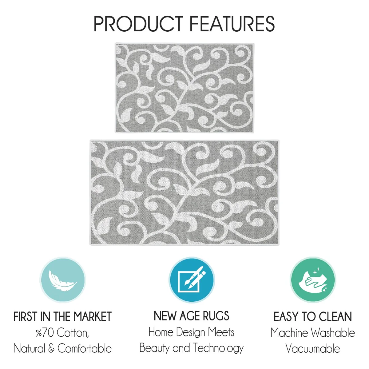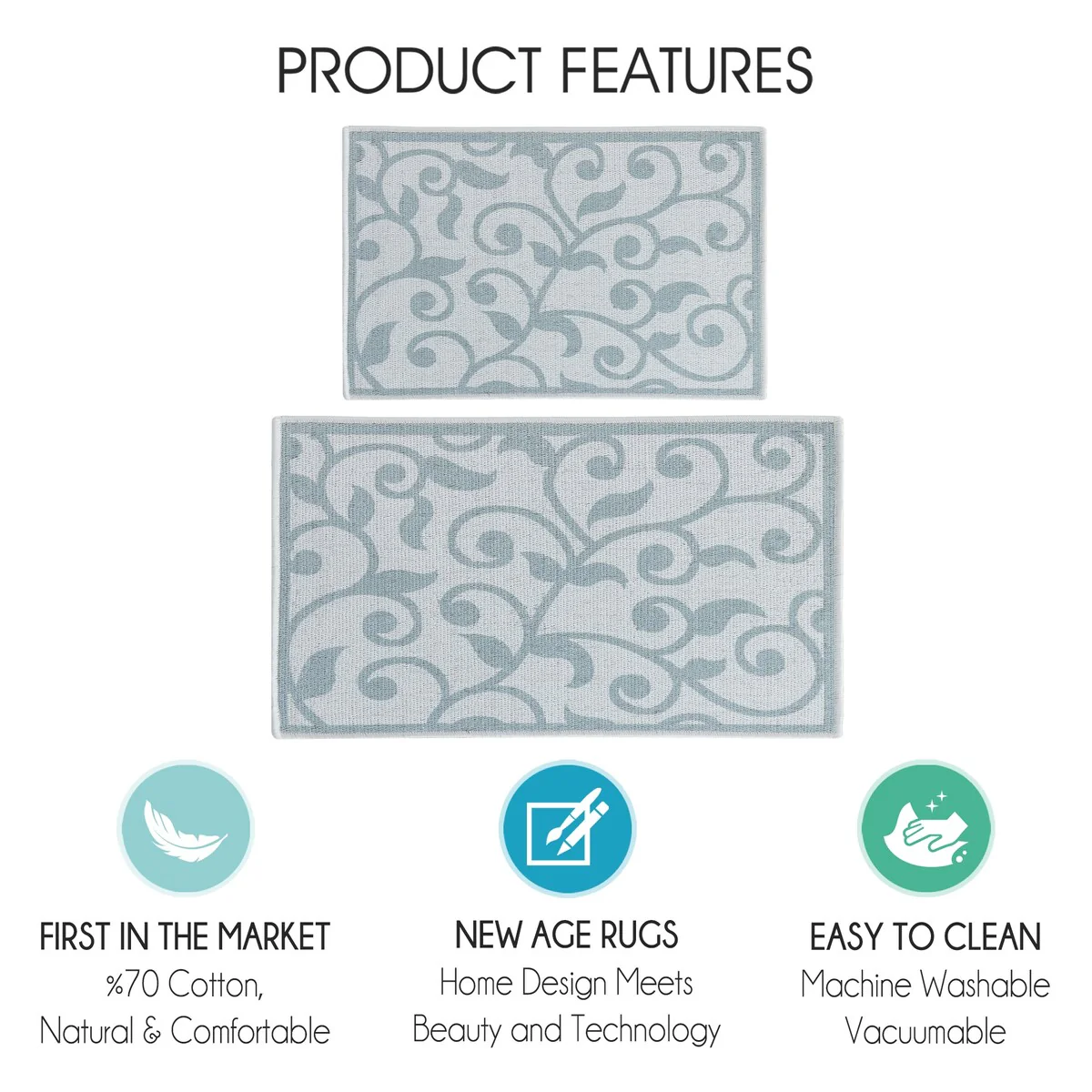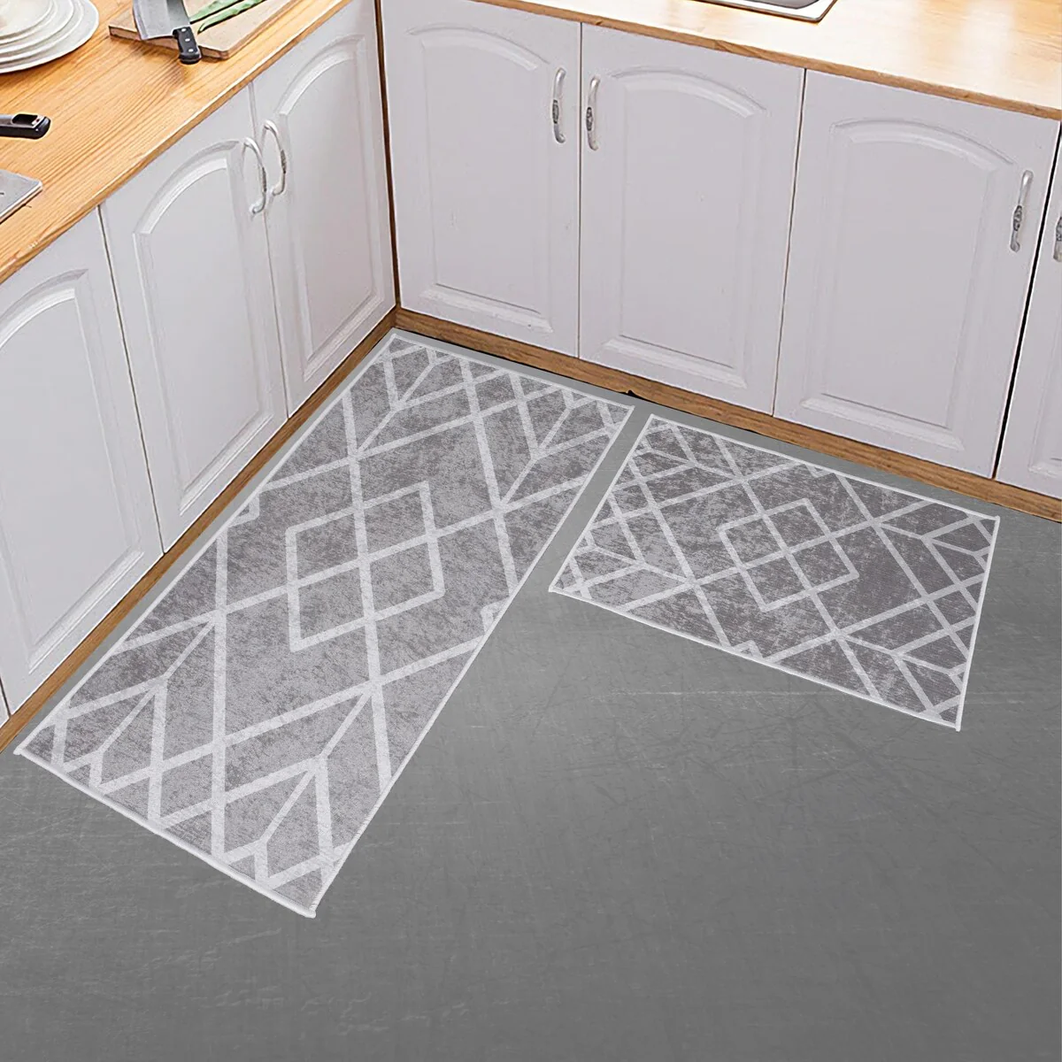 Add a touch of style and utility to your kitchen with this set of two Non-skid Washable Kitchen Runner Rugs. Made of 70-percent cotton and 30-percent polyester, these lightweight, soft, and durable mats are designed to offer lasting comfort and prevent slips. The non-skid backing ensures that the rugs stay firmly in place, while the low pile allows for easy positioning near doors. Plus, the washable design makes maintenance a breeze.