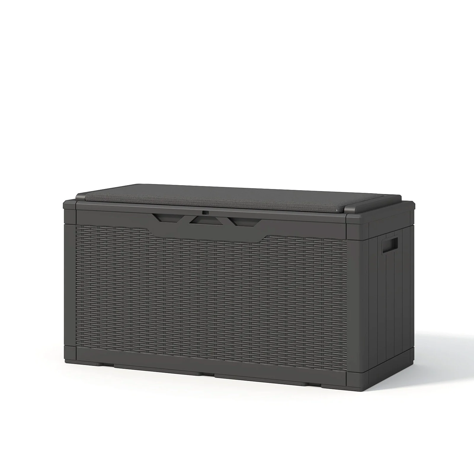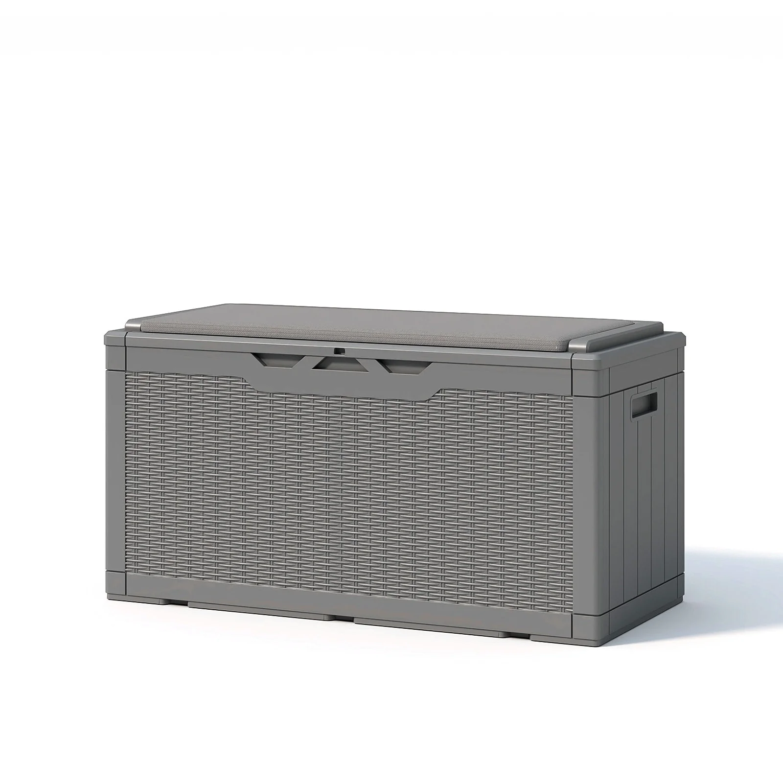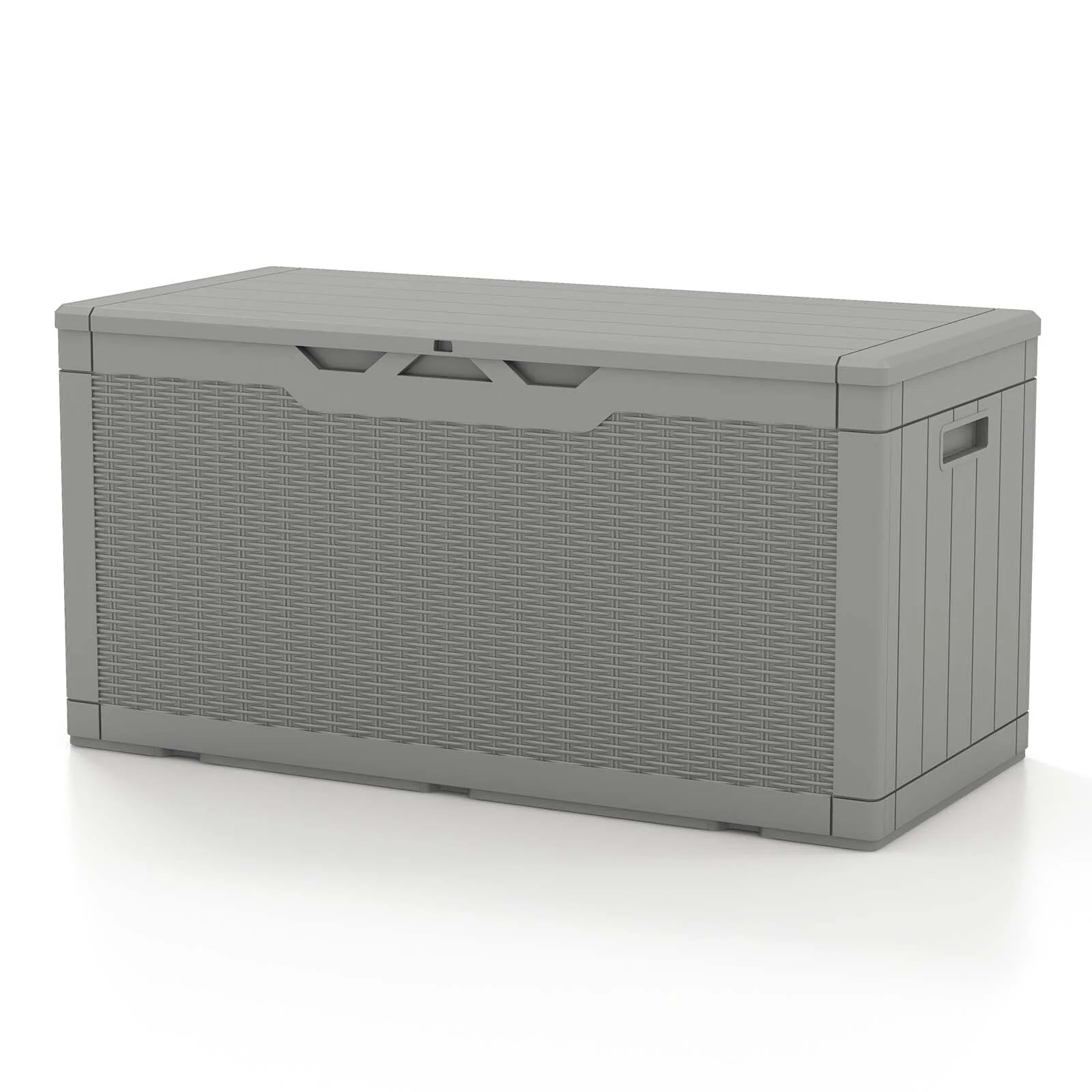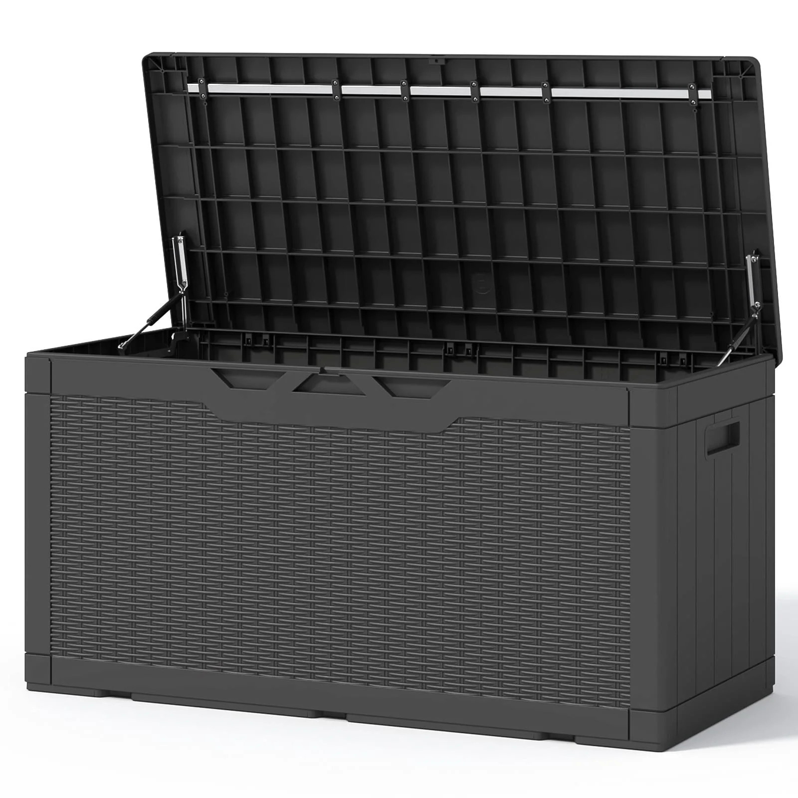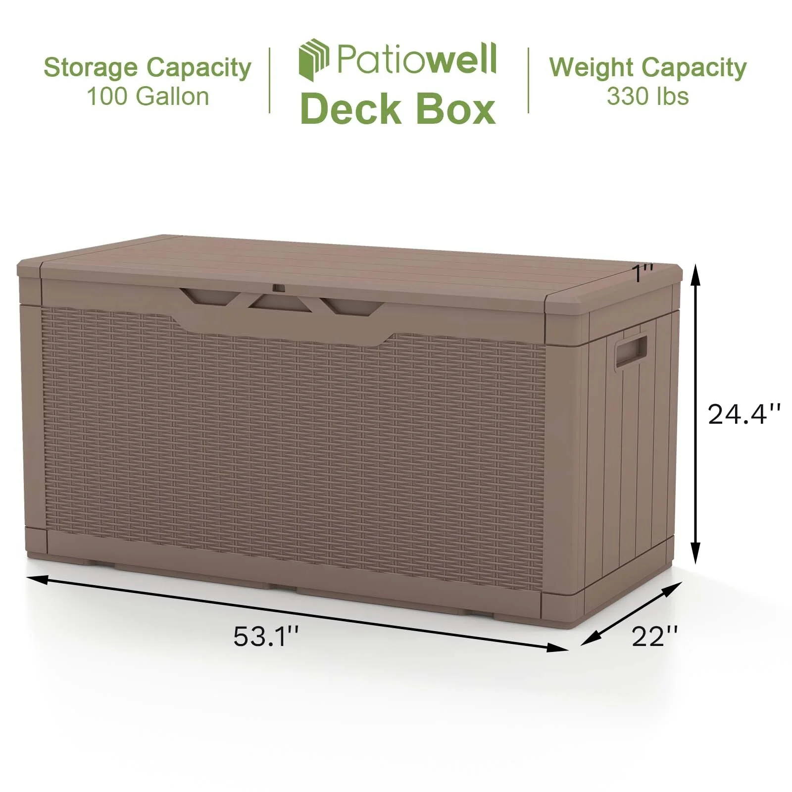 - Spacious and versatile: The deck box can store up to 100 gallons of items, such as patio furniture, pool accessories, toys, garden tools, and sports equipment. You can also use it as a bench to seat two people comfortably.