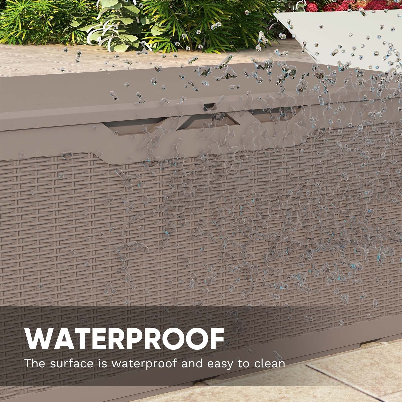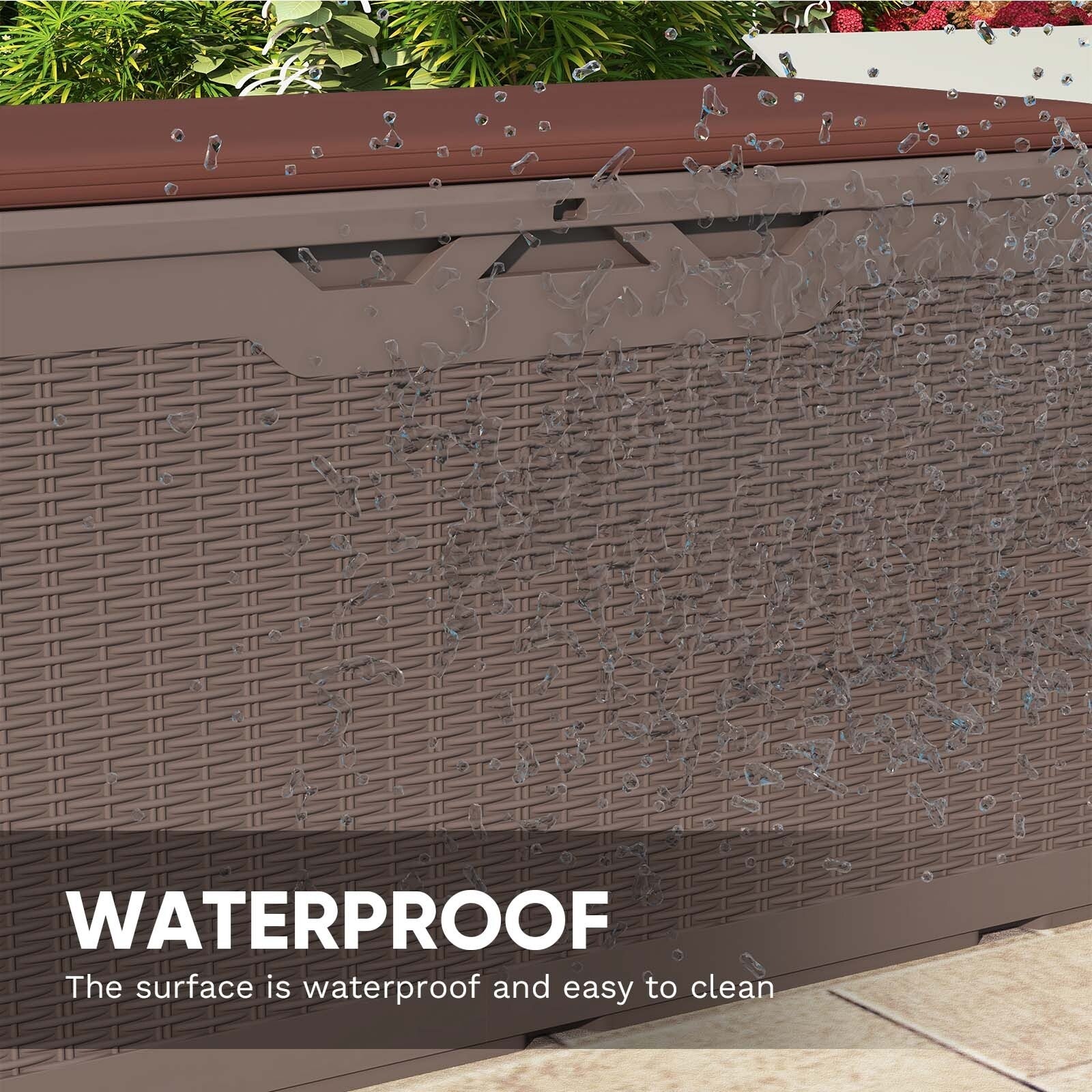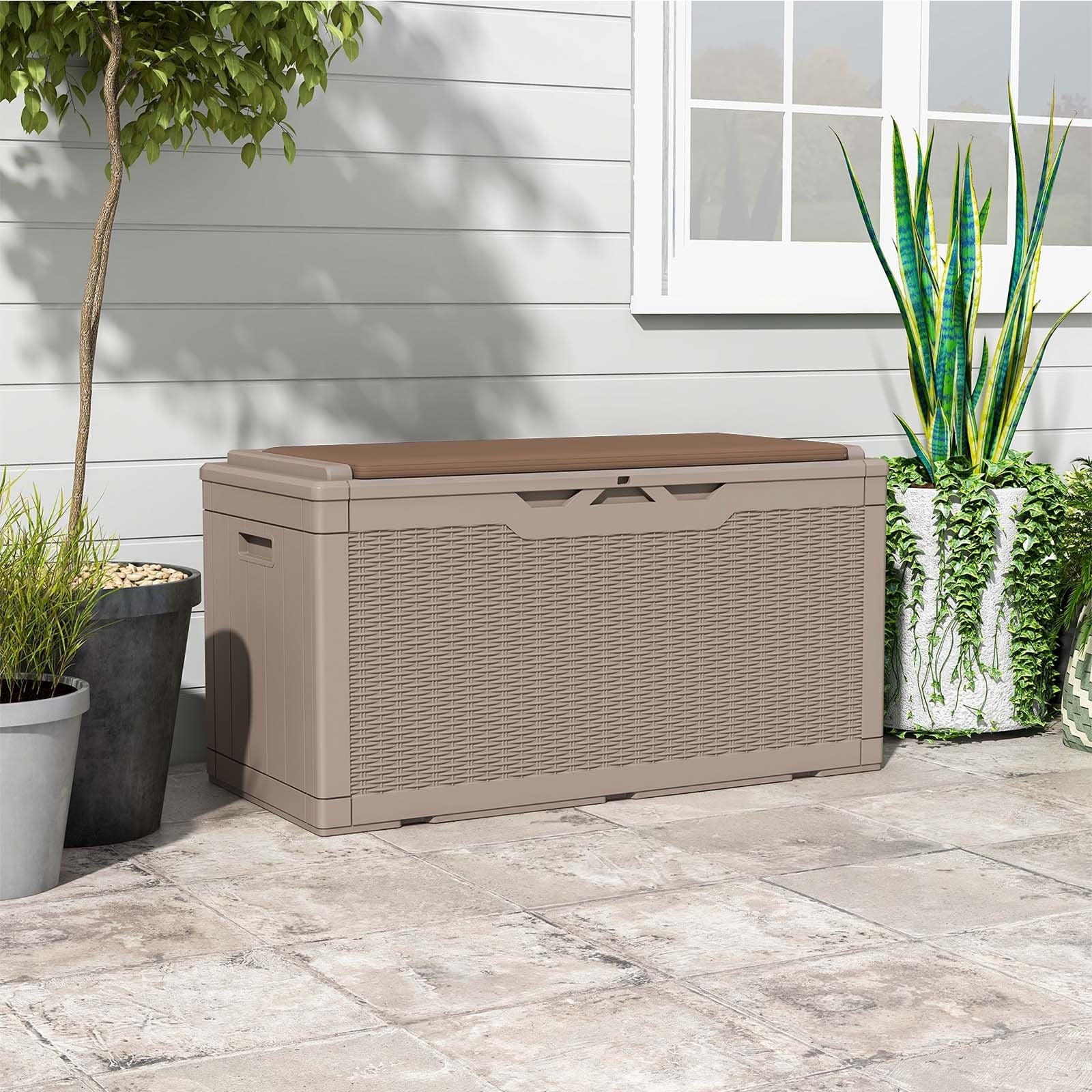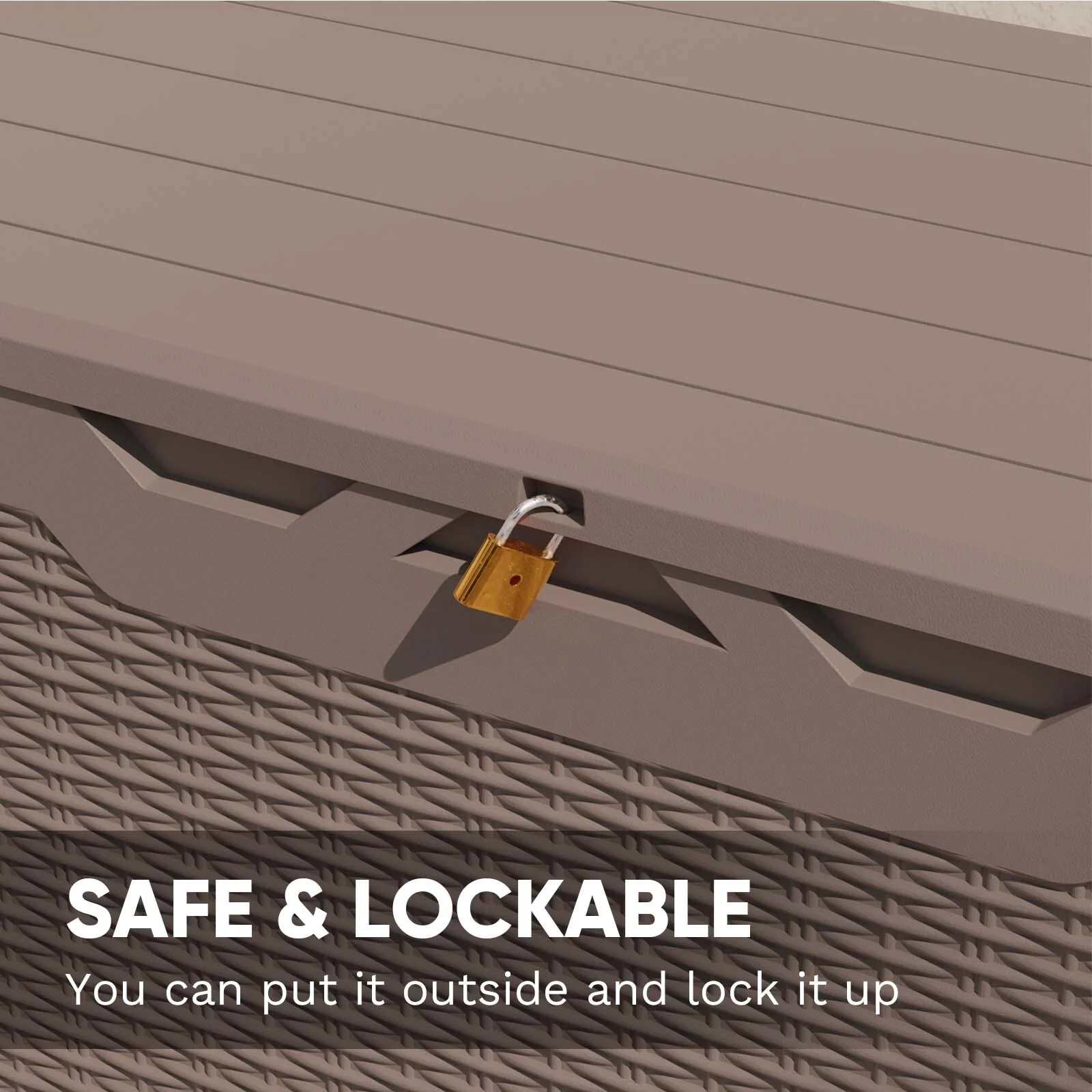 - Elegant and stylish: The deck box has a rattan design that adds a touch of elegance to your outdoor decor. It comes in four colors, brown / grey / tan / black, to match your preference and style.