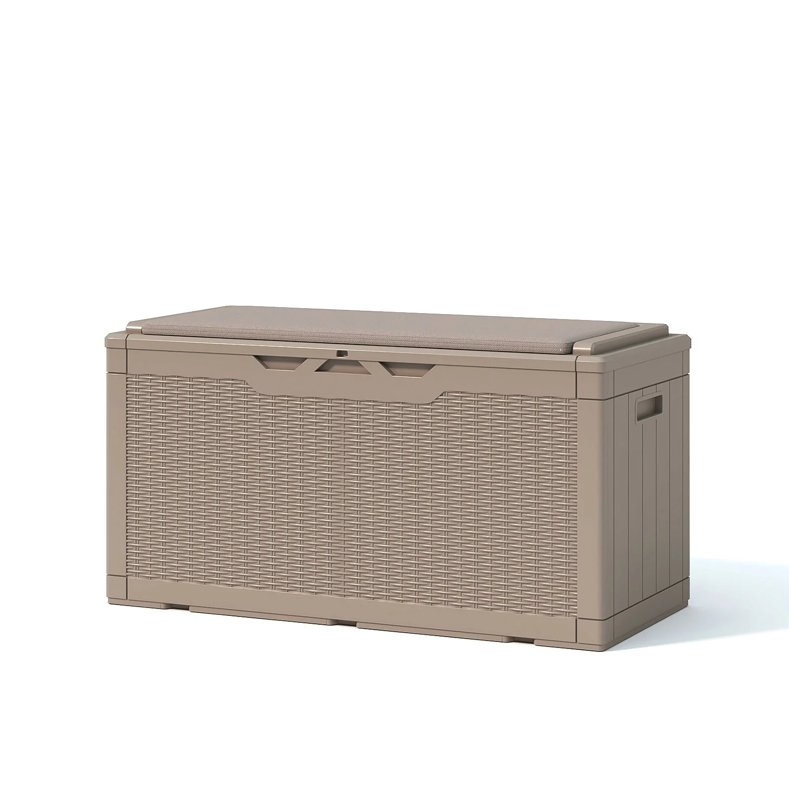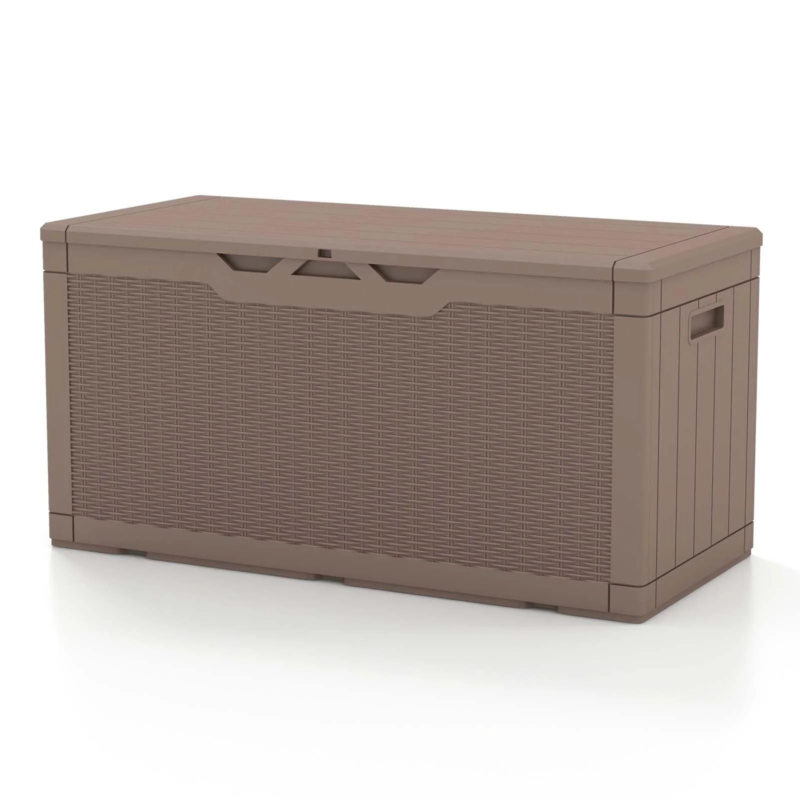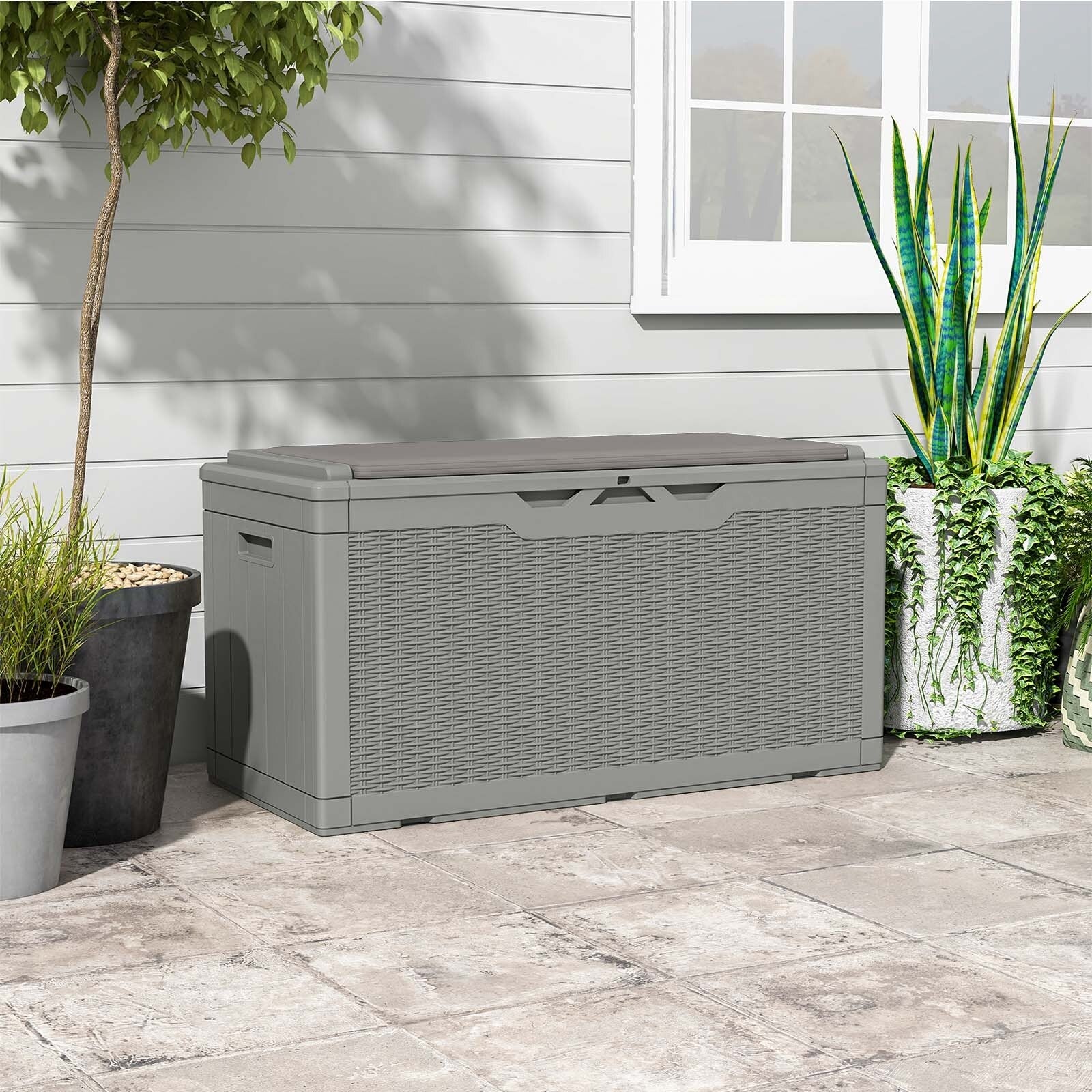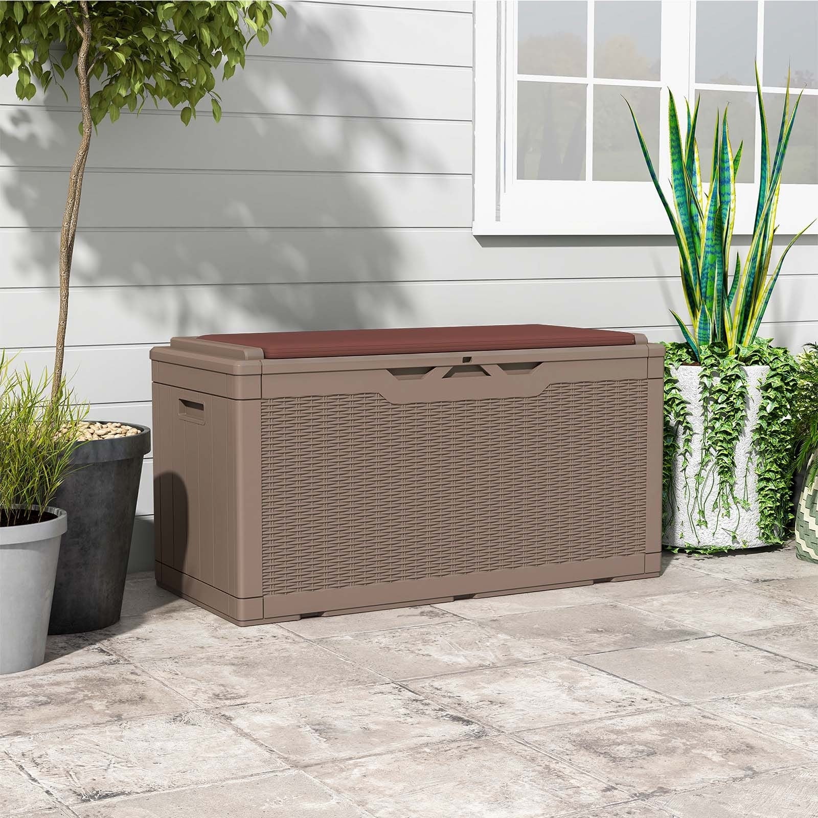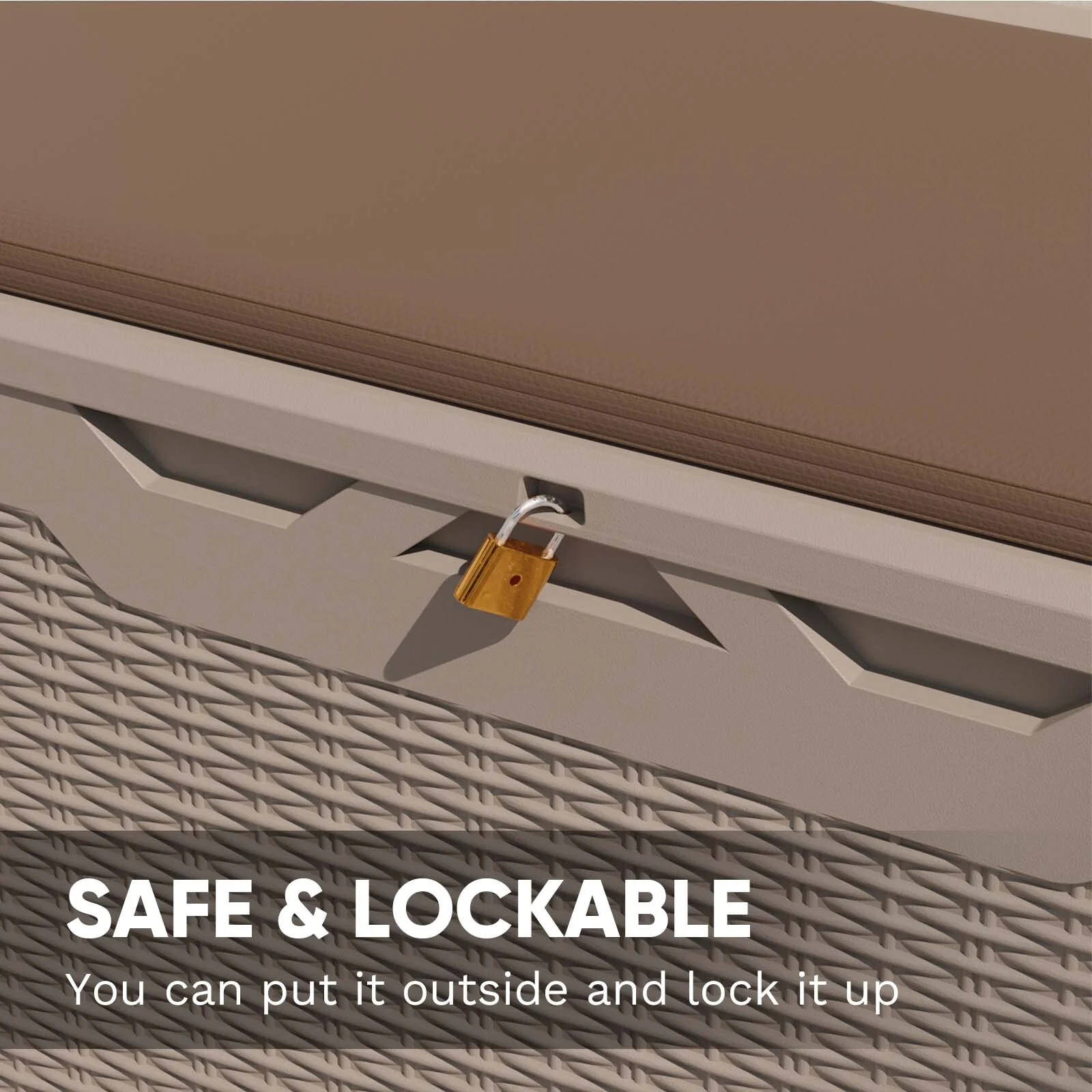- Elegant and stylish: The deck box has a rattan design that adds a touch of elegance to your outdoor decor. It comes in four colors, brown / grey / tan / black, to match your preference and style.
