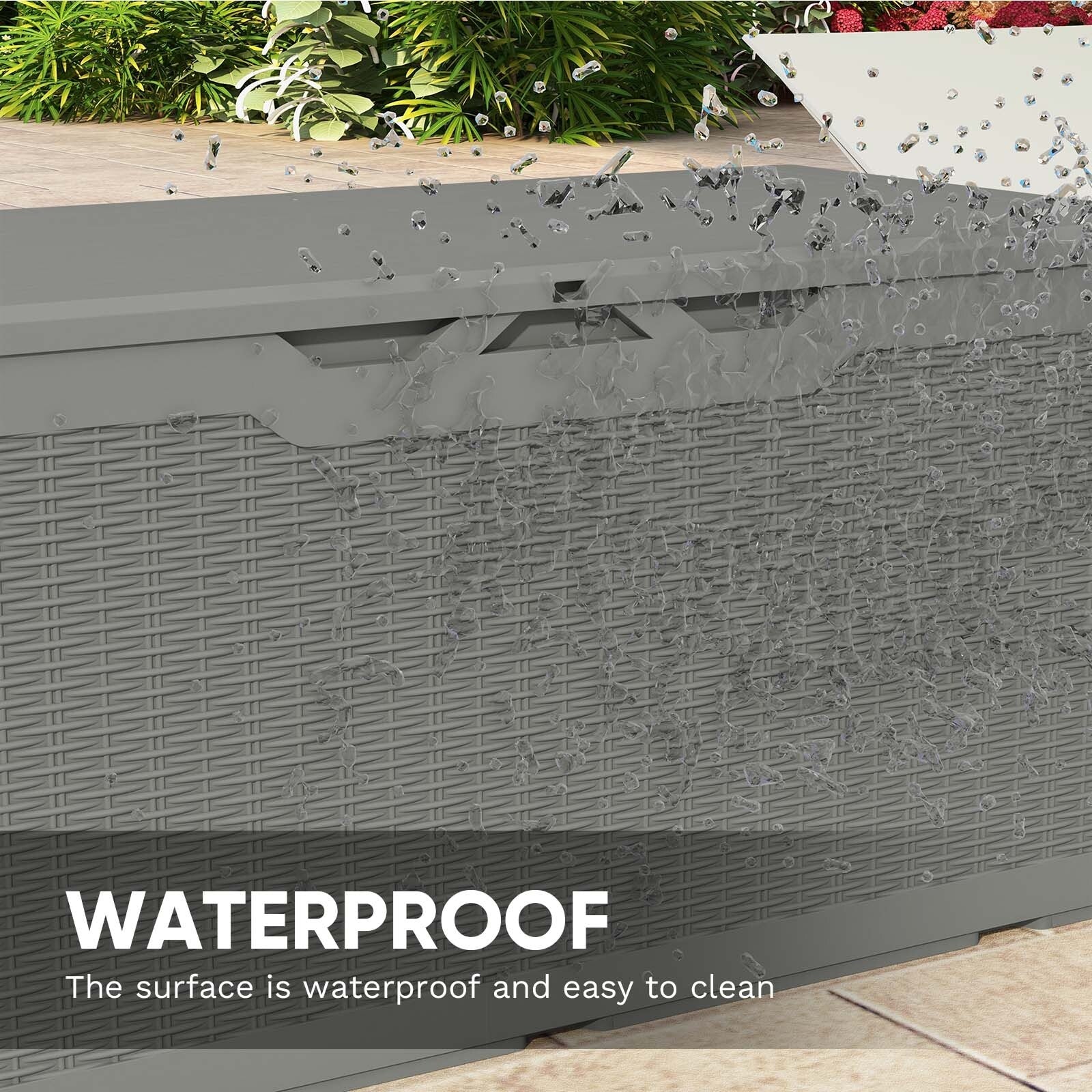 - Durable and weather-resistant: The deck box is made of high-quality resin material that is waterproof, rust-proof, and weather-resistant. It can withstand harsh weather conditions and keep your items safe and dry.