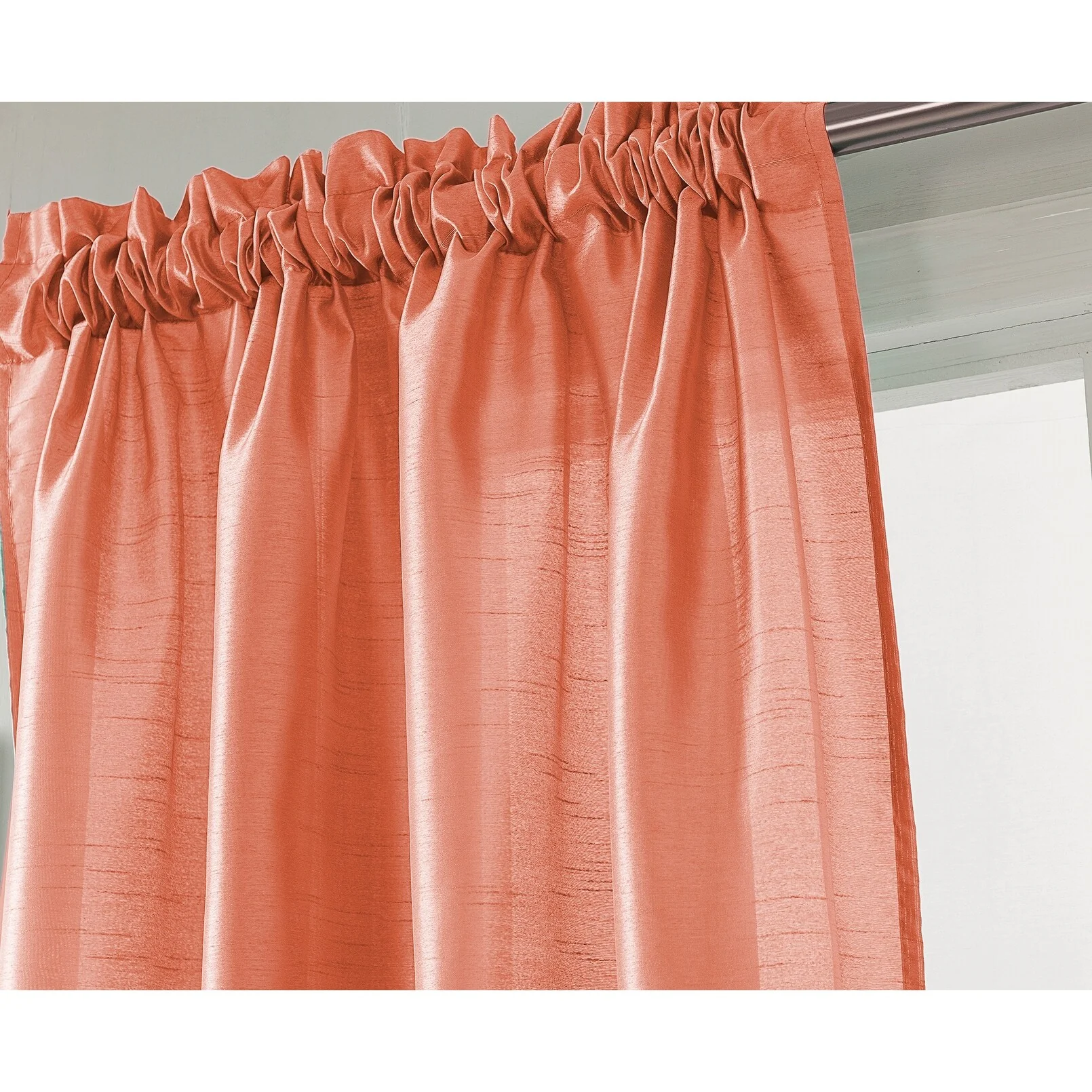 Add a touch of elegance to your windows with this stunning Porch & Den Eads curtain panel. Crafted from high-quality polyester faux silk, this semi-sheer panel is available in a variety of bright colors that are sure to catch the eye. The slightly shimmery fabric will beautifully filter natural light into your room, creating a warm and inviting atmosphere. Featuring a convenient rod pocket header, this panel is easy to hang and adds a sophisticated touch to any space.