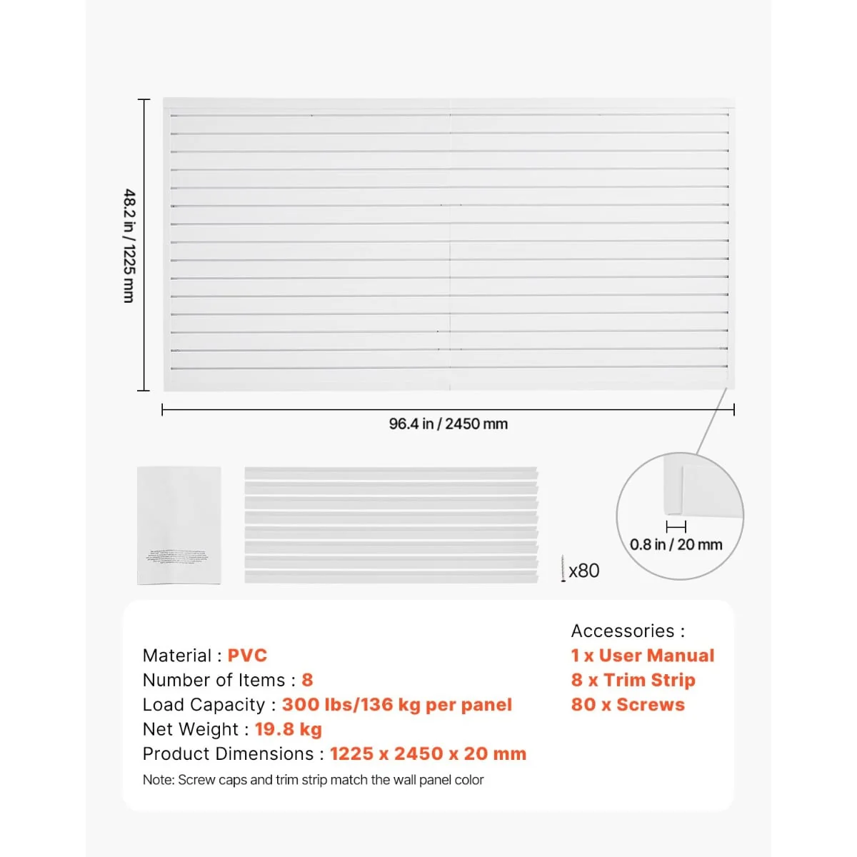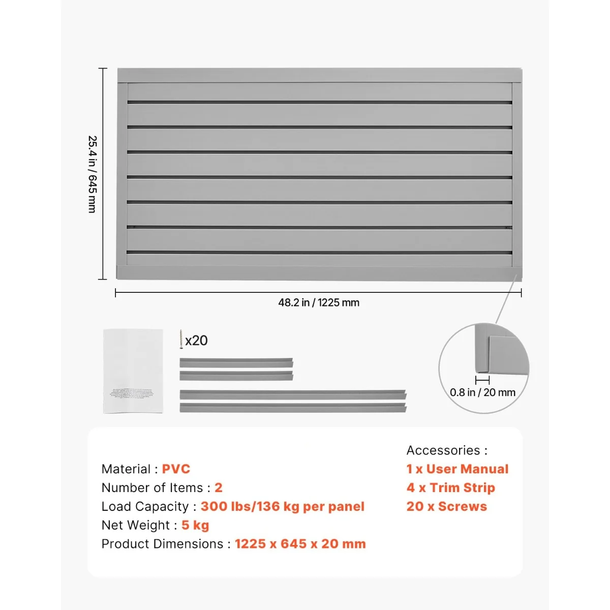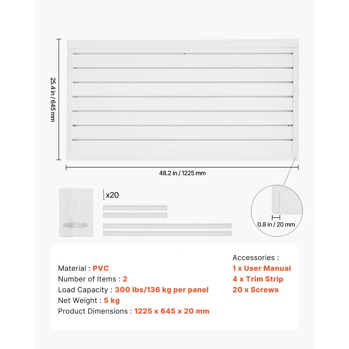 • Durable & Sturdy: Made from thick, solid PVC material, this slat wall panel offers higher durability compared to traditional materials (such as wood and metal) with outstanding weather-resistance, fire-proof, and waterproof properties, suitable for both indoor and outdoor use.