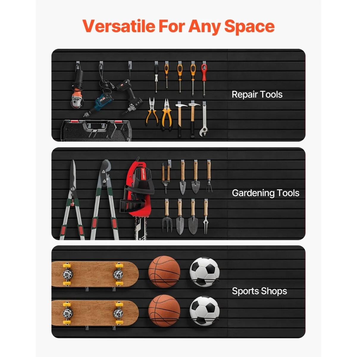 • Wide Application: Suitable for garages, workshops, gardens, and other home and commercial spaces, the slat wall panel provides a comprehensive wall organization solution that combines storage and display based on your specific needs.