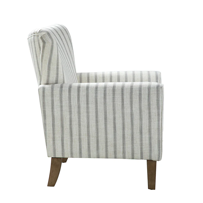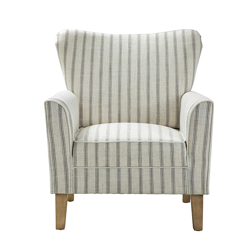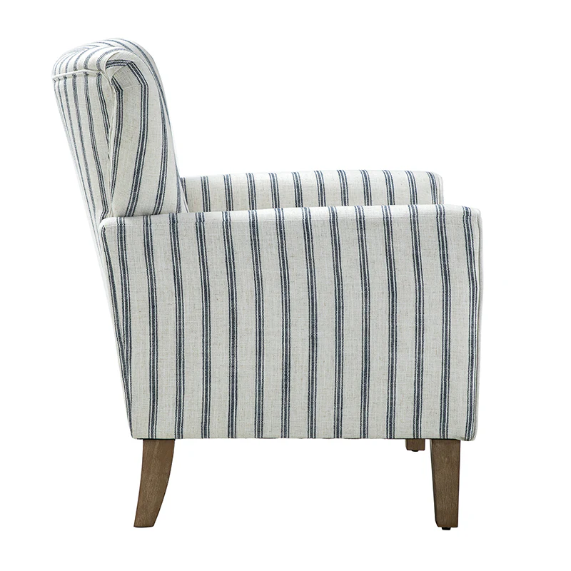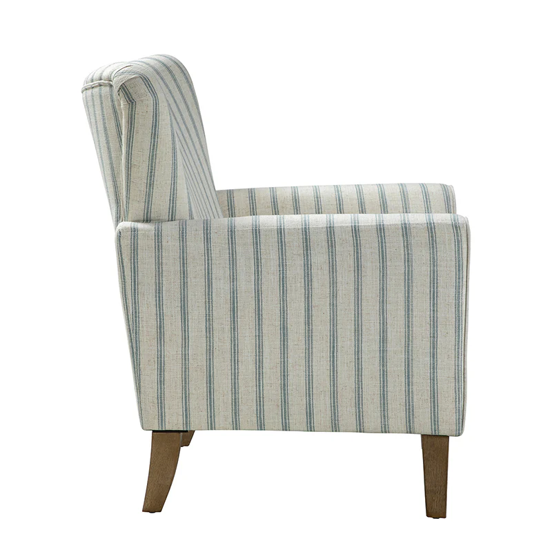Bringing just the right amount of coastal farmhouse modern style to your living room, this armchair features a classic nautical stripe pattern and fresh hues. It's made with a sturdy wooden frame that's guaranteed to last for years. We love how its wide wingback and comfortable arms can add style to any room. Wrapped in polyester fabric, this contemporary chair has a seat padded with foam and curved springs to support you as you relax. Plus, it's easy to vacuum up those unavoidable crumbs. This chair which can add a romantic flair to your living room and can hold up to 250 lbs.