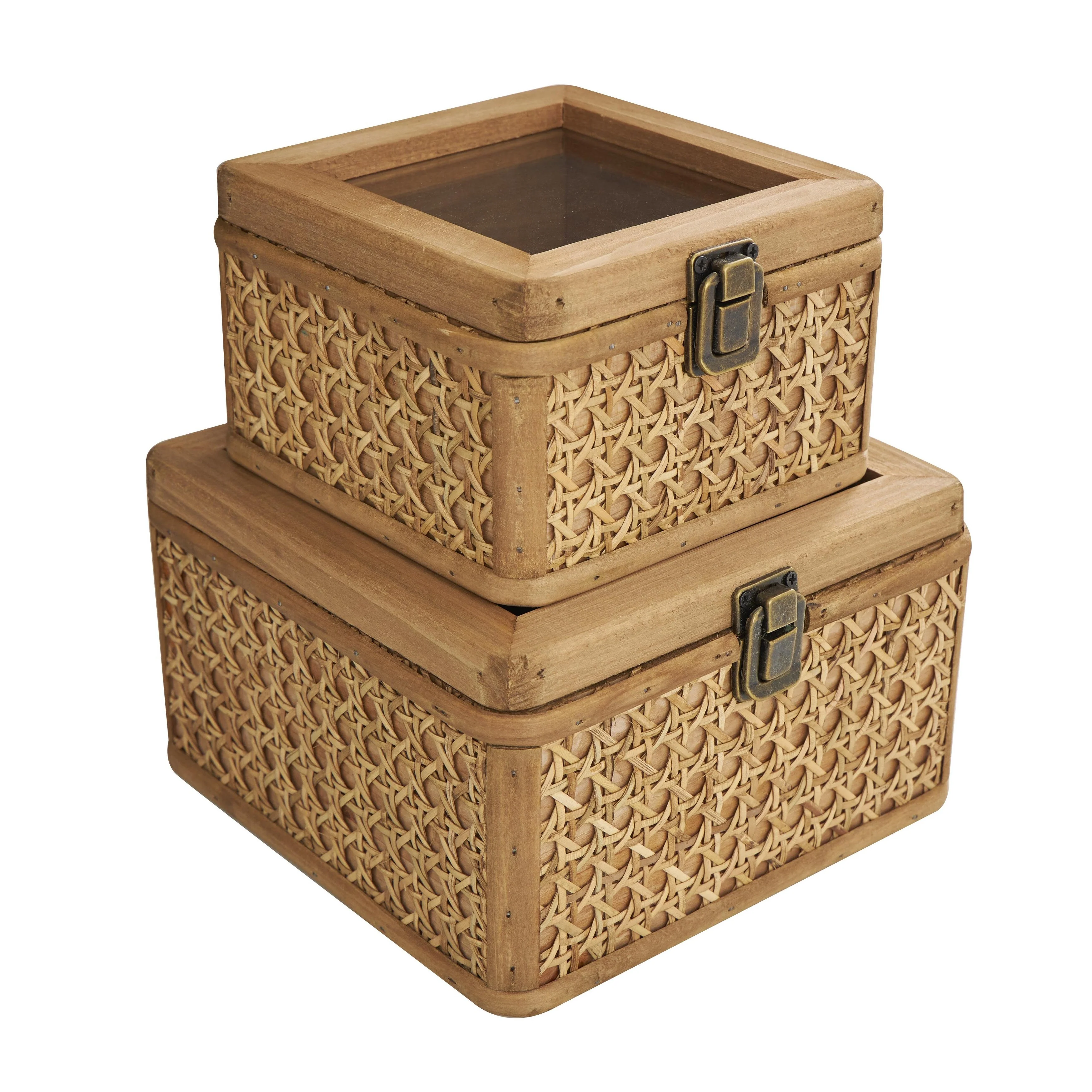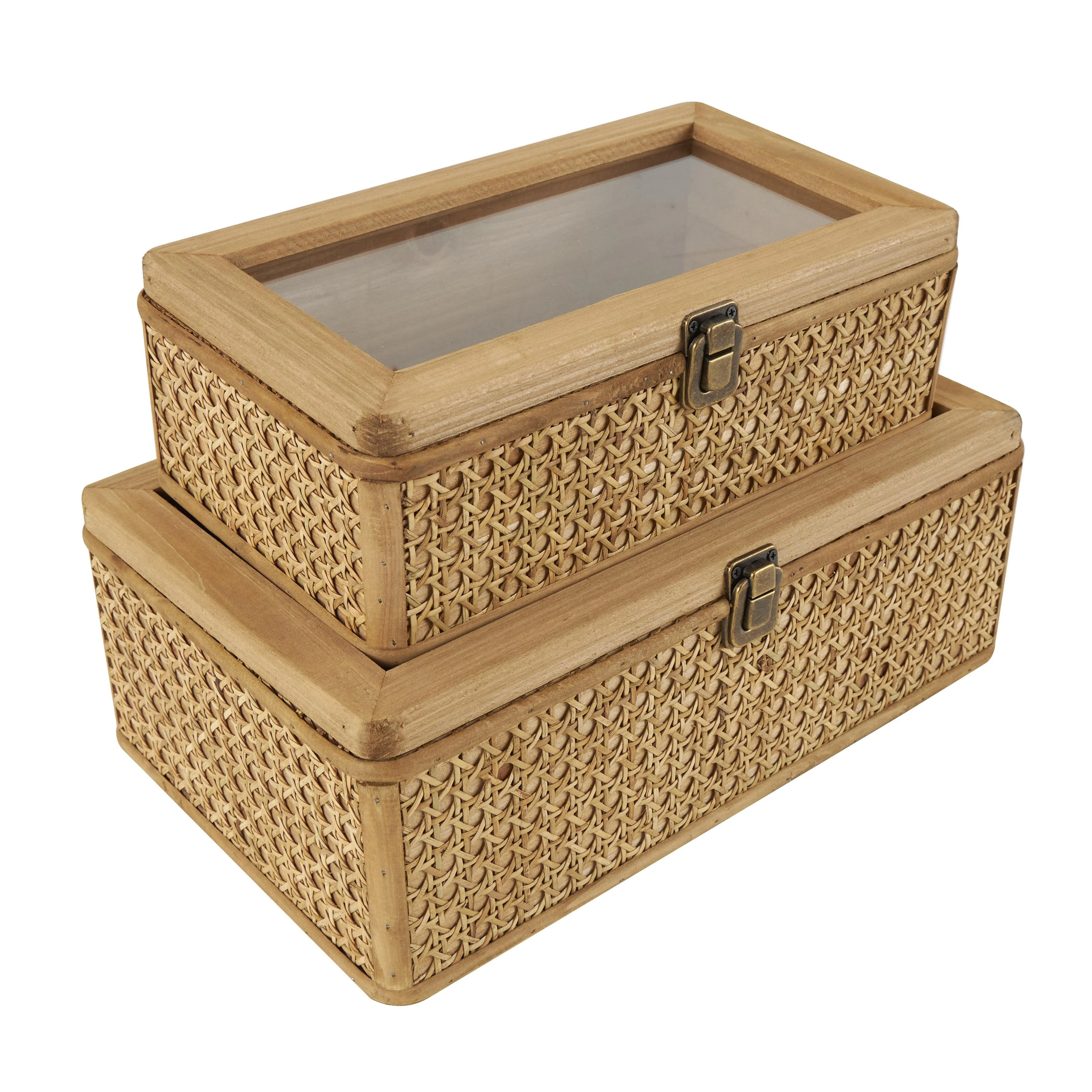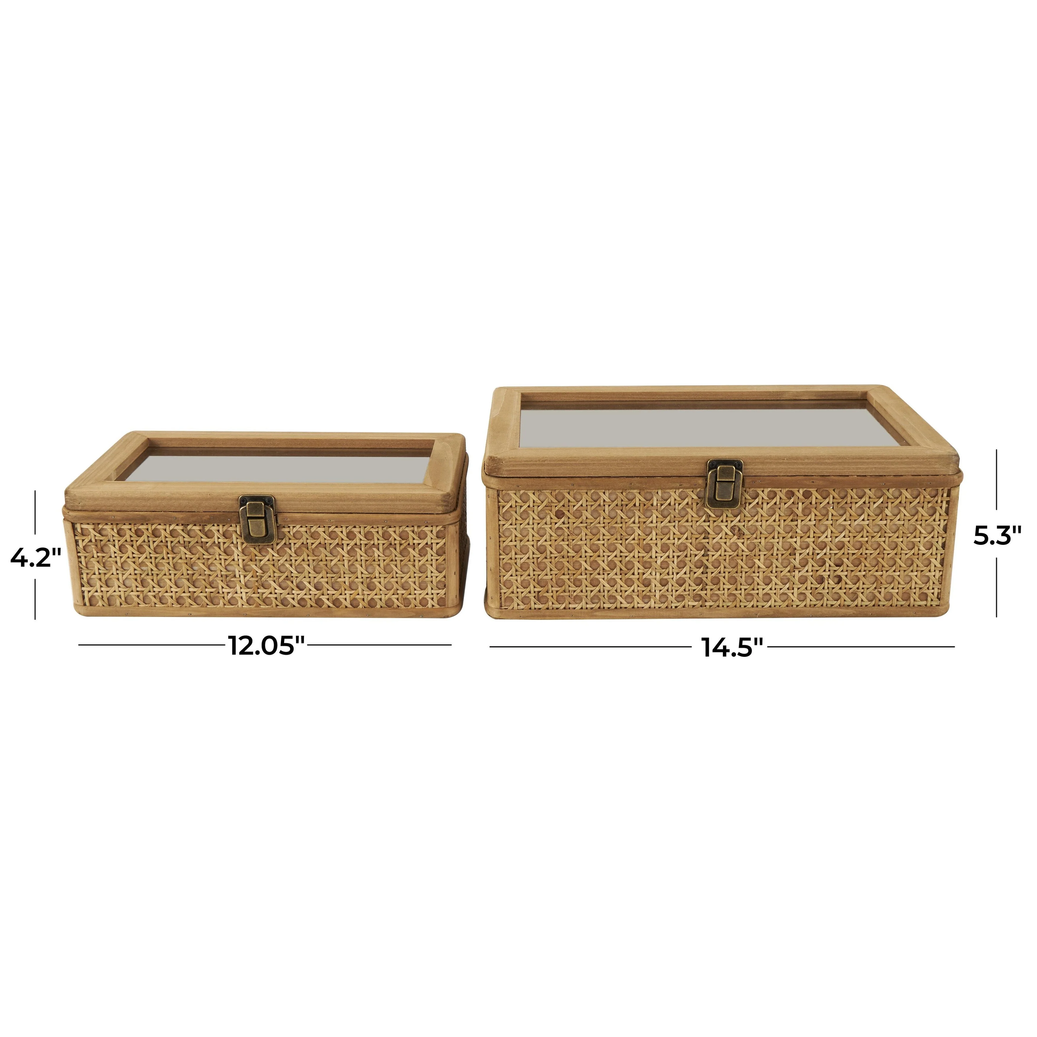 Rattan Handmade Woven Rattan Decorative Box with Glass Tops and Bronze Latches - Set of 2 Brown - Roche River Decor