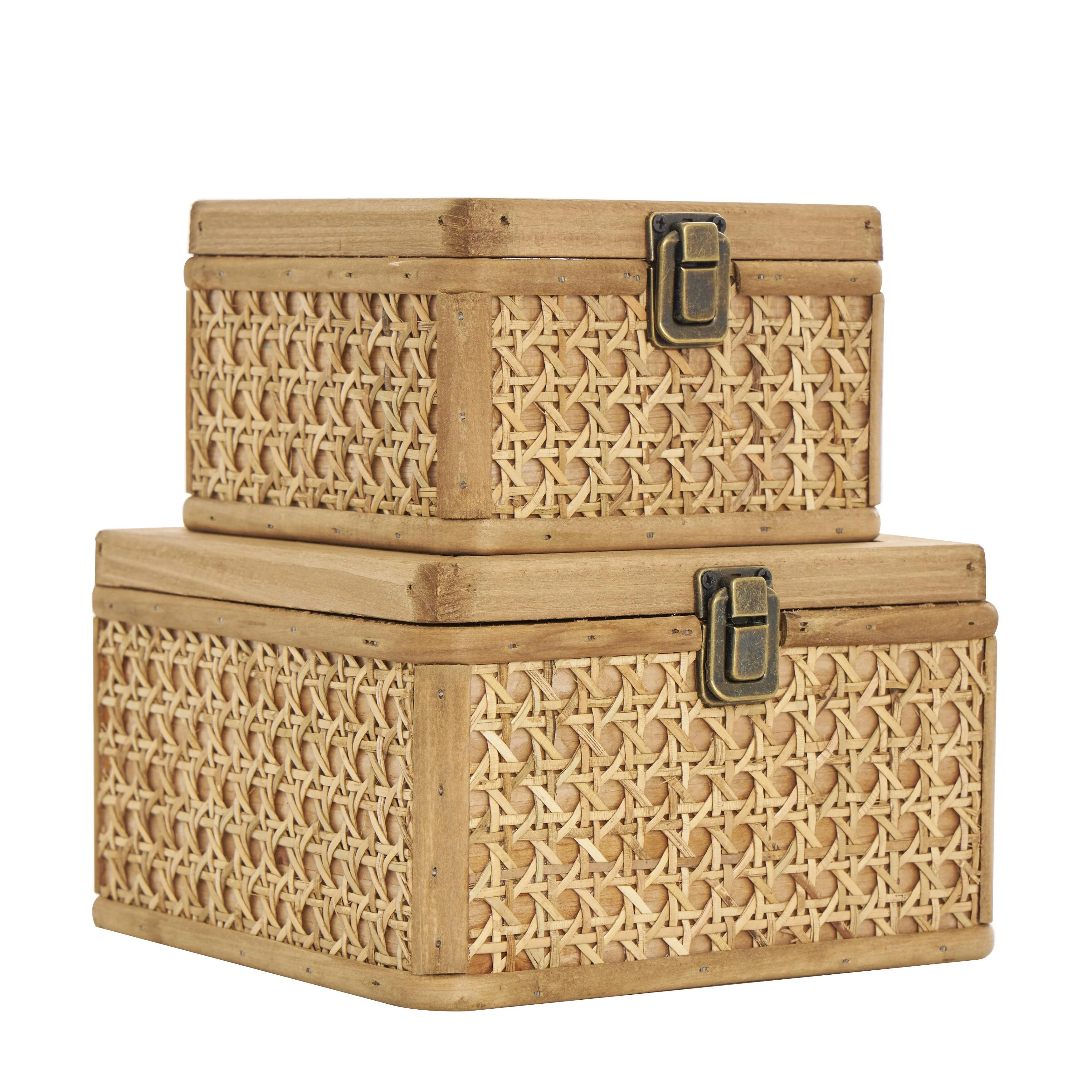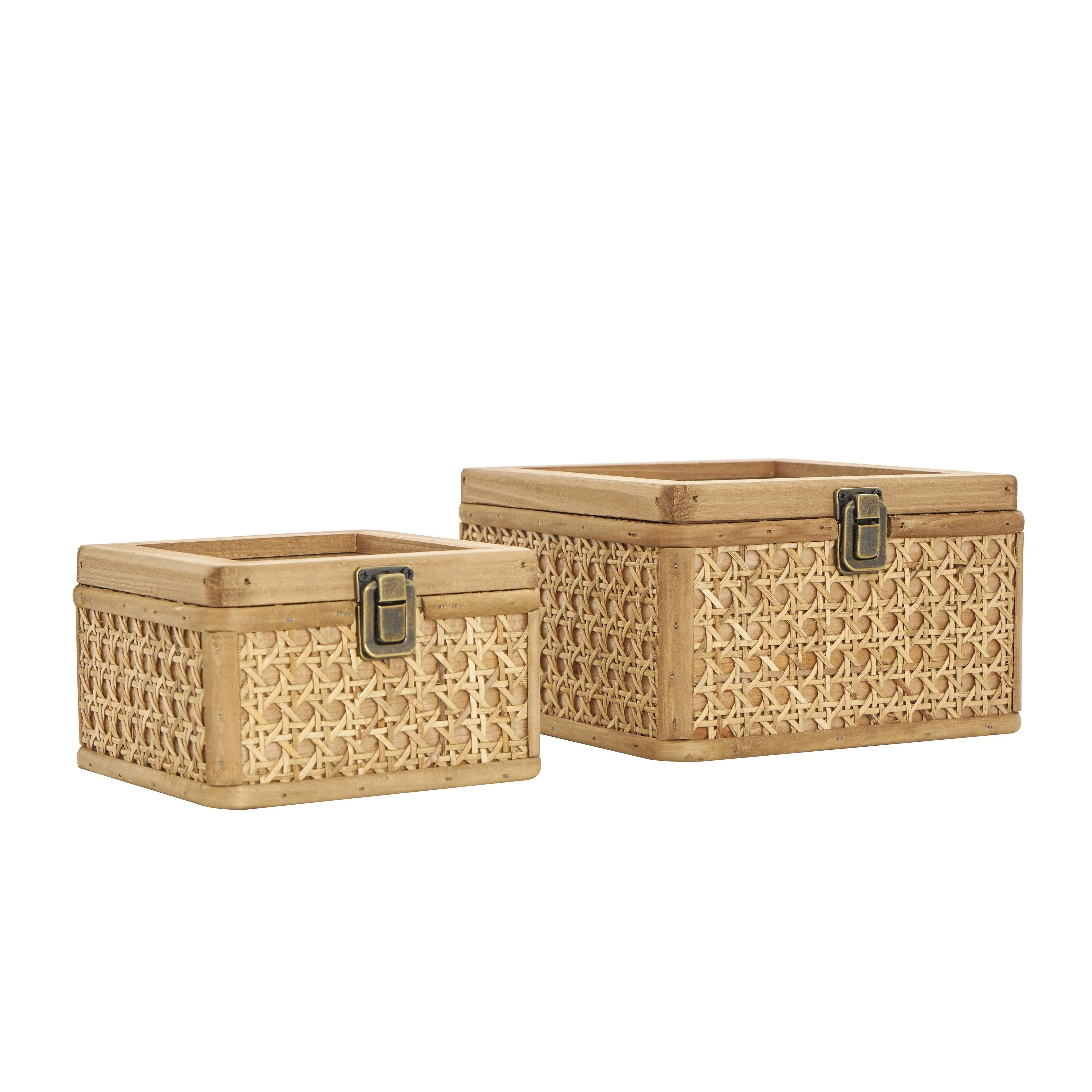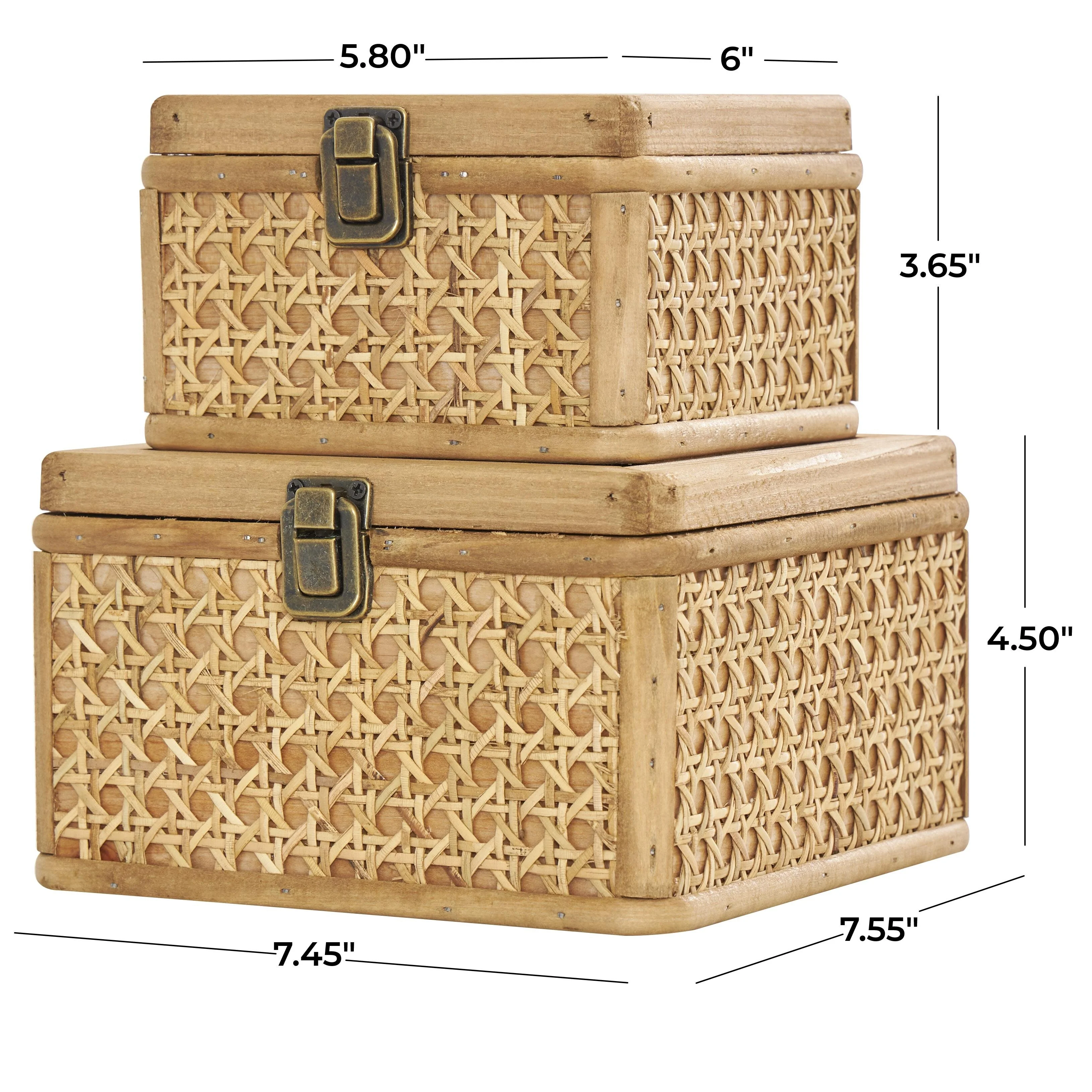Rattan Handmade Woven Rattan Decorative Box with Glass Tops and Bronze Latches - Set of 2 Brown - Roche River Decor