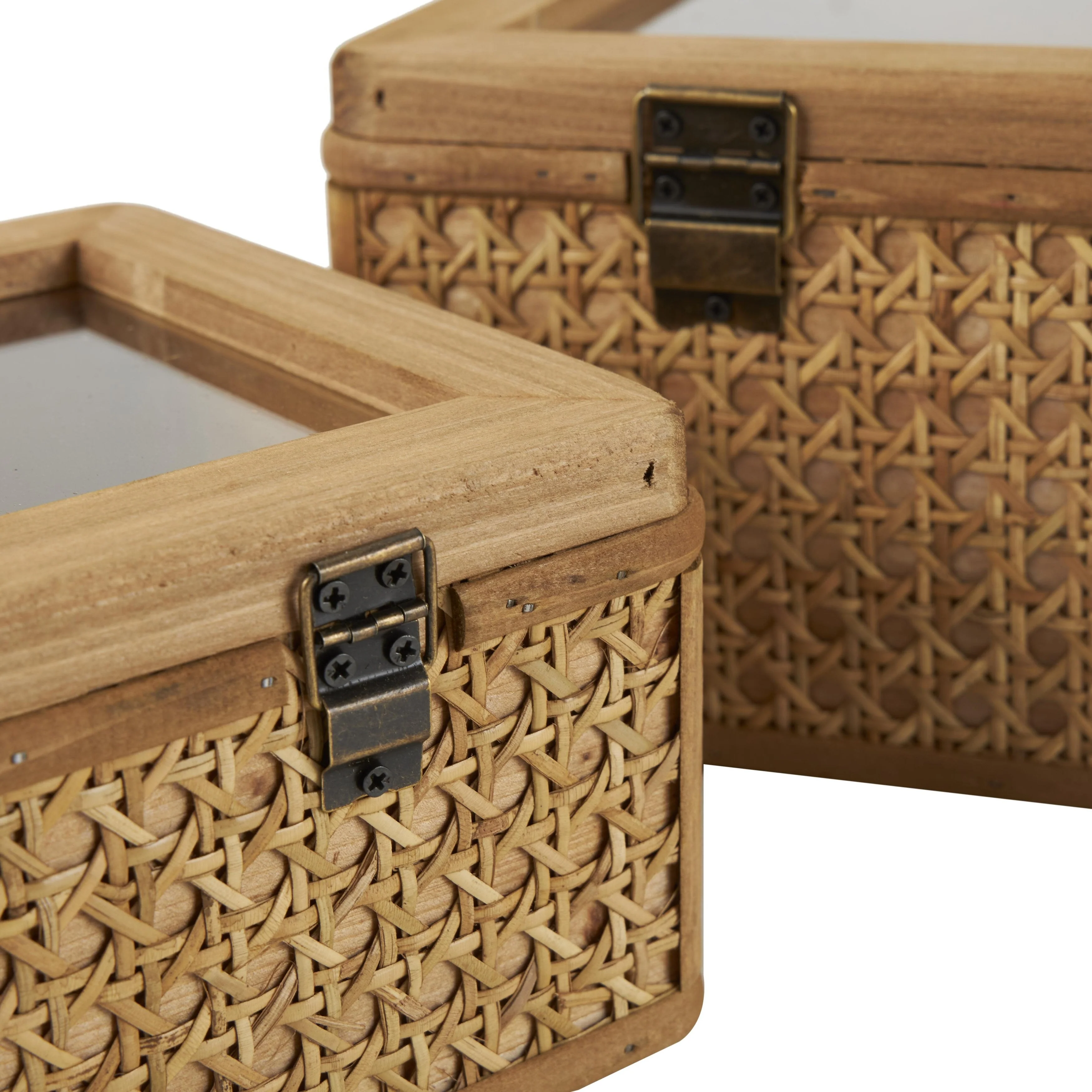 • Rattan Handmade Woven Rattan Decorative Box with Glass Tops and Bronze Latches - Set of 2 Brown - Roche River Decor