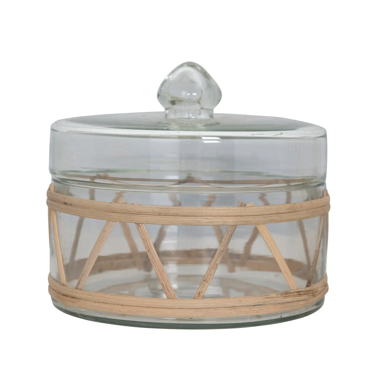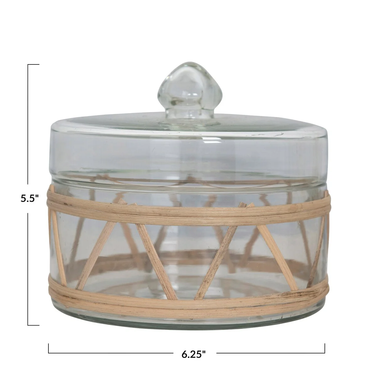 Store your pantry staples in style with glass jars wrapped in fun designs using rattan. No need to label items or open the lid to see what is inside. They would not only be great in the kitchen but would also be perfect in another room to hold mints and candies. This amazing container is perfect for food storage and decoration purposes.