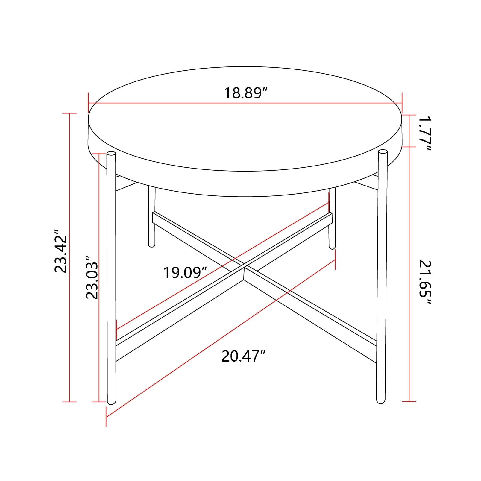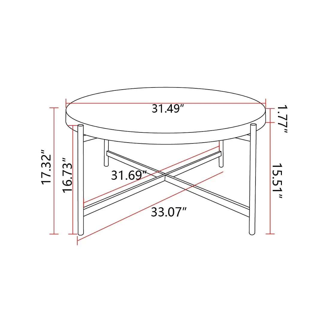 1.High Quality Material:This round coffee table uses a combination of high quality MDF top and high quality metal iron,Round coffee table with strong metal frame and the table top is high-grade MDF board, durable and solid,cross legs provide stability.2.Modern Design:The modern coffee table with KD thread design is beautiful and durable.3.Reasonable Load-bearing Capacity: In order to meet a variety of requirements in your daily life, the load-bearing capacity setting of this dining table is reasonable and practical.The load-bearing capacity of the tabletop is 220 lbs.4.Easy to assemble and maintain:The simple design makes assembly very easy, all hardware and detailed instructions are provided, and the workbench is easy to complete. The smooth surface is easy to clean and can help you save a lot of time and effort.