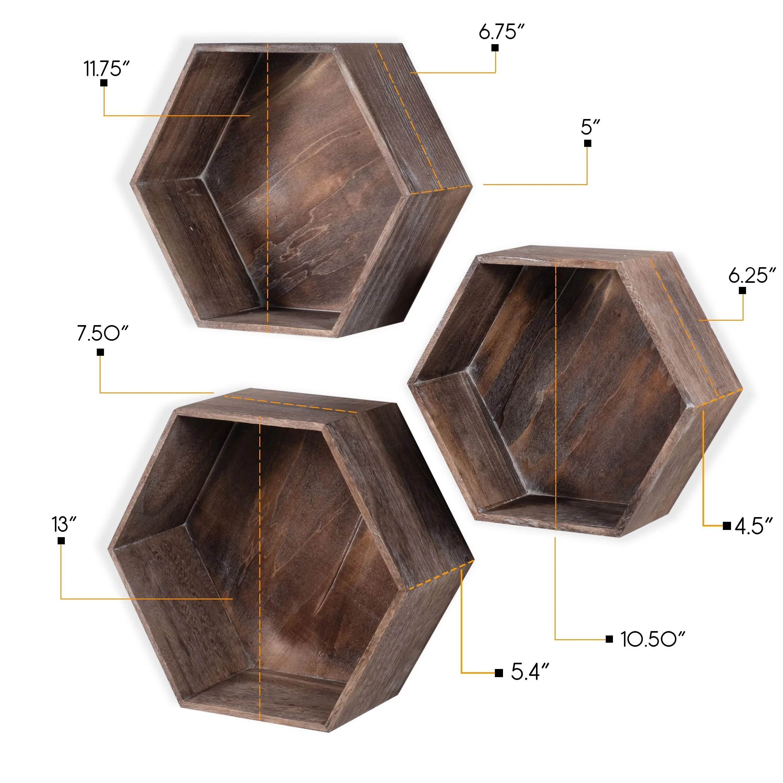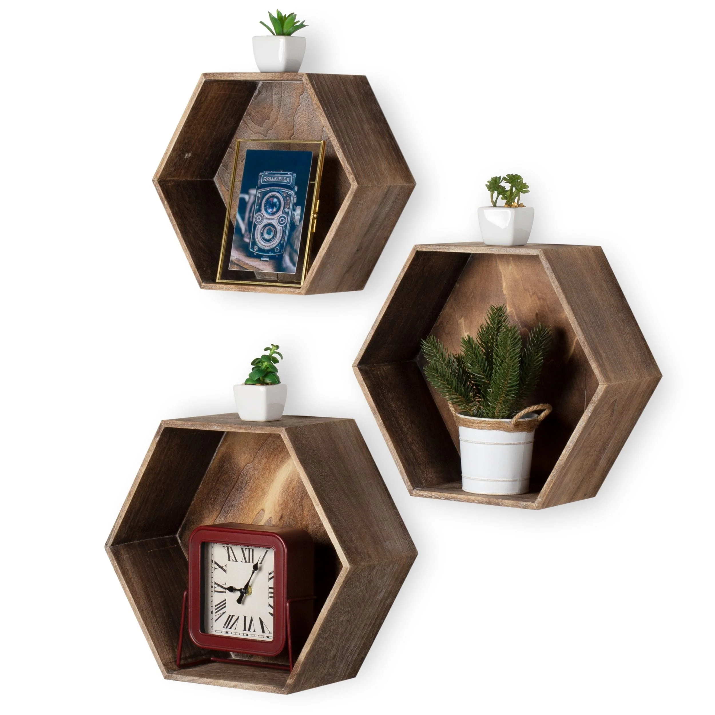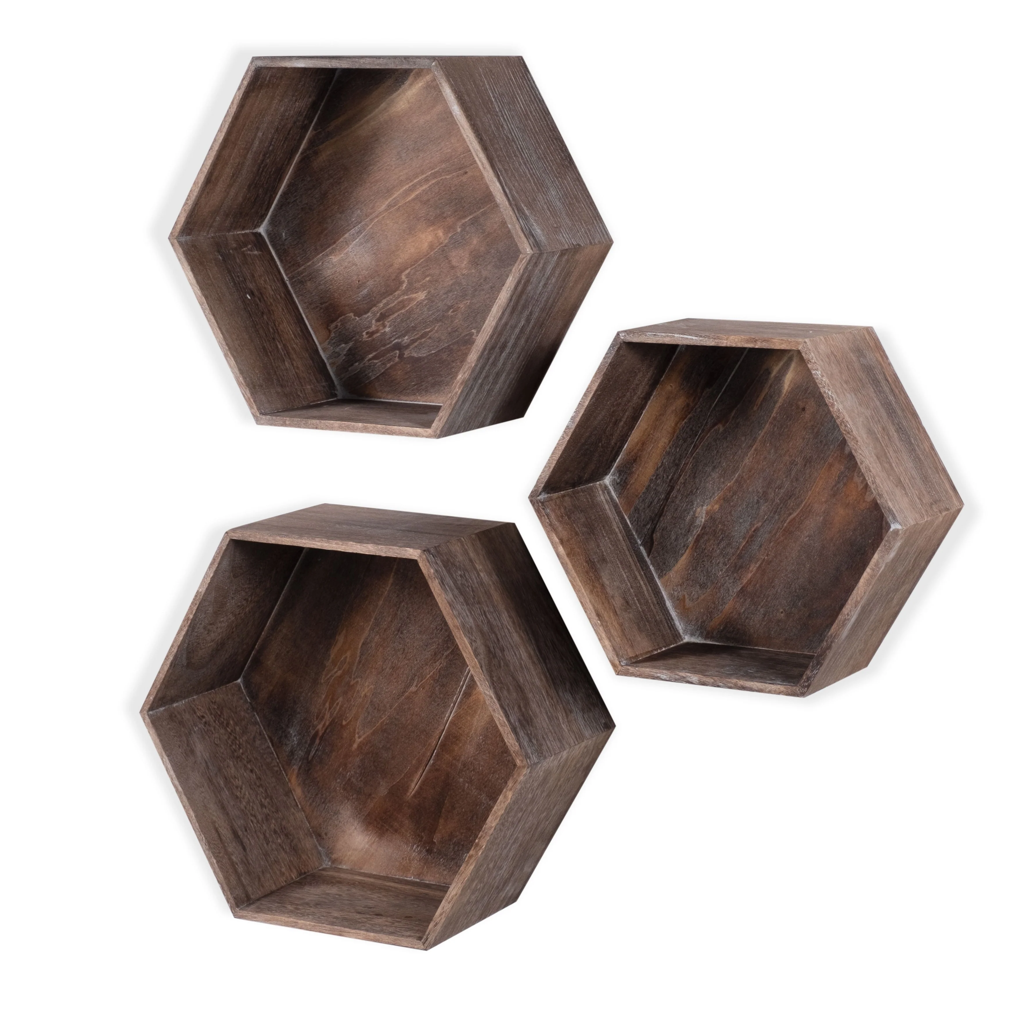 Minimalist Rustic Design: Distressed wood hexagon shelves are great for small spaces with rustic , industrial design.