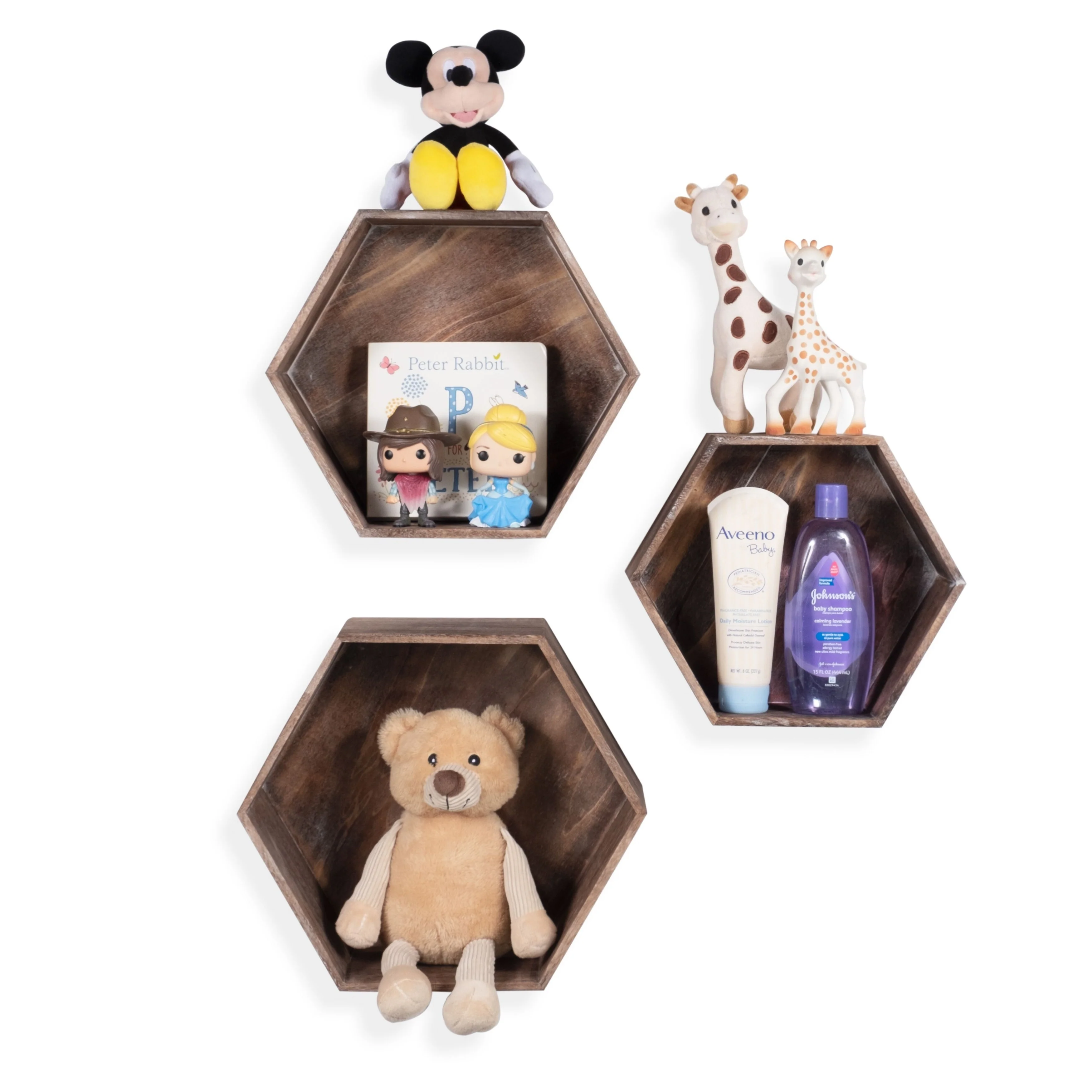 These geometric shelves come fully assembled and mounting hardware is included in the package.