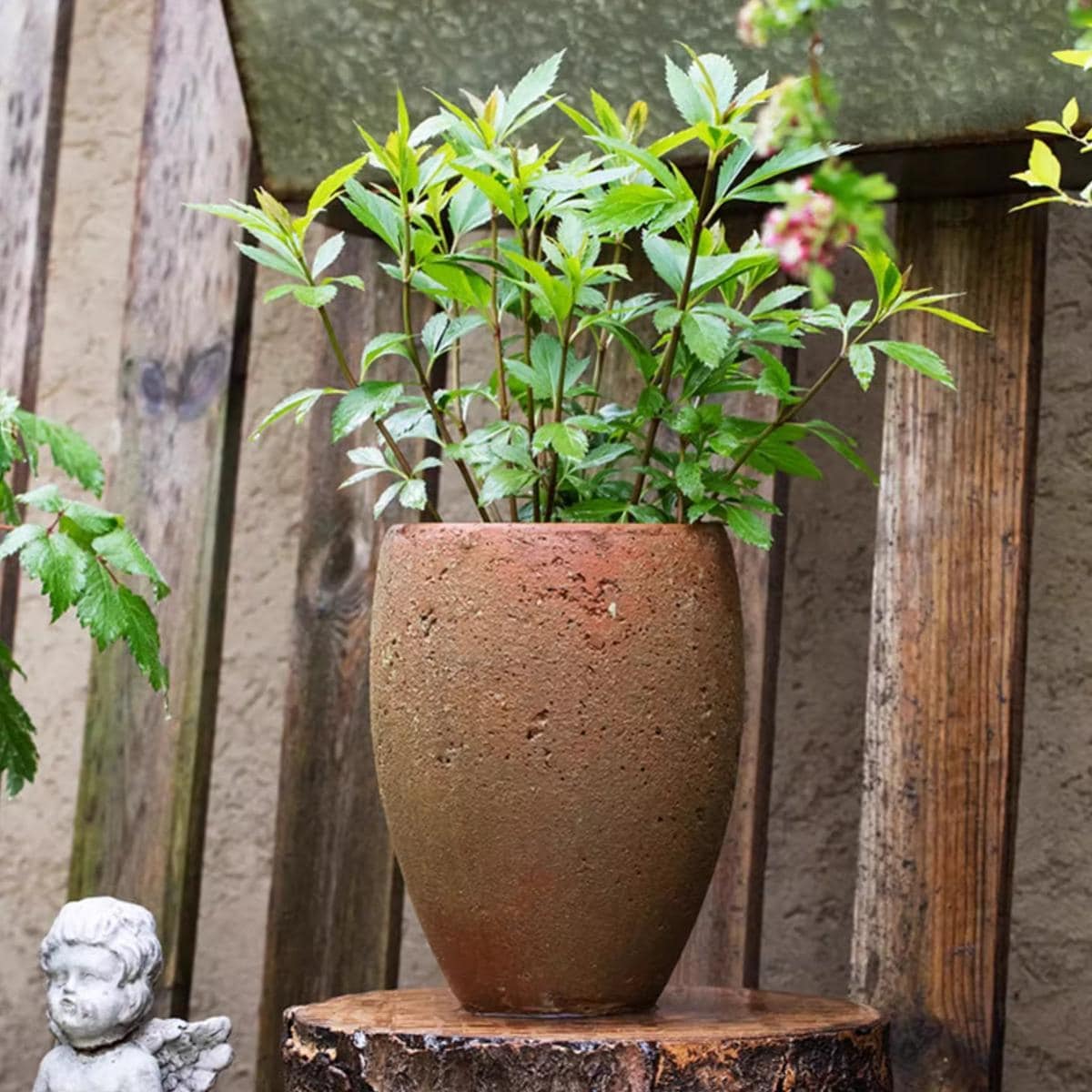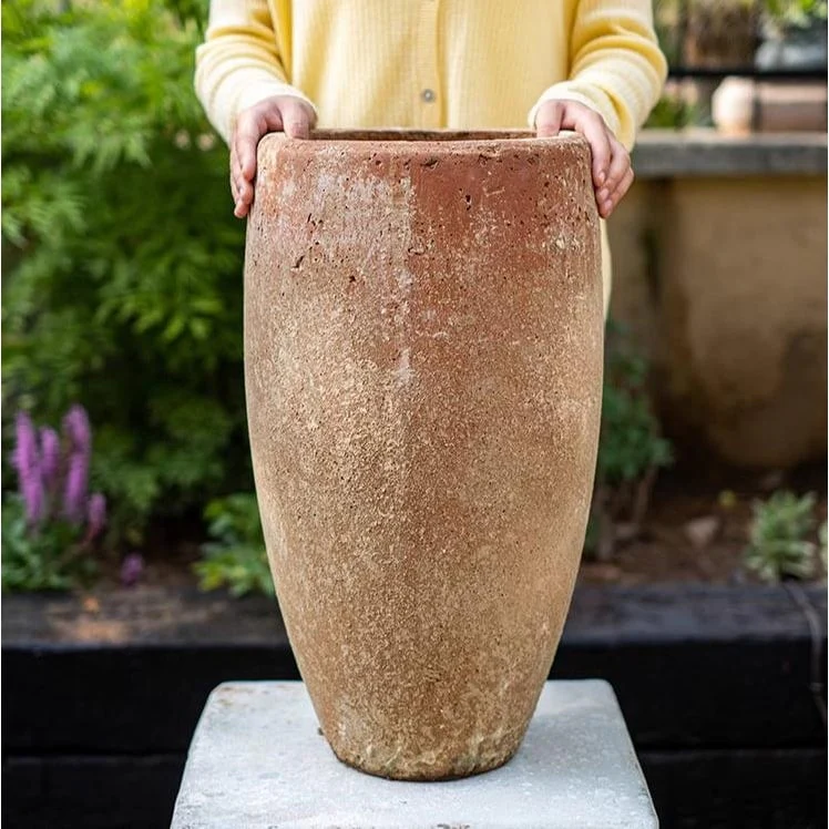 PRODUCTPlanter / Outdoor Planter / Large PlanterEach planter has one drainage holeDIMENSIONS & WEIGHT[Small] 6.3" D Top X 8.6" D X 9.25" H; 3.5" D Bottom width; 3.8 lb[Large] 10.2" D Top X 11.4" D X 20.8" H; 6.1" D Bottom width; 15.7 lbMATERIALCementCOLORTerracotta