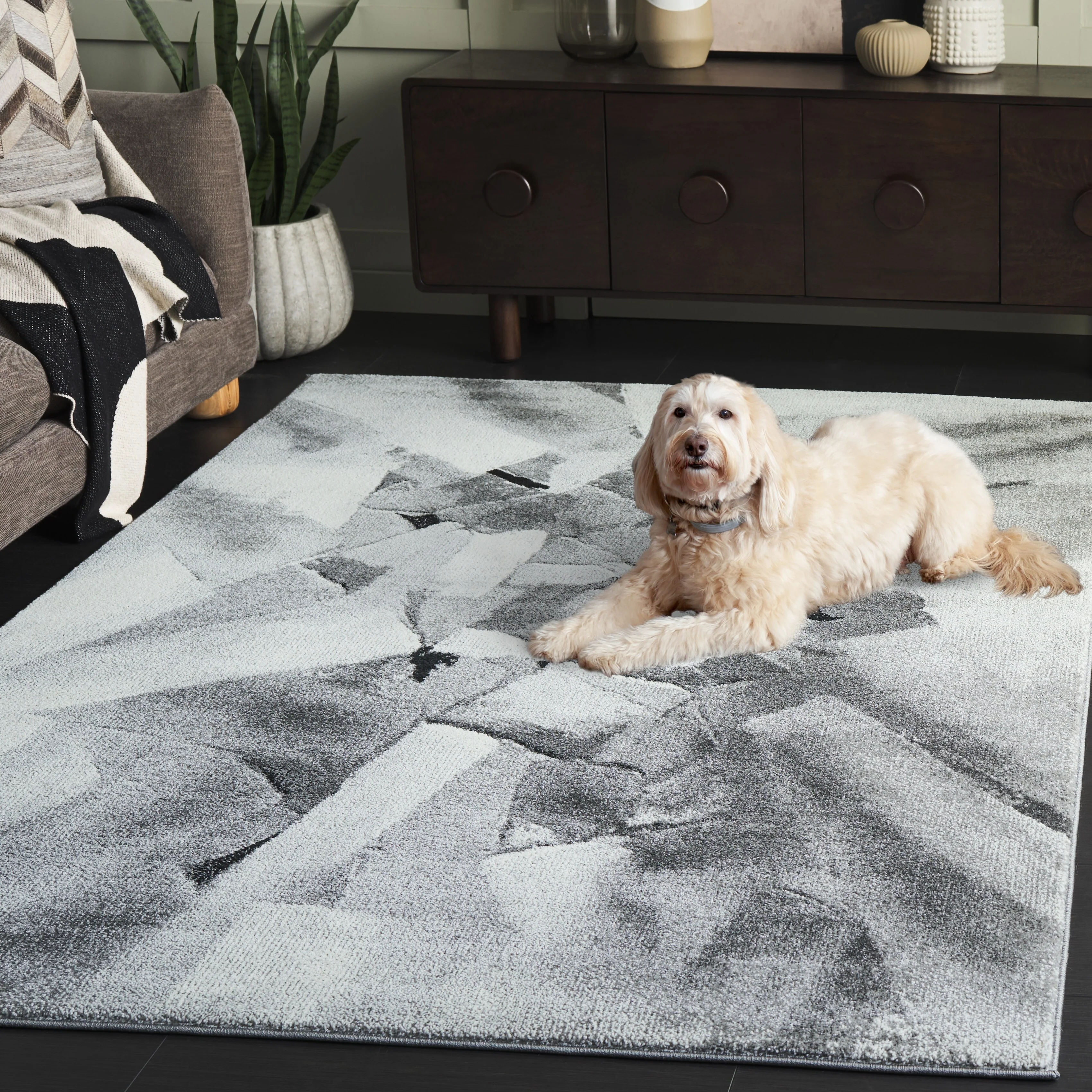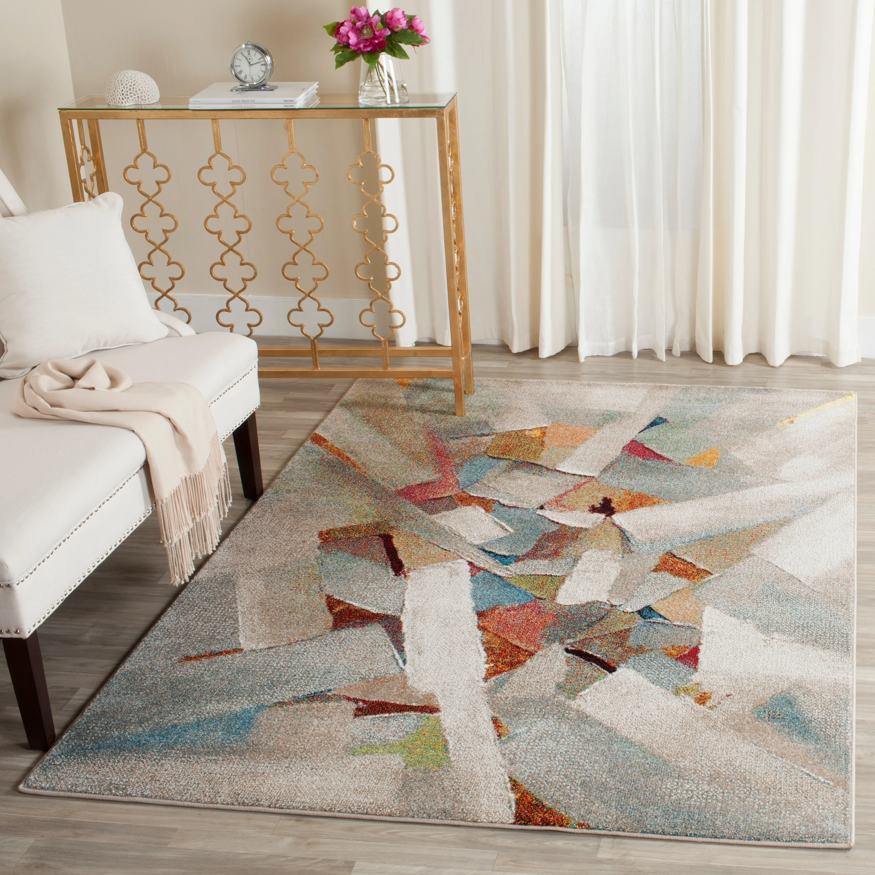 Add a pop of color and contemporary charm to your home with the SAFAVIEH Porcello Gennady Mid-Century Modern Abstract Rug. This rug is part of the Porcello Collection, featuring a fine selection of art-inspired casual rugs that come in abstract graphics, blooming florals, and polished damasks. The stunning colors radiate from a soft, texture-rich pile that measures 0.25 - 0.5 inches in height. Ideal for a casual bedroom rug, living room, or family room carpet, this machine-made rug is perfect for those who love modern and contemporary style.