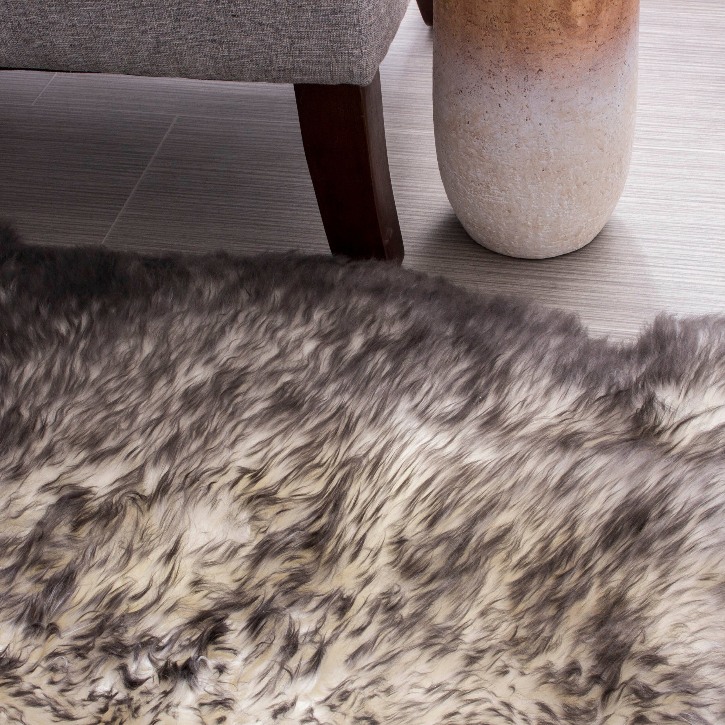 Showcase a shabby chic focal point in your living room with this handmade Nansen rug from Silver Orchid. Crafted from sheepskin, this rug is soft, plush, and long-lasting. Featuring an asymmetrical pattern, this indoor rug is latex-free, and it's suitable for moderate traffic areas at your home.