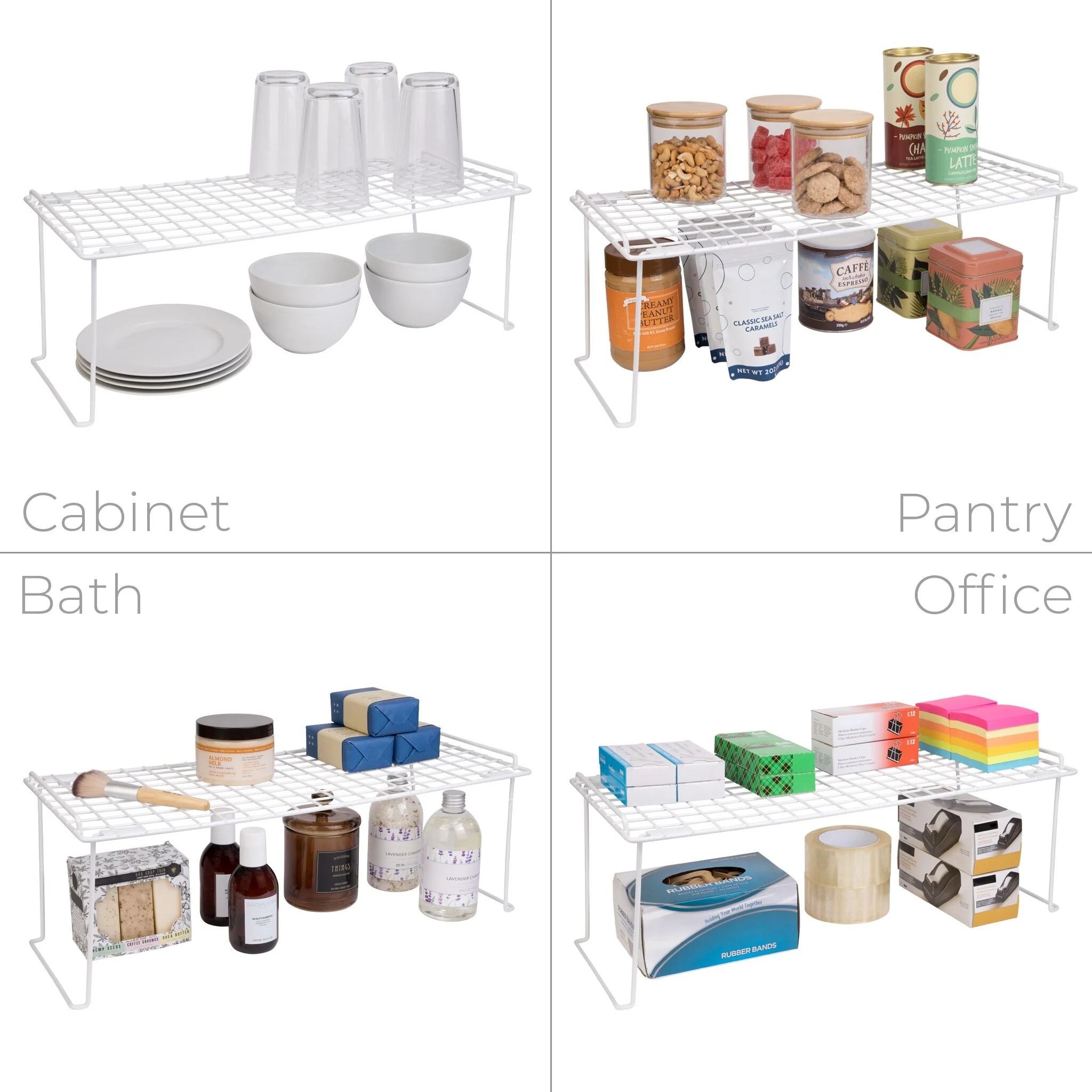 - STACKING SHELF RACK - Ideal for kitchen cabinets, pantries, craft closets, bathroom cabinets.