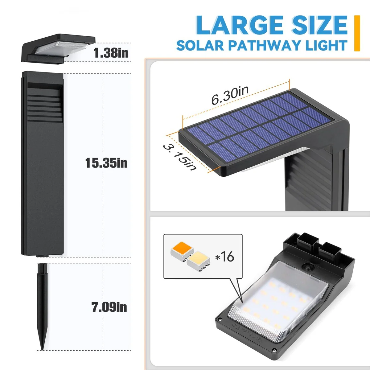 【IP65 Waterproof & High quality】 JOFIOS pathway lights are made of high-hardness ABS material that won't break easily. It is recommended that loosening the soil before installation would be easier to install. After installation can bring 1.5 meters wide lighting range. Large size path lights, more is to provide illumination and security for your road. Waterproof rating up to IP65, don't worry about any rain or snow, for bad weather is fully prepared, no rust no deformation, long service life.
