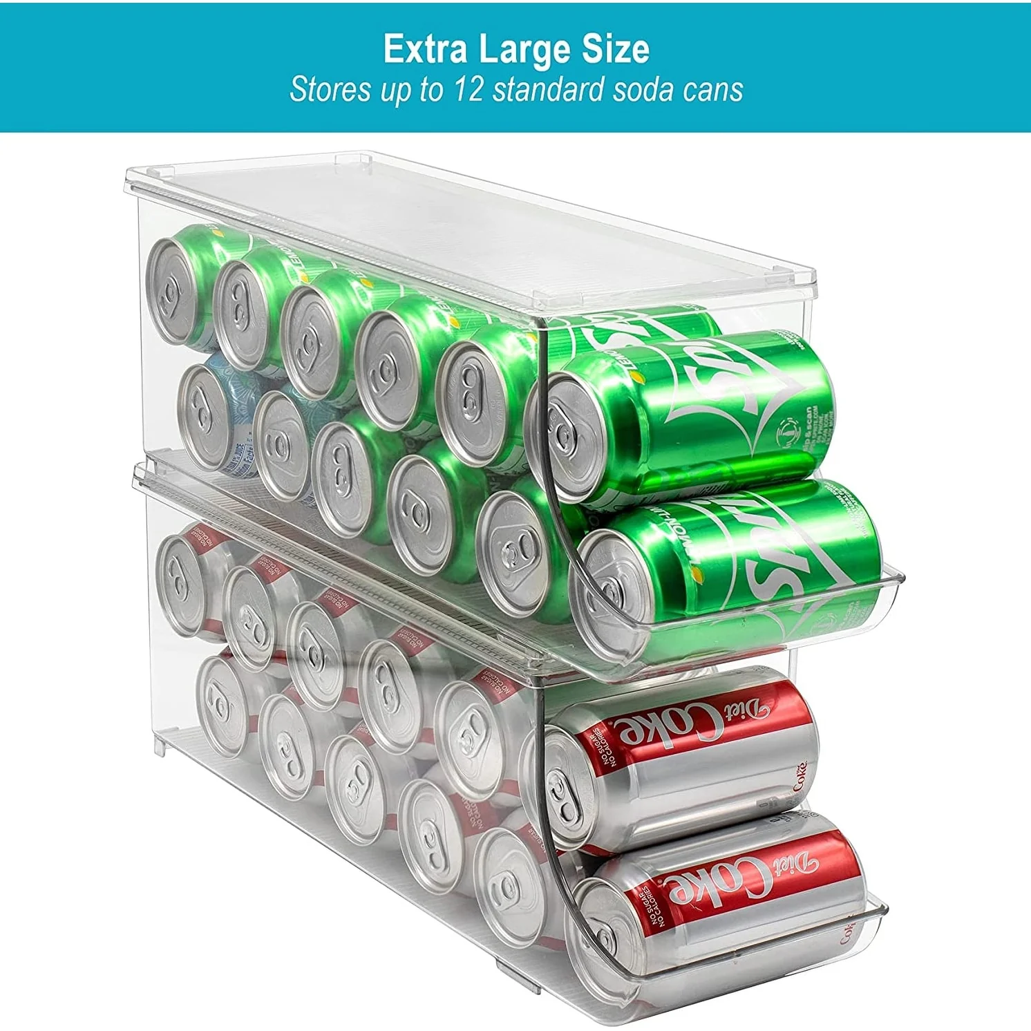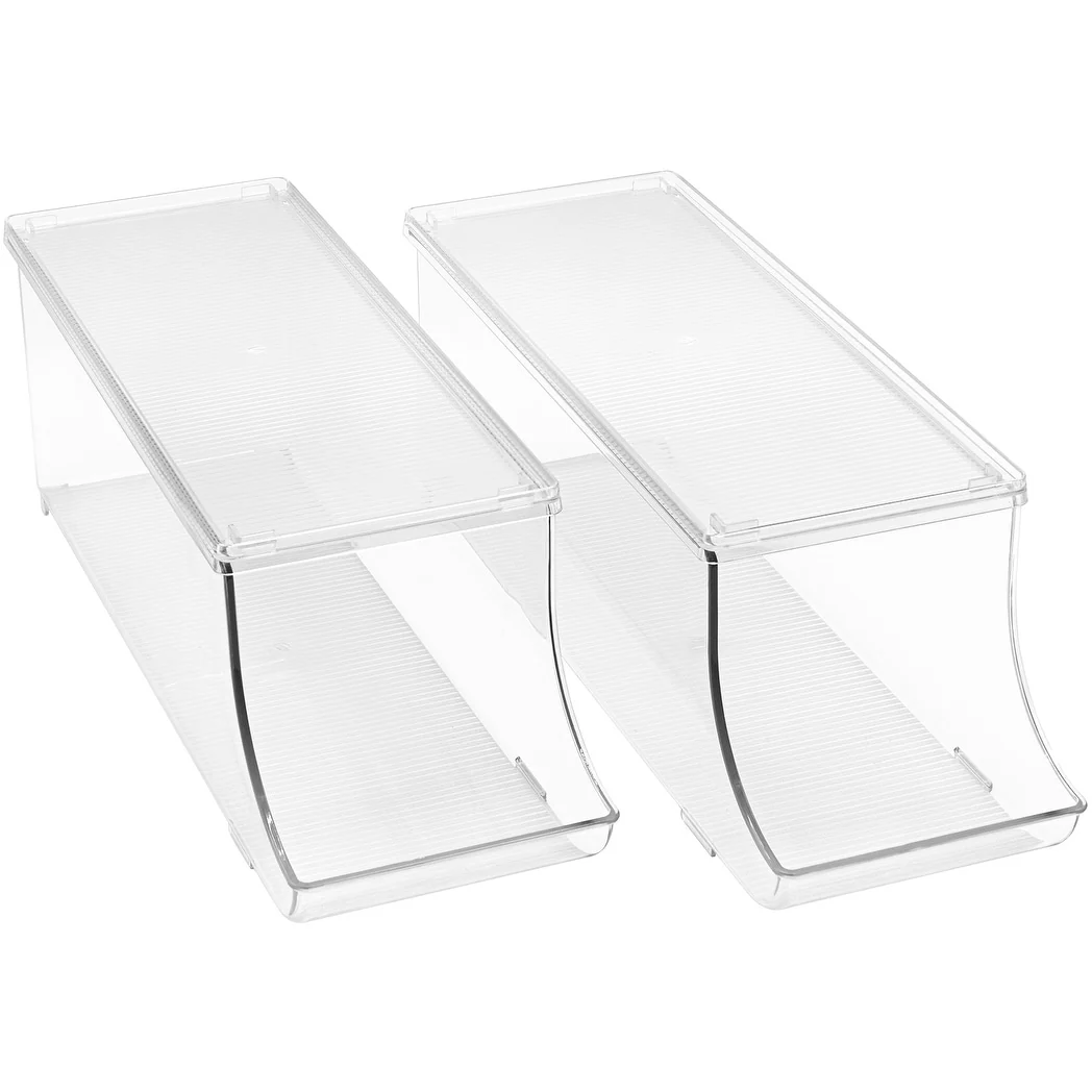 From beverages to canned goods, the Sorbus Can Organizer Set is the perfect solution for corralling cans! It holds up to 12 cans with a removable lid for protection or extra storage. Use in the refrigerator, freezer, or pantry to keep your kitchen organized with a clear view. When you're ready to replenish, simply restock the cans for grab n' go access or stack additional bins on top. Now there's no more searching for your favorite can of pop!