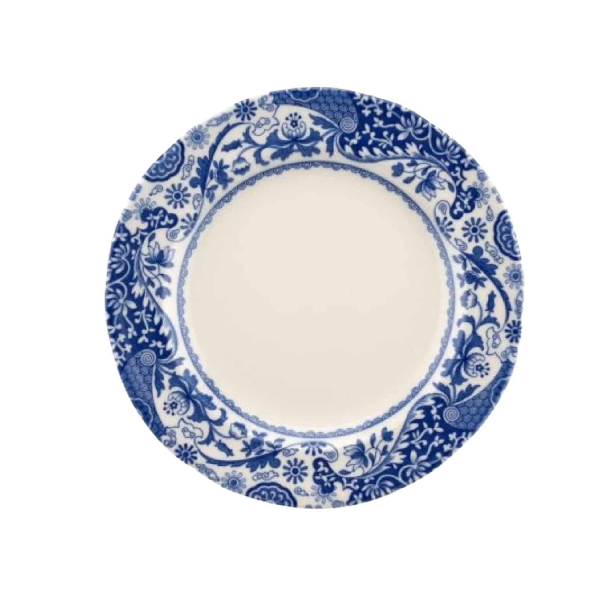 Spode Blue Italian Brocato 8-Inch Salad Dish - Fine Earthenware Serving Plate with Eastern Border Motif - Classic White Center - Microwave, Freezer, Oven, Dishwasher Safe, Great for Gifting - New