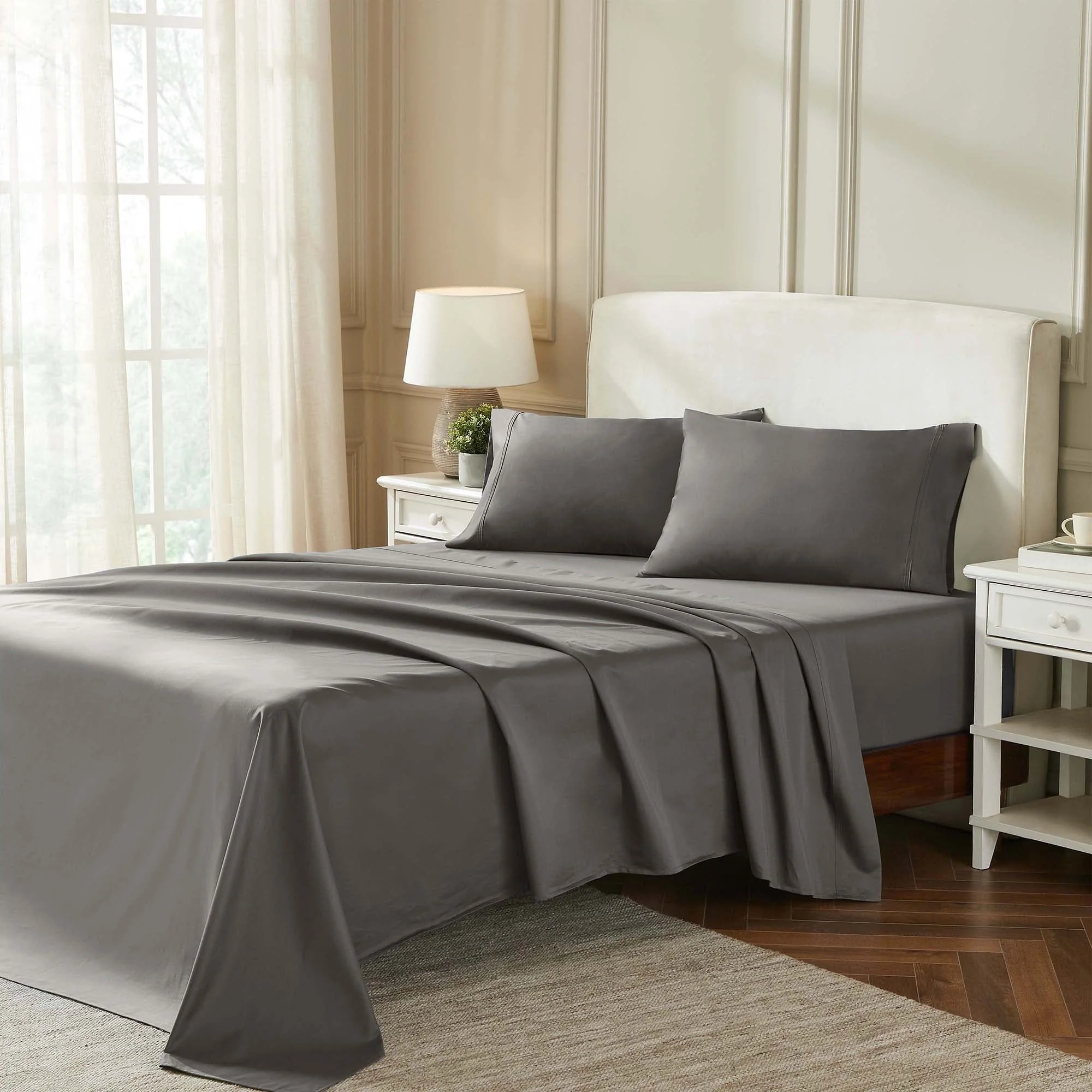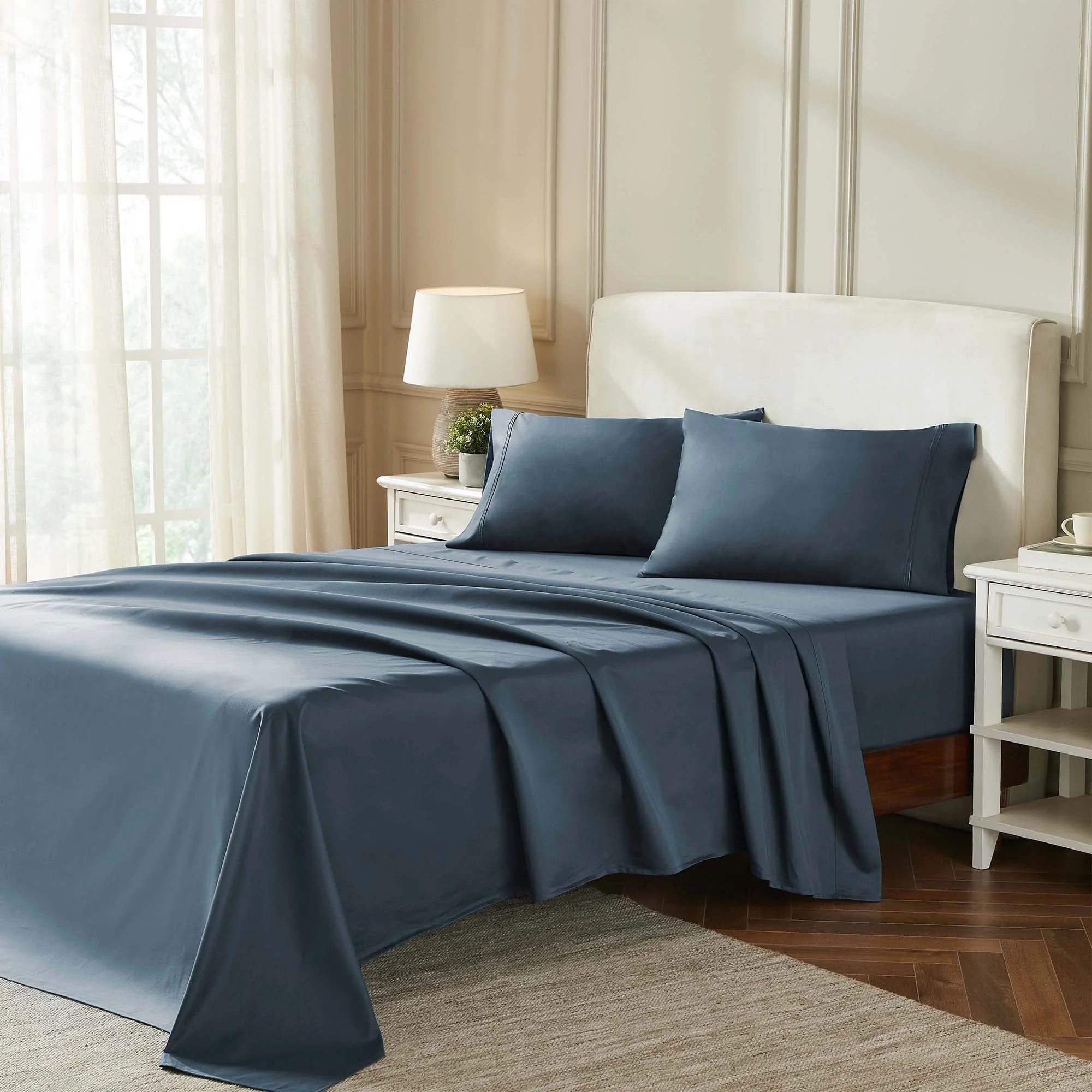 - Set Includes: One (1) Flat Sheet, One (1) Fitted Sheet, Two (2) Pillowcases (Twin XL size has One (1) Pillowcase)